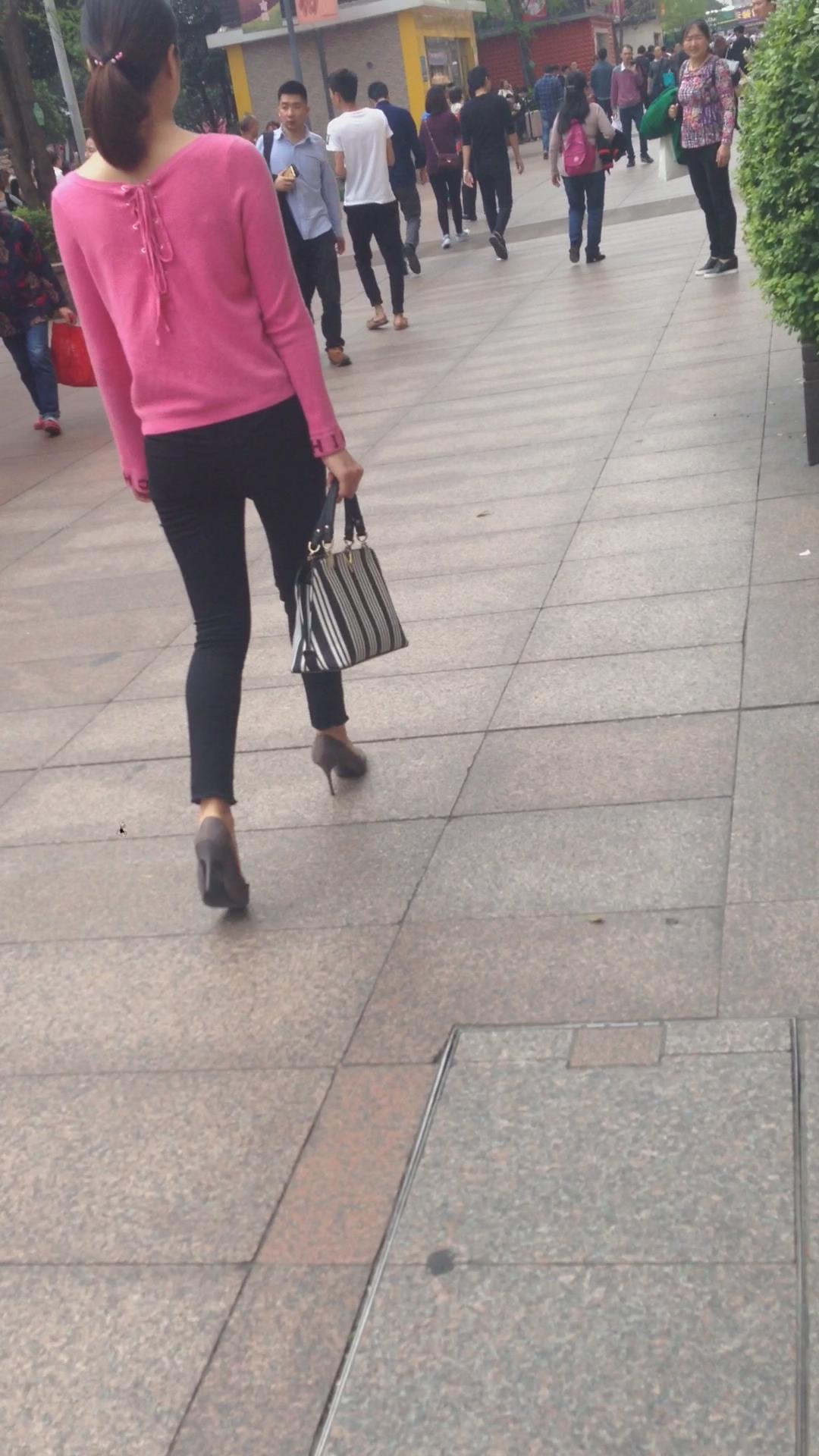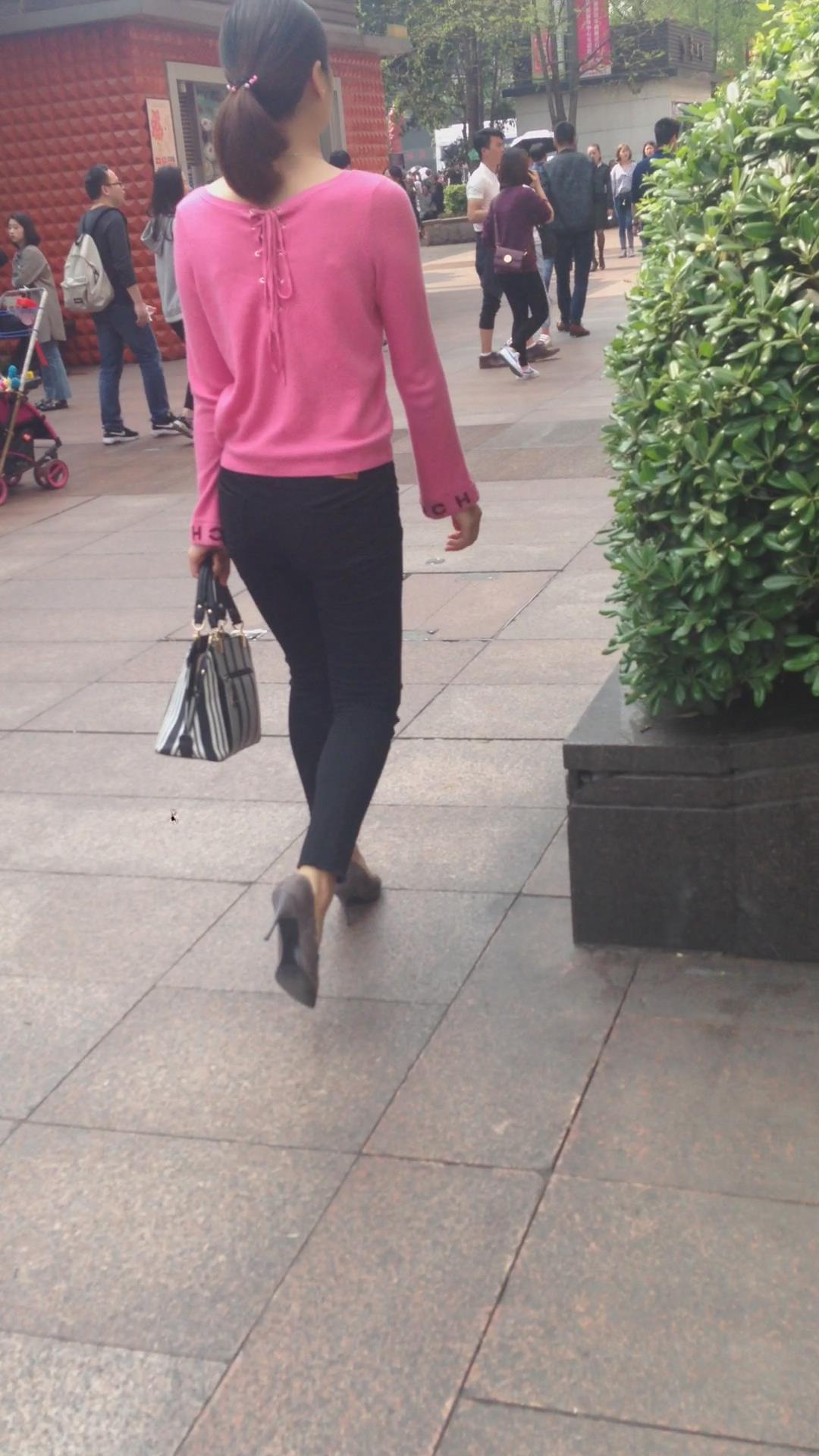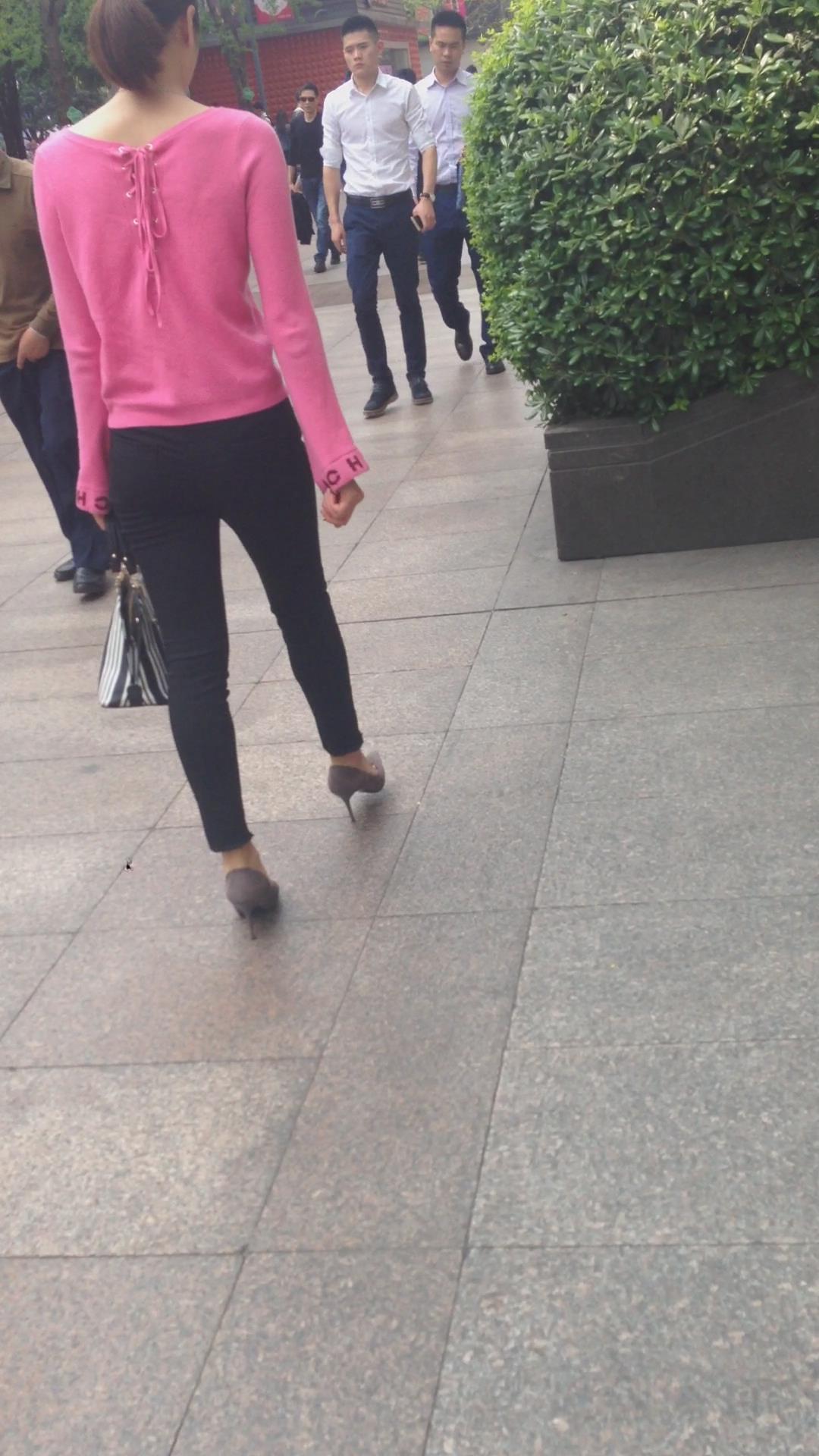 跟拍粉衣苗条高跟鞋美女小姐姐 编号6092