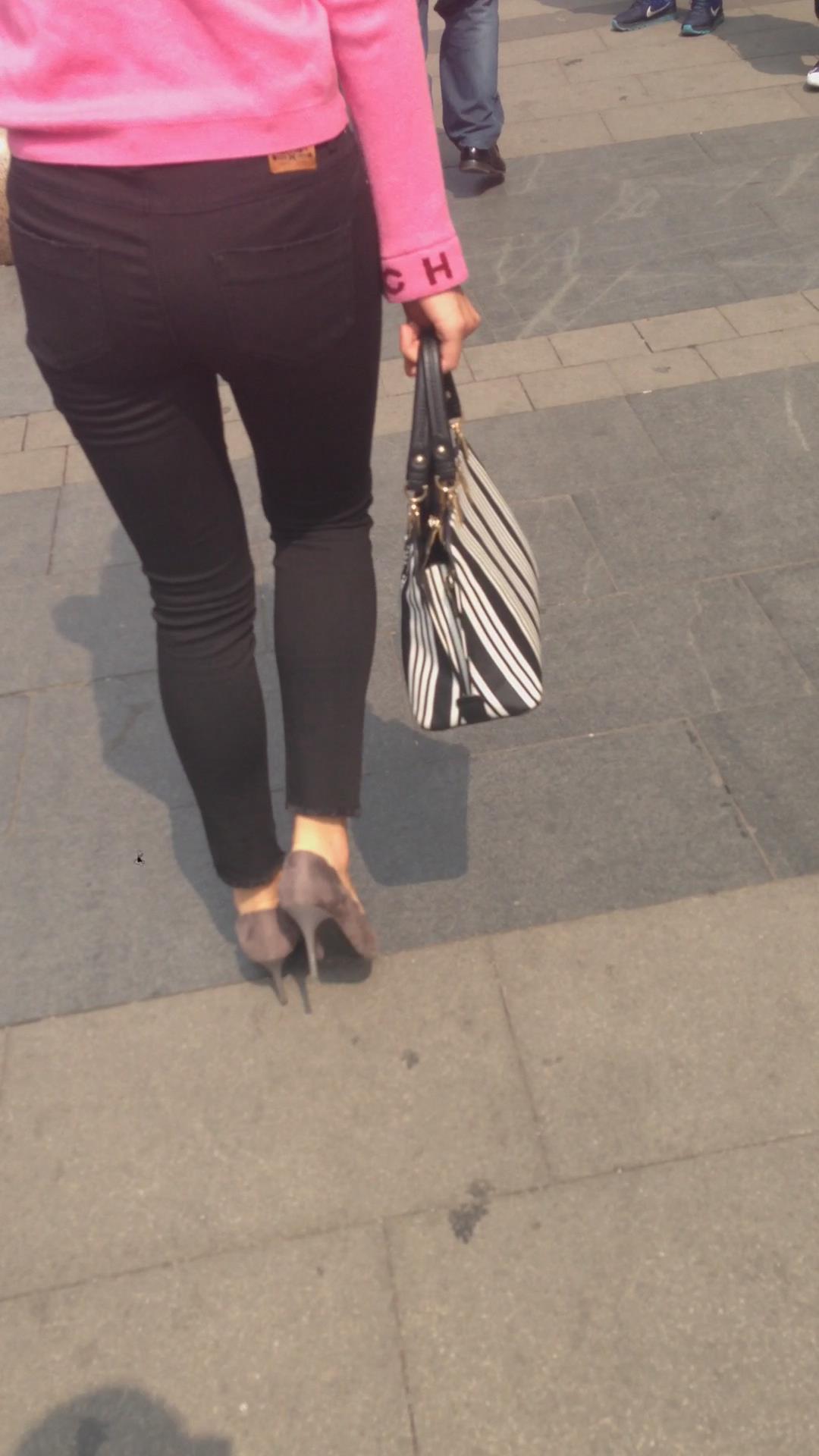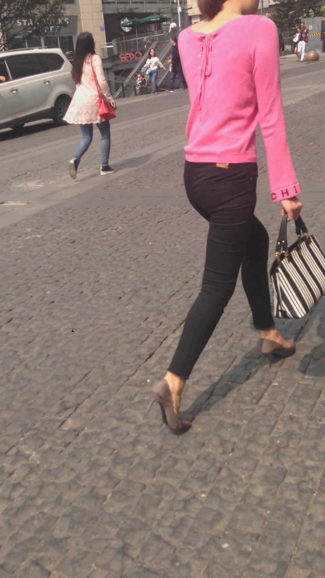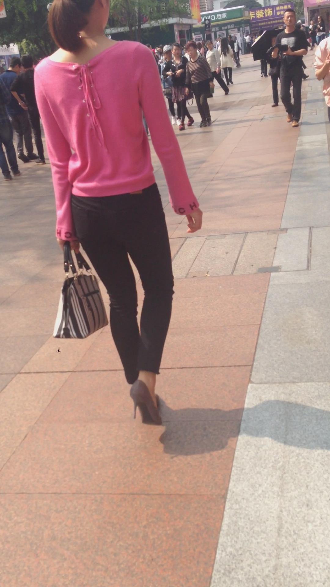 跟拍粉衣苗条高跟鞋美女小姐姐 编号6092