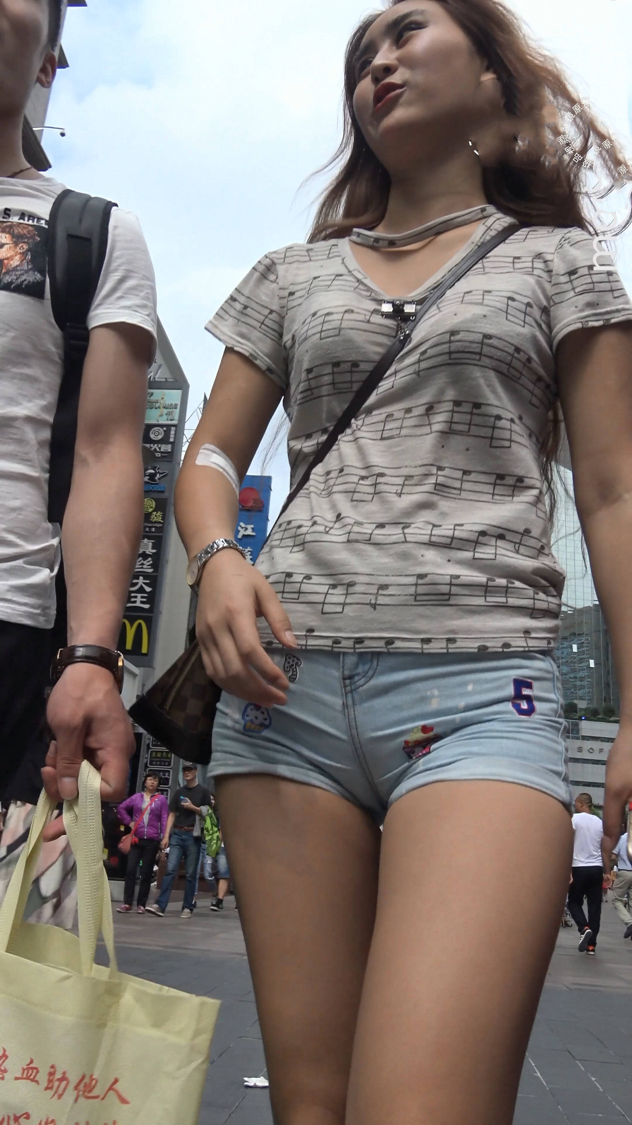 4k-笑容灿烂的丰满热裤光腿运动鞋美眉,三角区饱满 编号7946