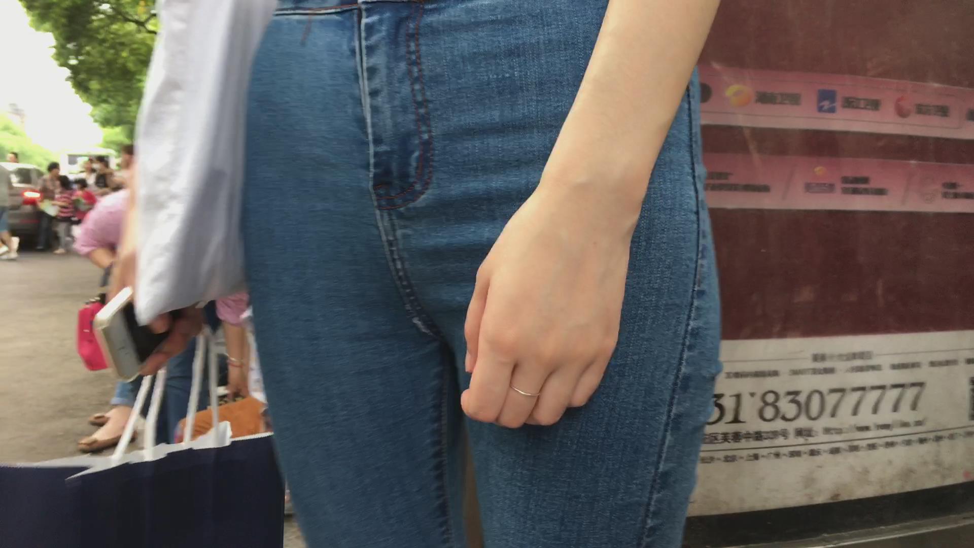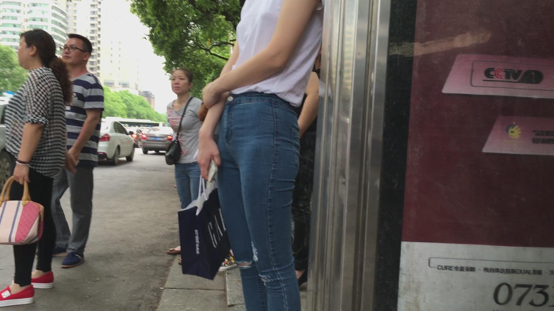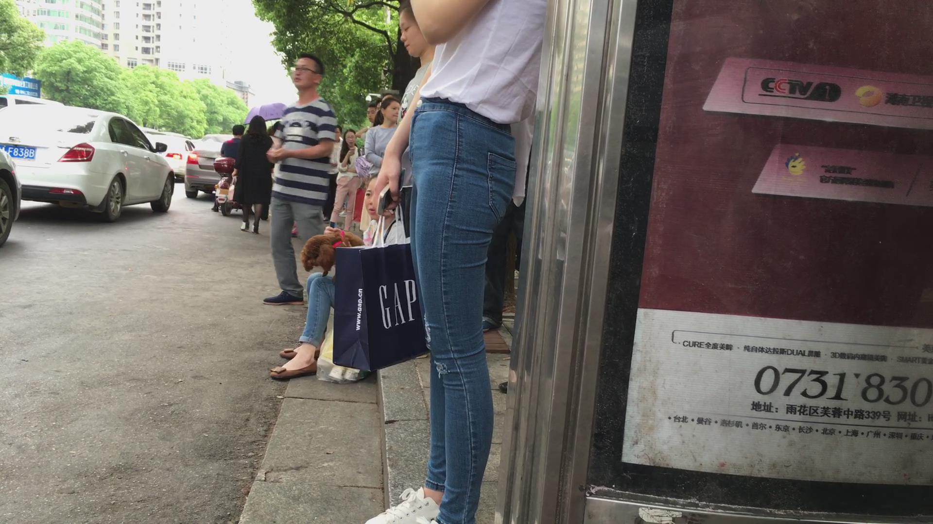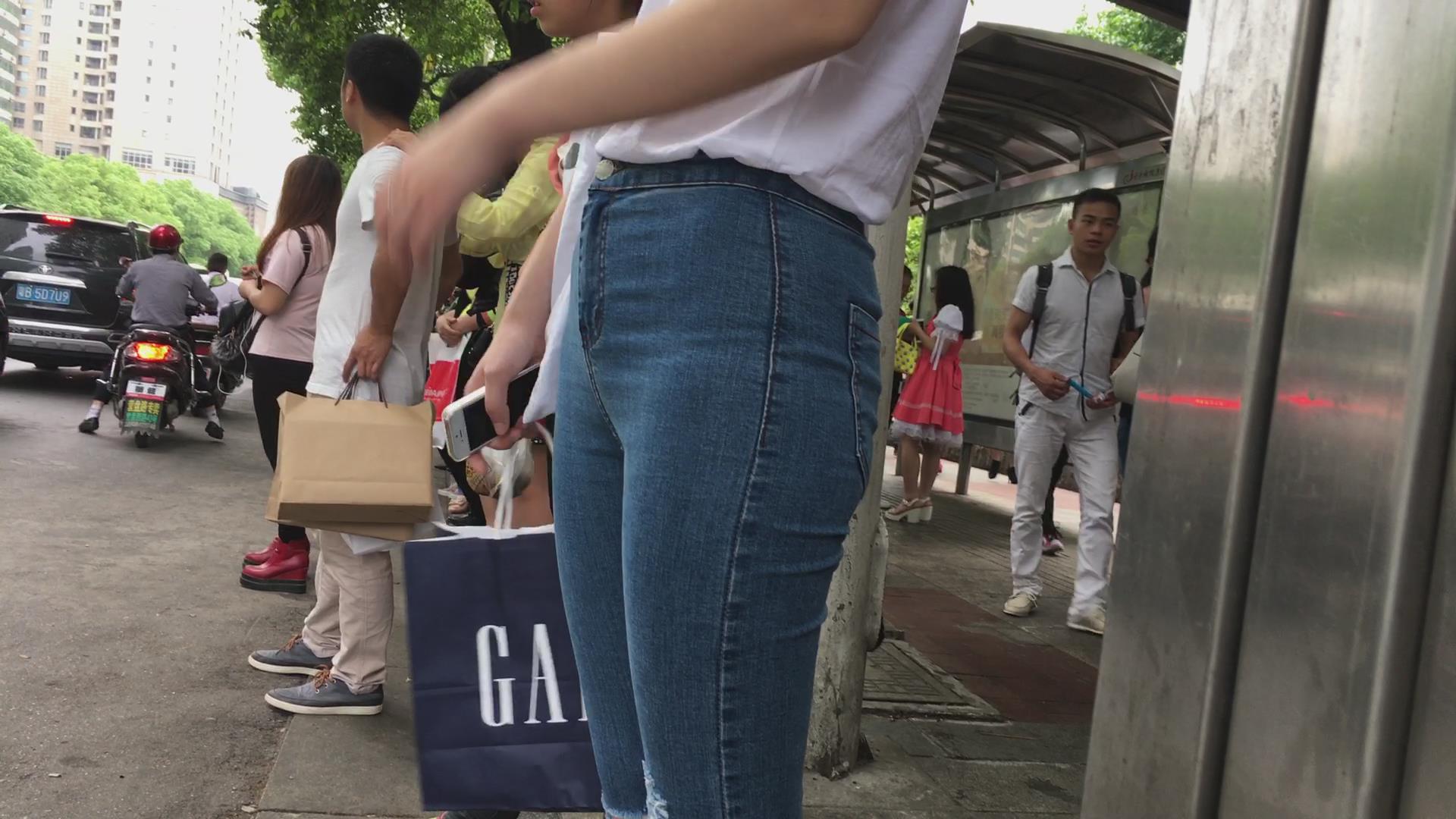 公交站拍摄极品丰满宽臀牛仔裤美女 编号6104