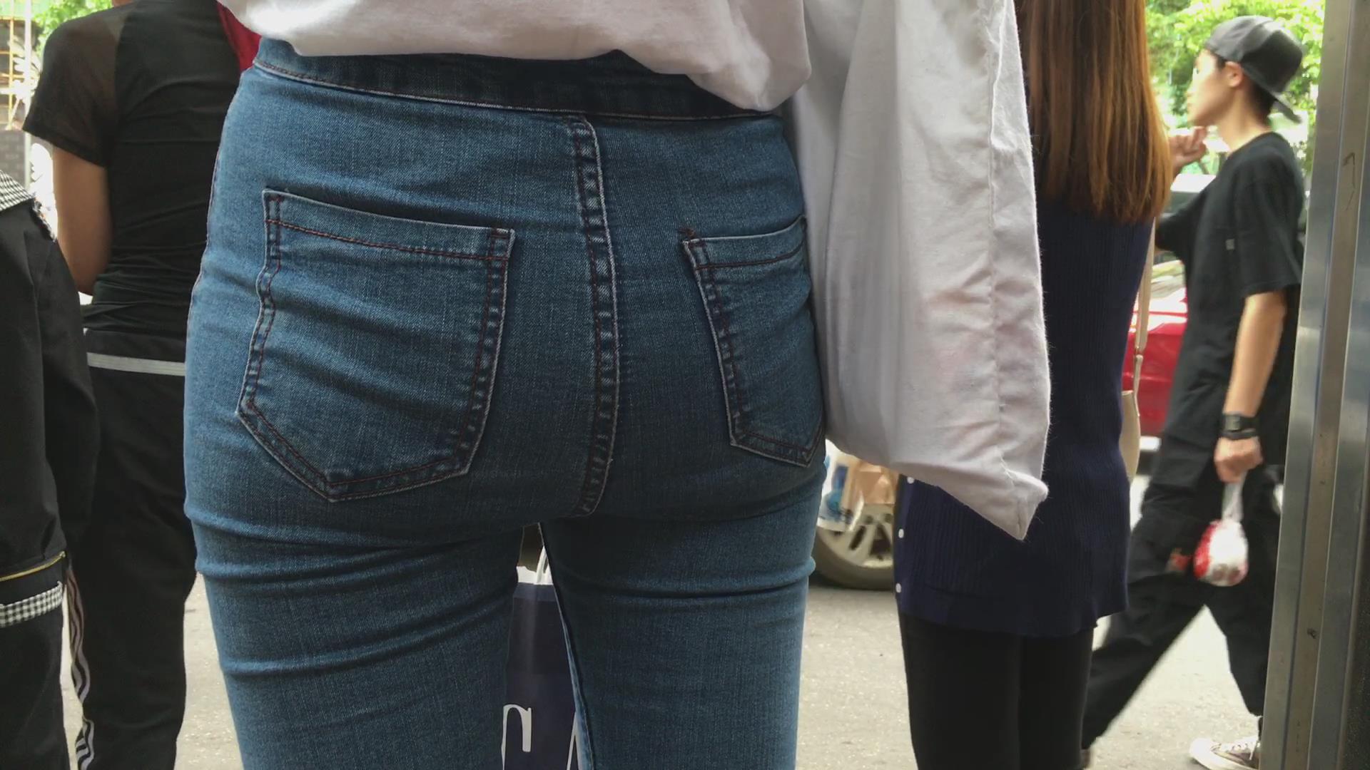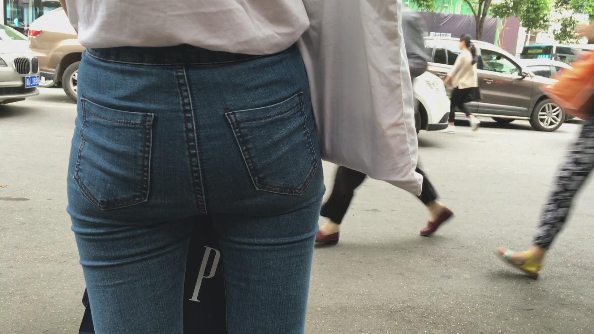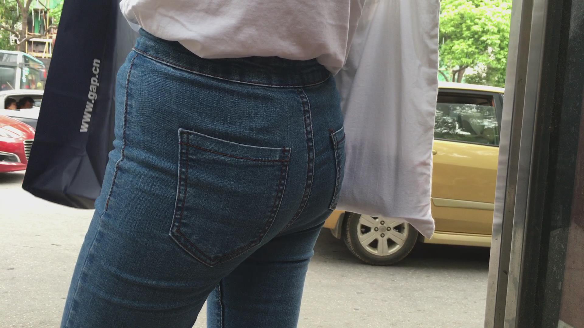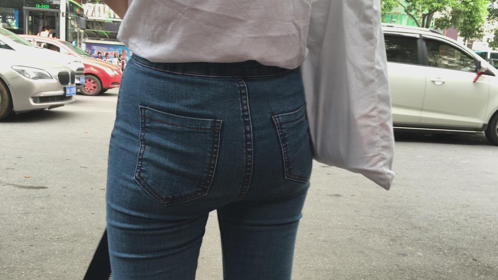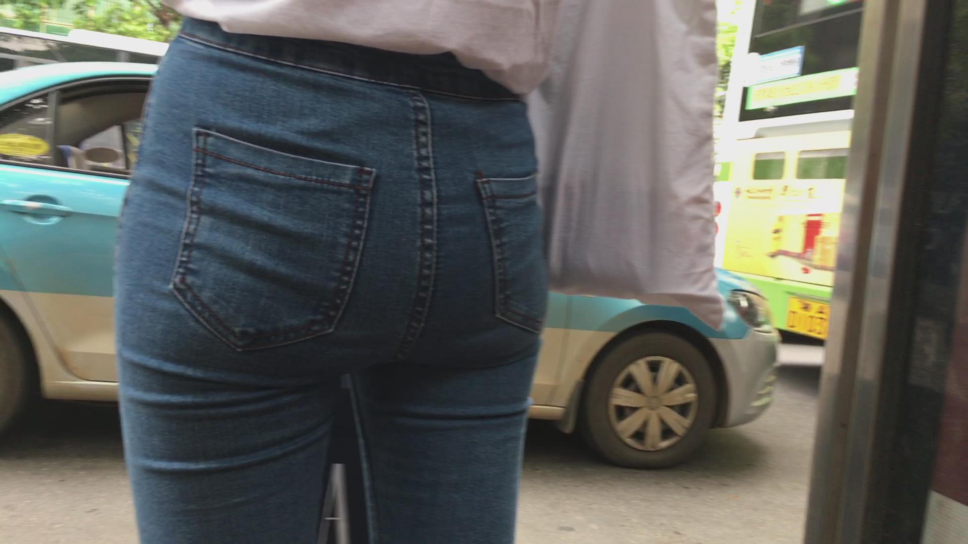 公交站拍摄极品丰满宽臀牛仔裤美女 编号6104