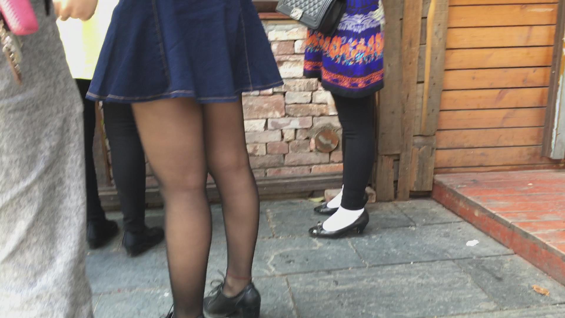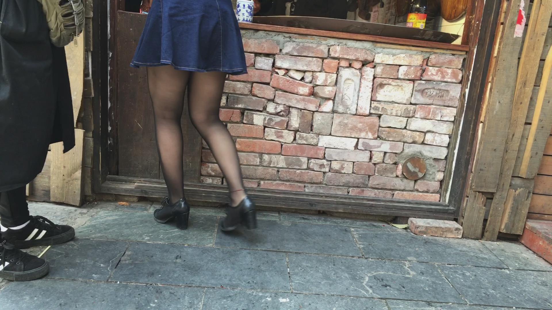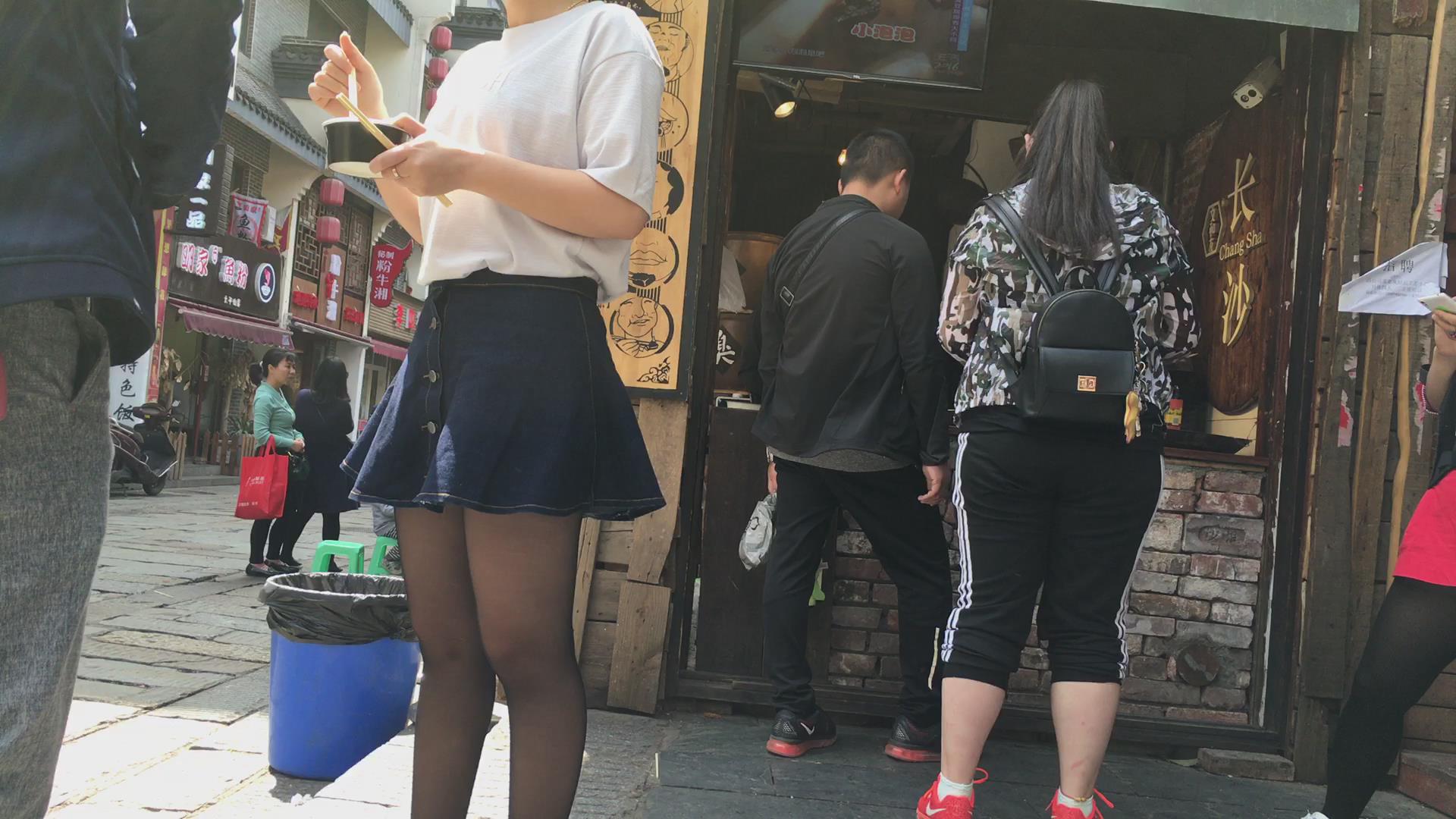 买臭豆腐吃的黄头发牛仔短裙妹子,丝袜不错哦 编号5175