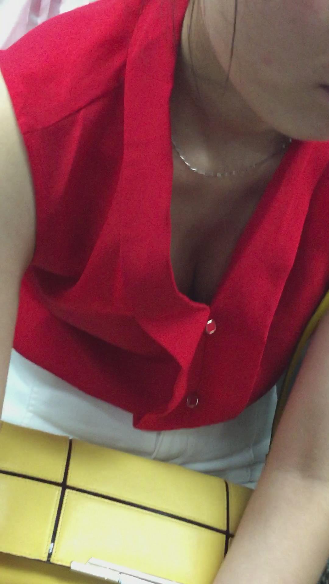 地铁上事业线很深的红衣女孩,很丰满 编号5186