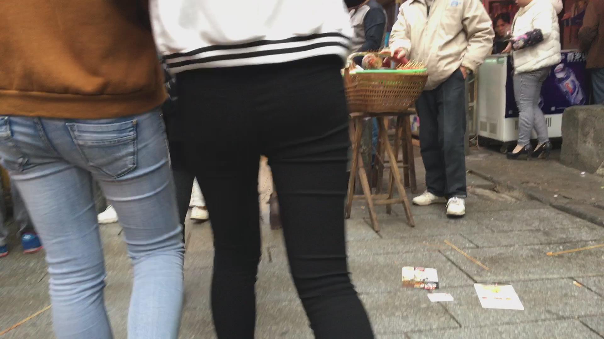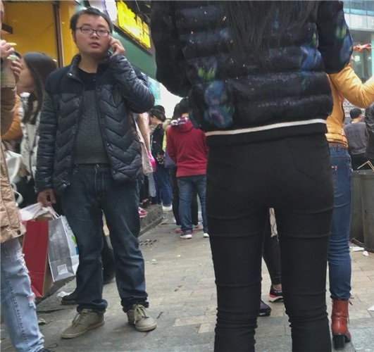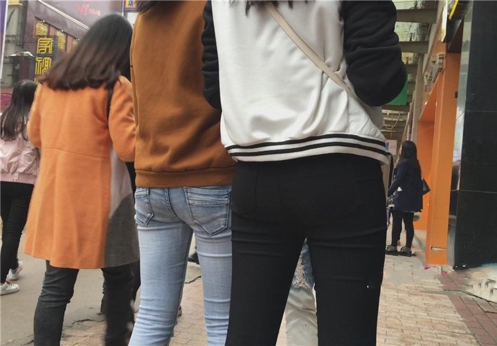紧身圆臀姐妹花逛街,年纪不大臀很翘 编号6106