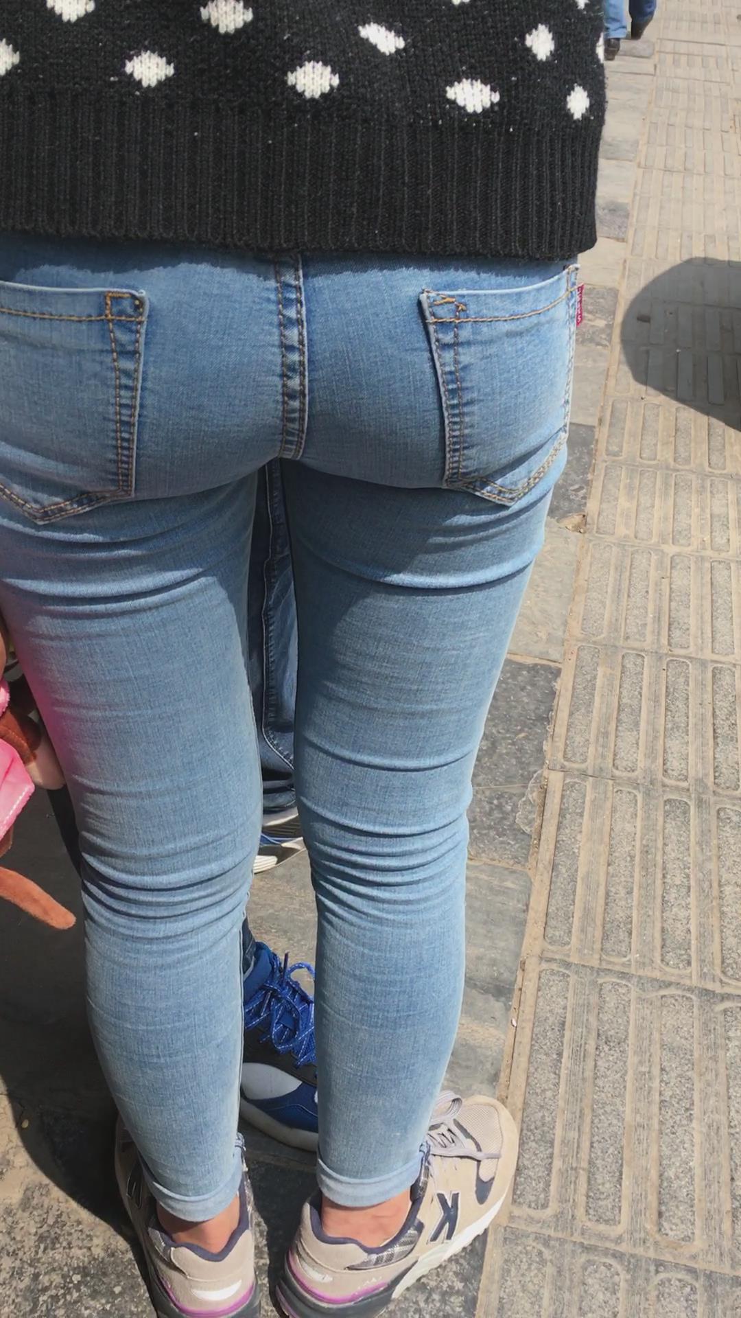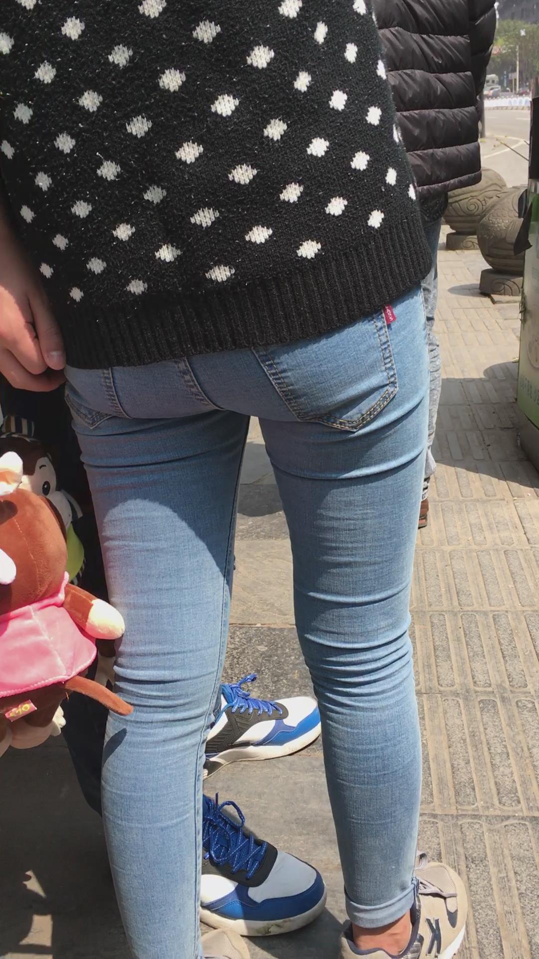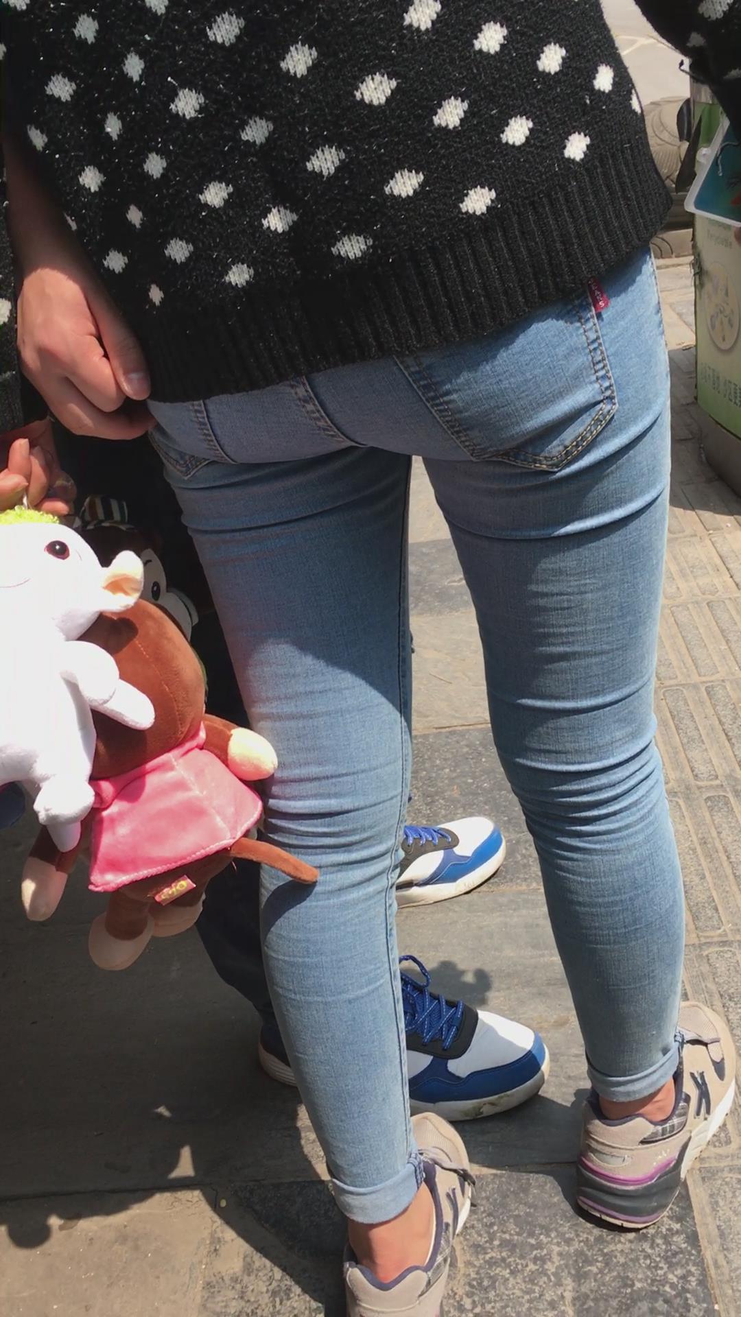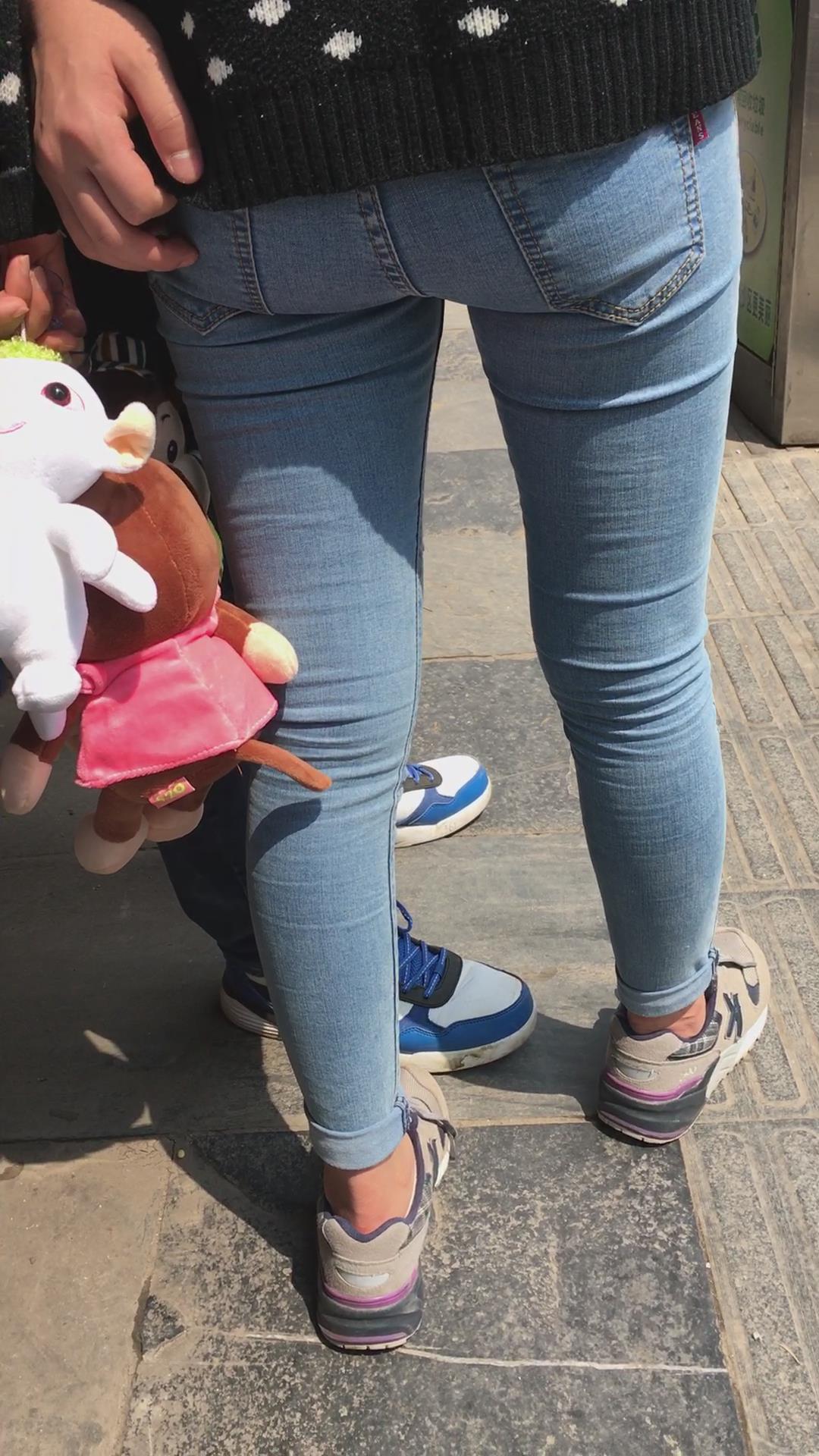 极品蓝色紧身牛仔裤运动鞋少女 编号5230