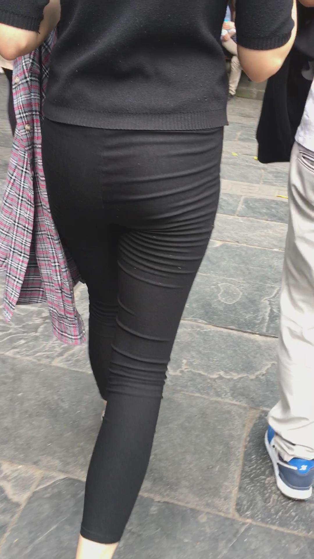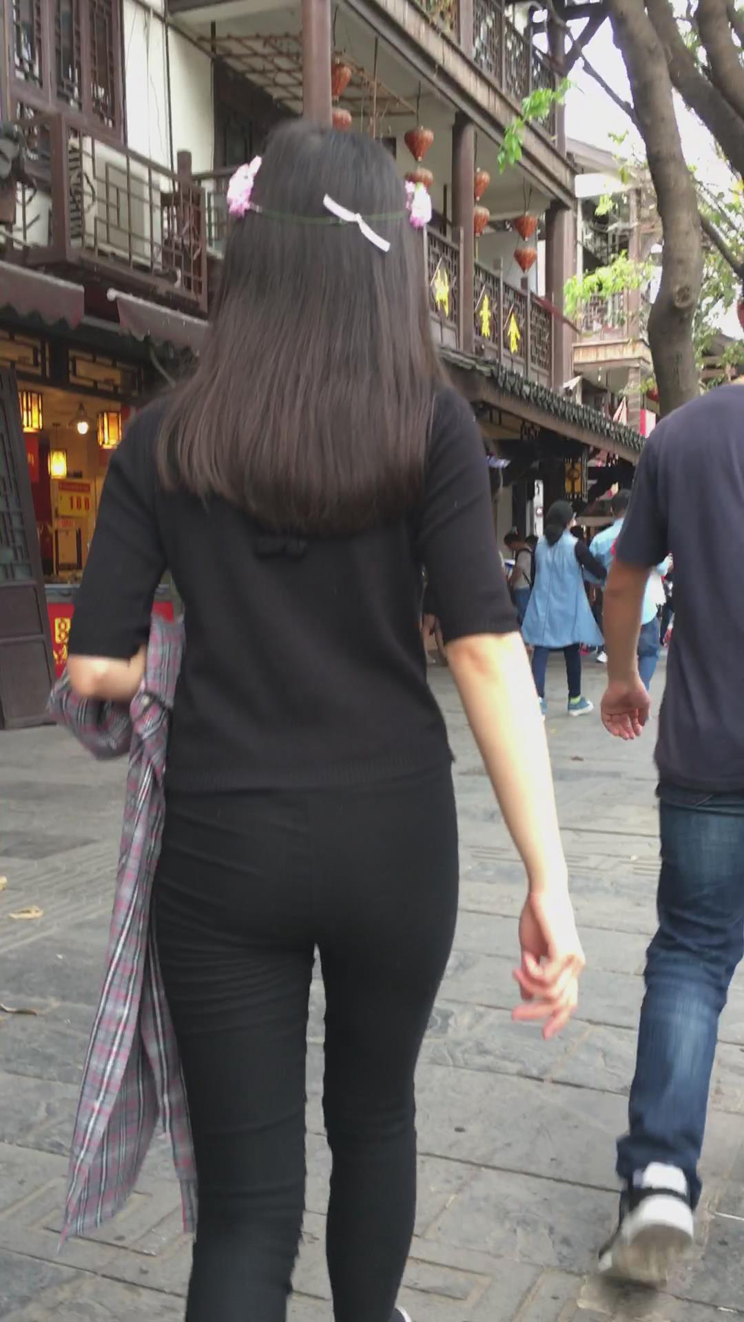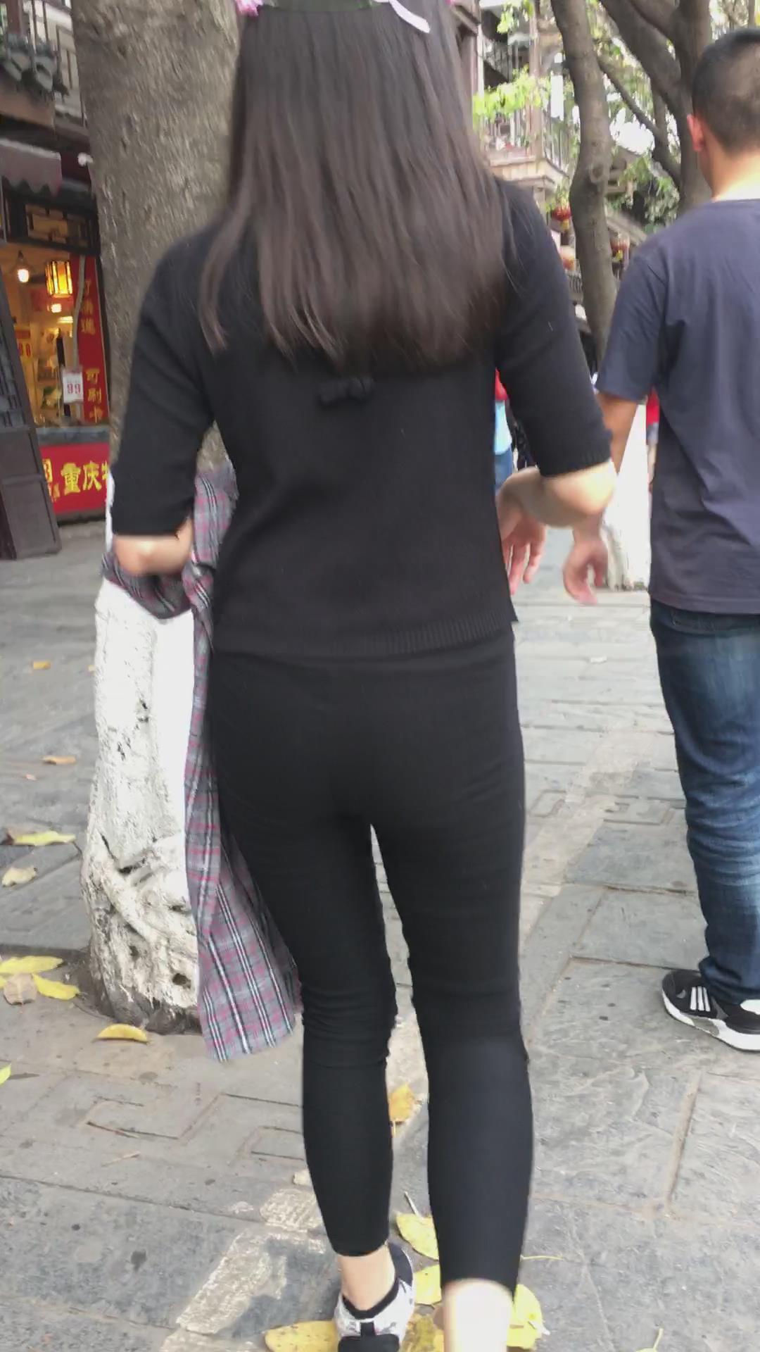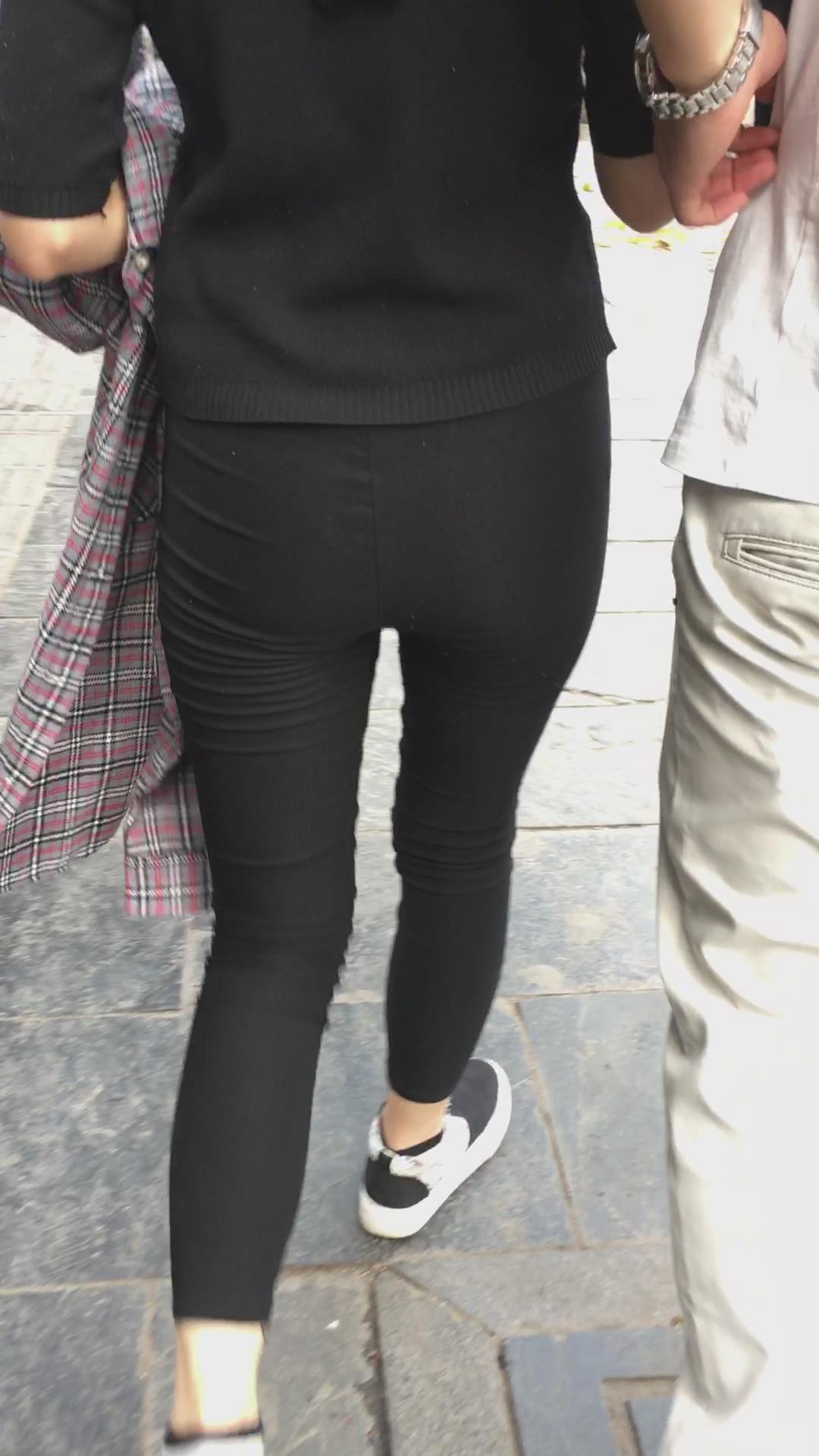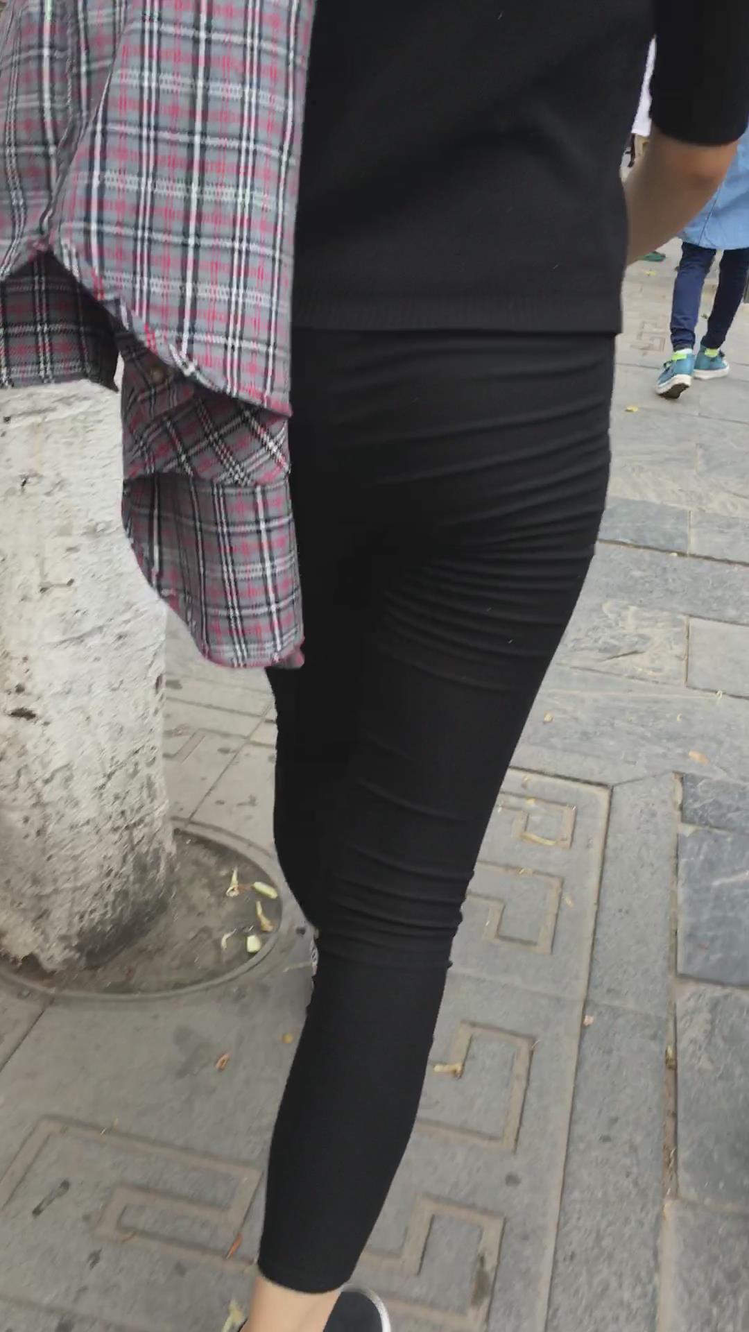 街拍黑色紧身裤苹果臀美眉 编号5231