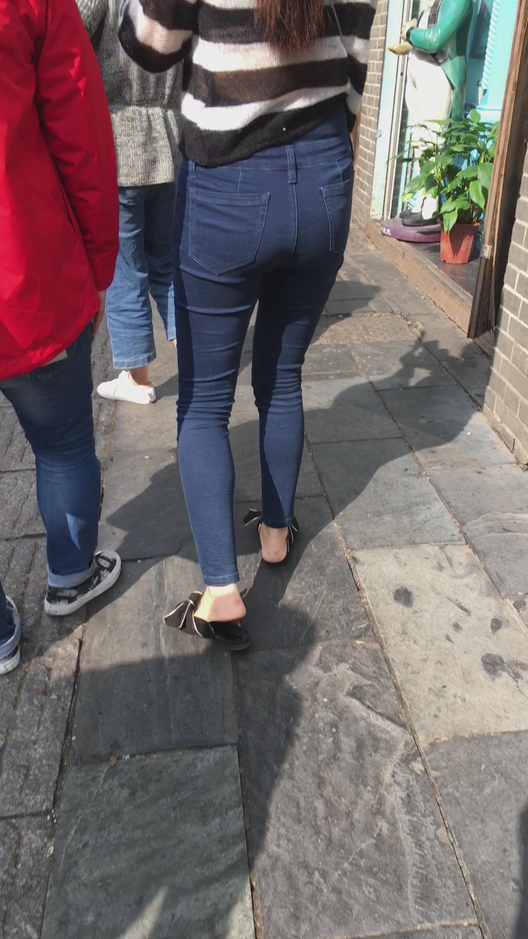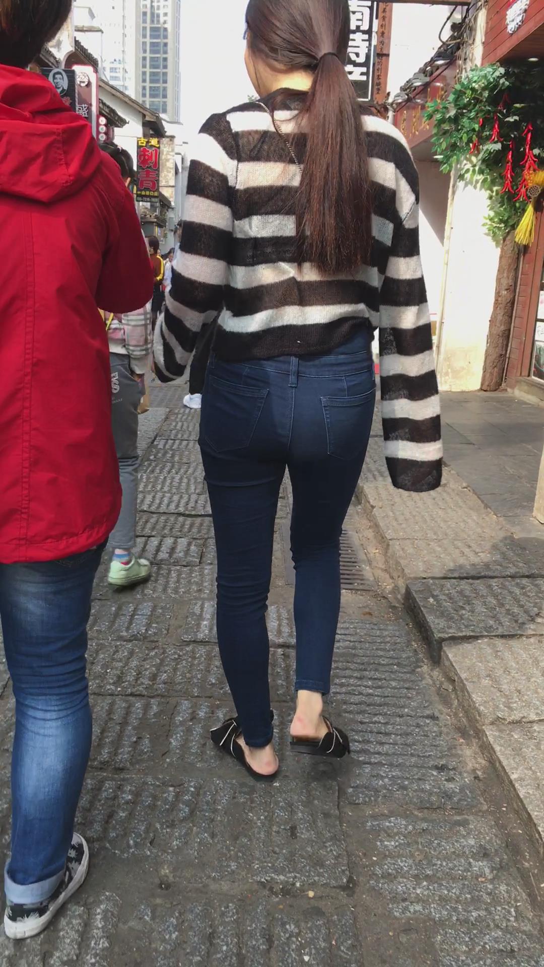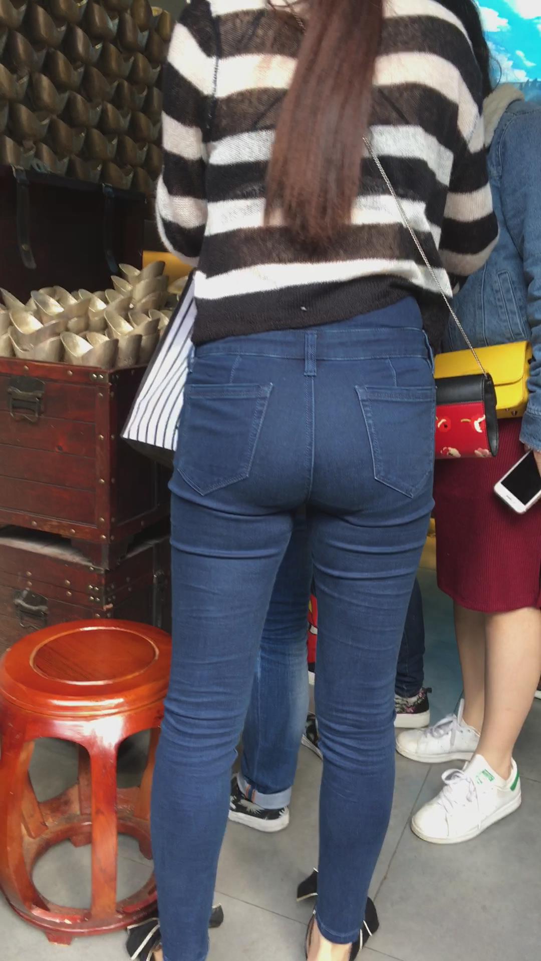 紧身蓝色牛仔裤美女小姐姐 编号5251