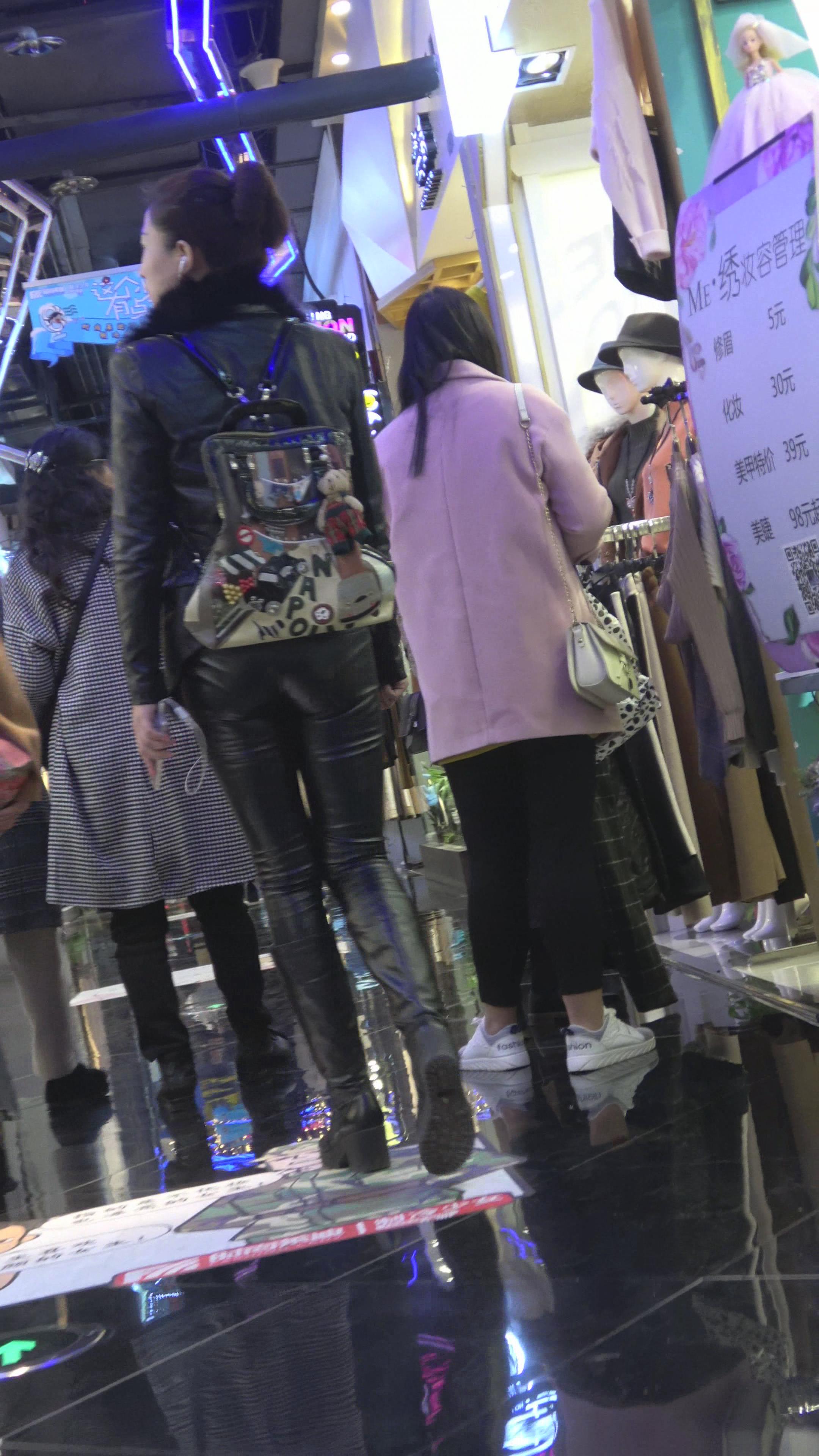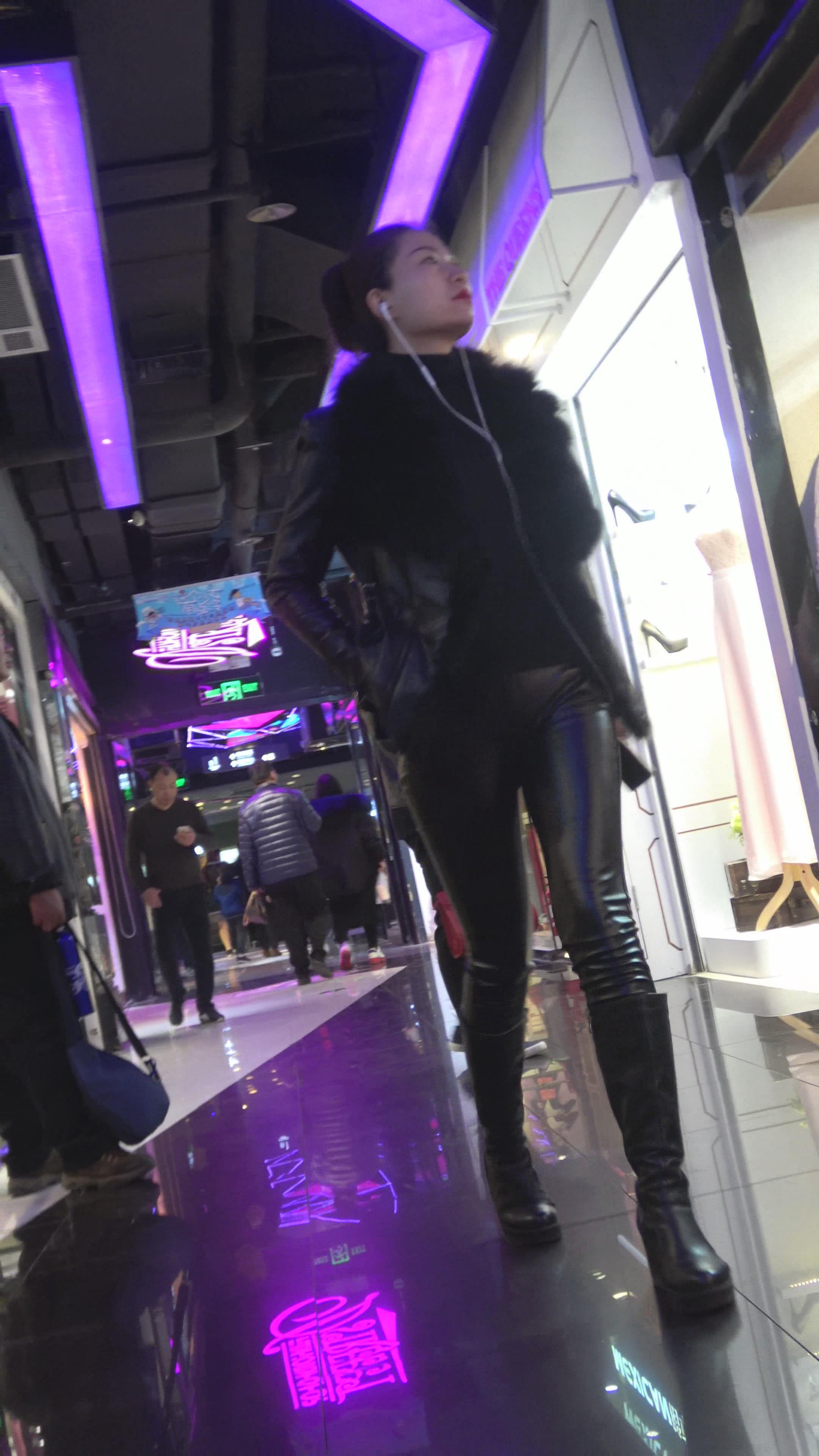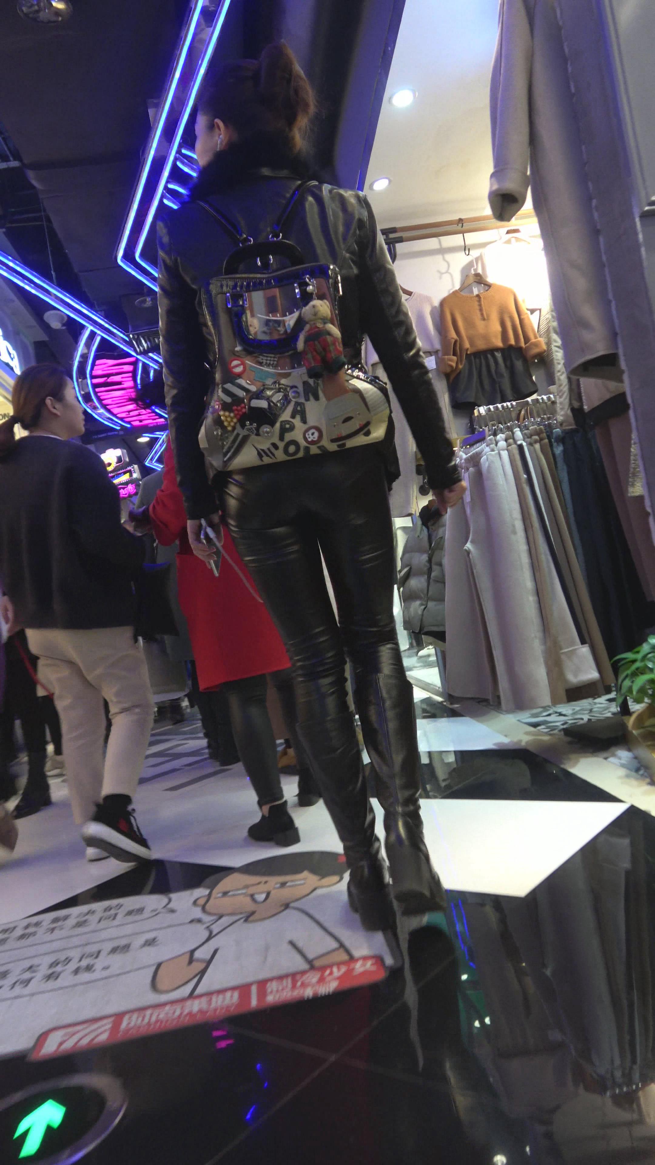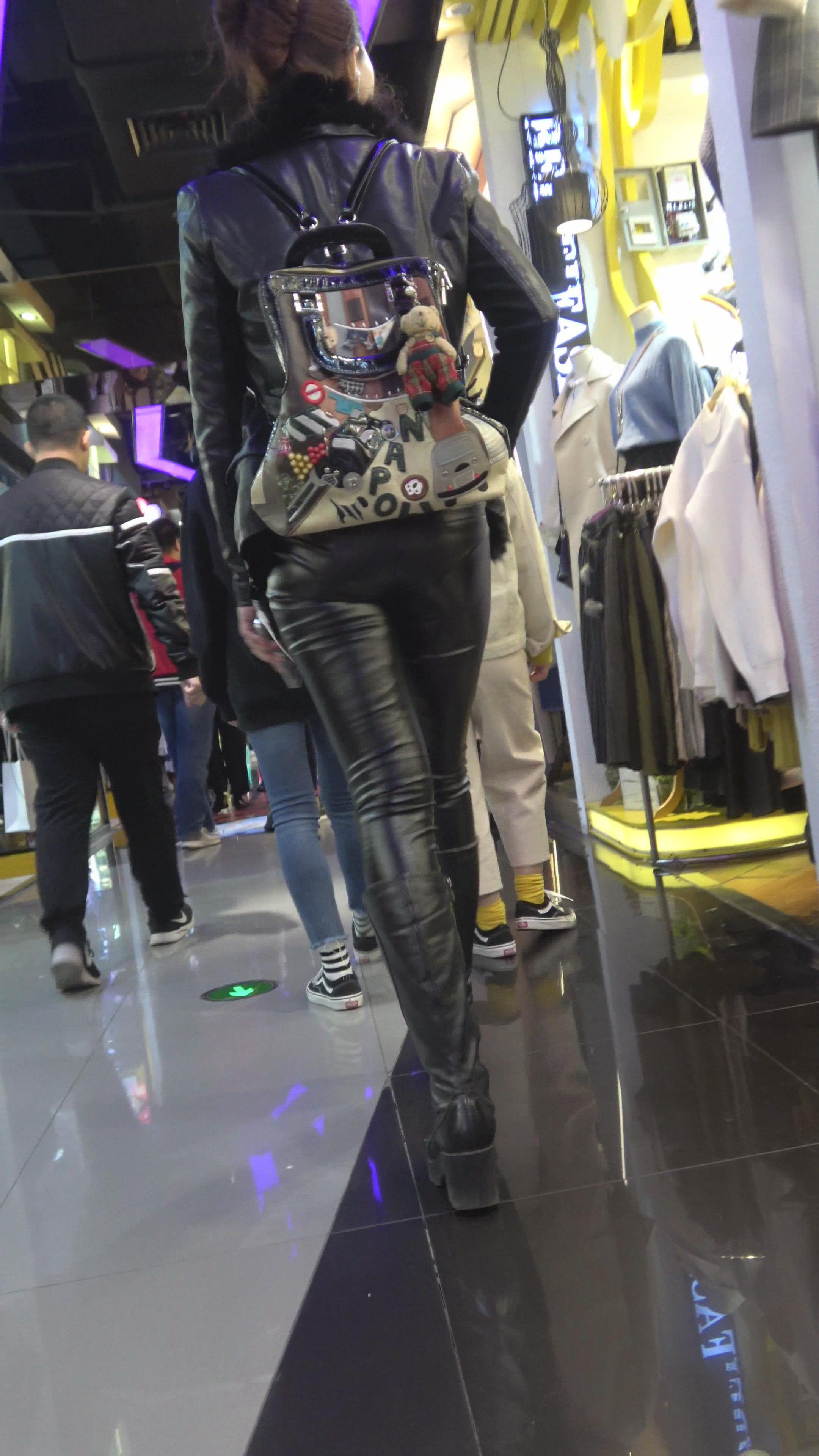 4K - 逛商场的紧身皮裤街拍少妇 编号5266
