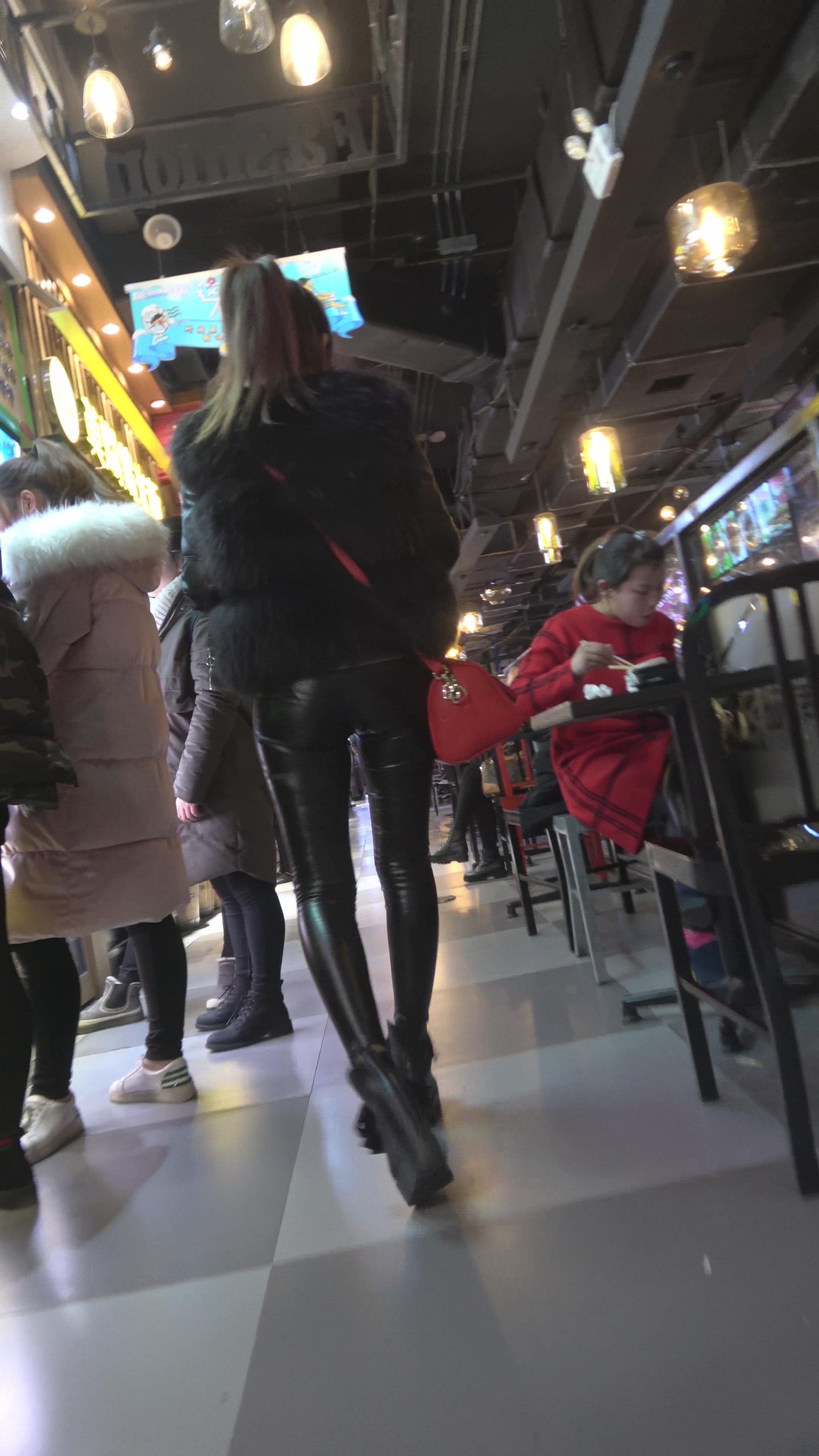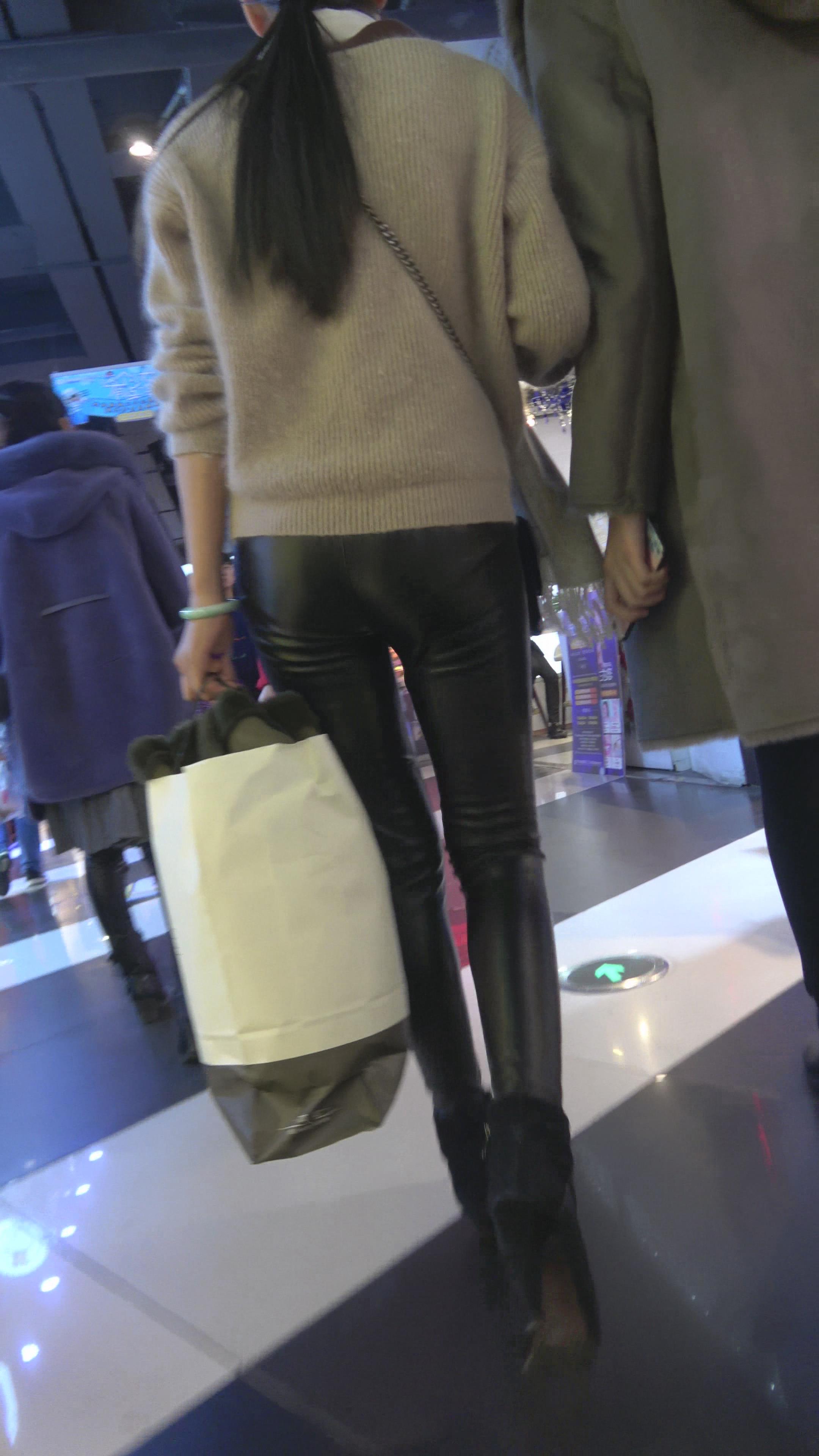 4K - 逛商场的紧身皮裤性感美女 编号5269