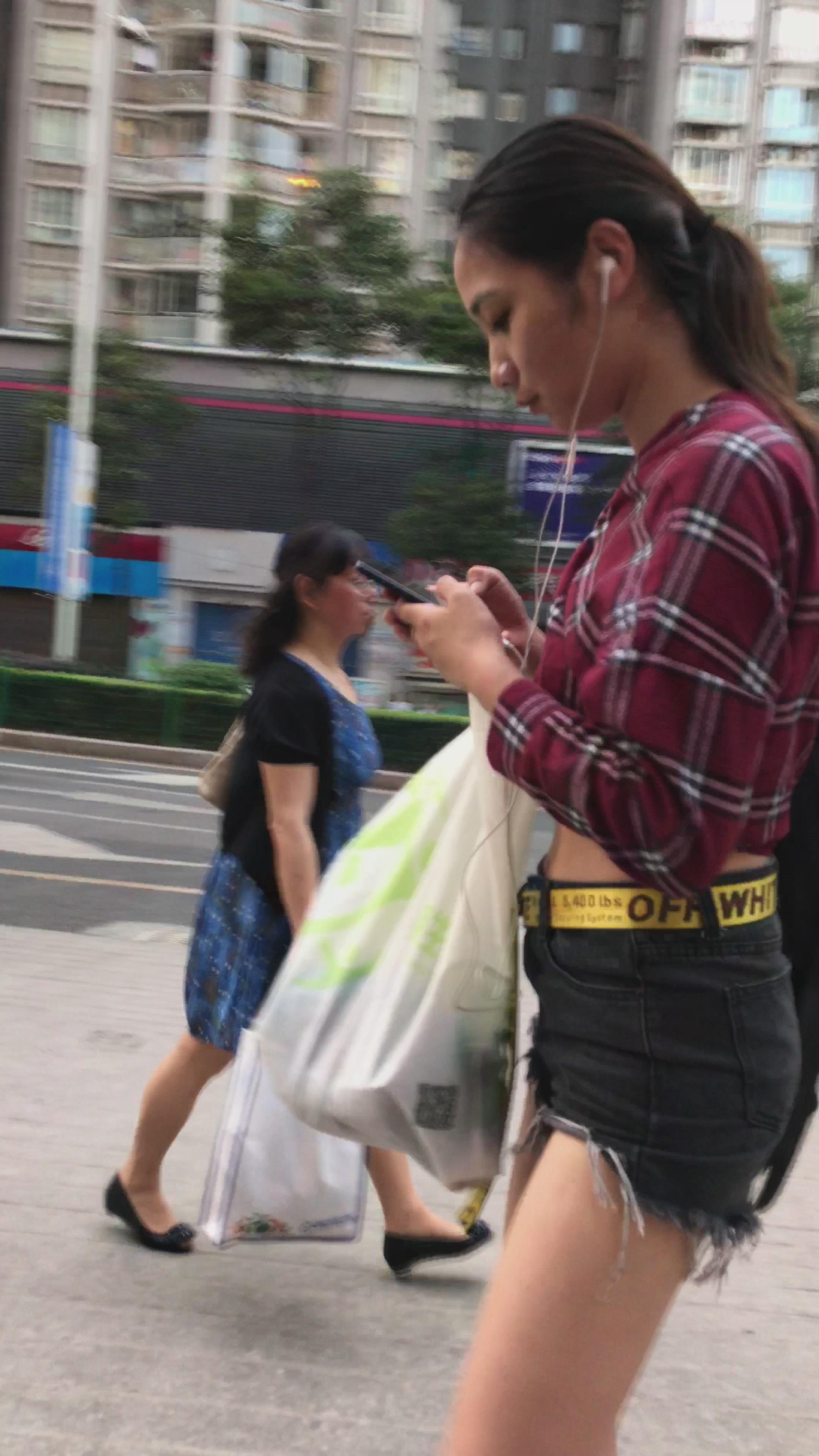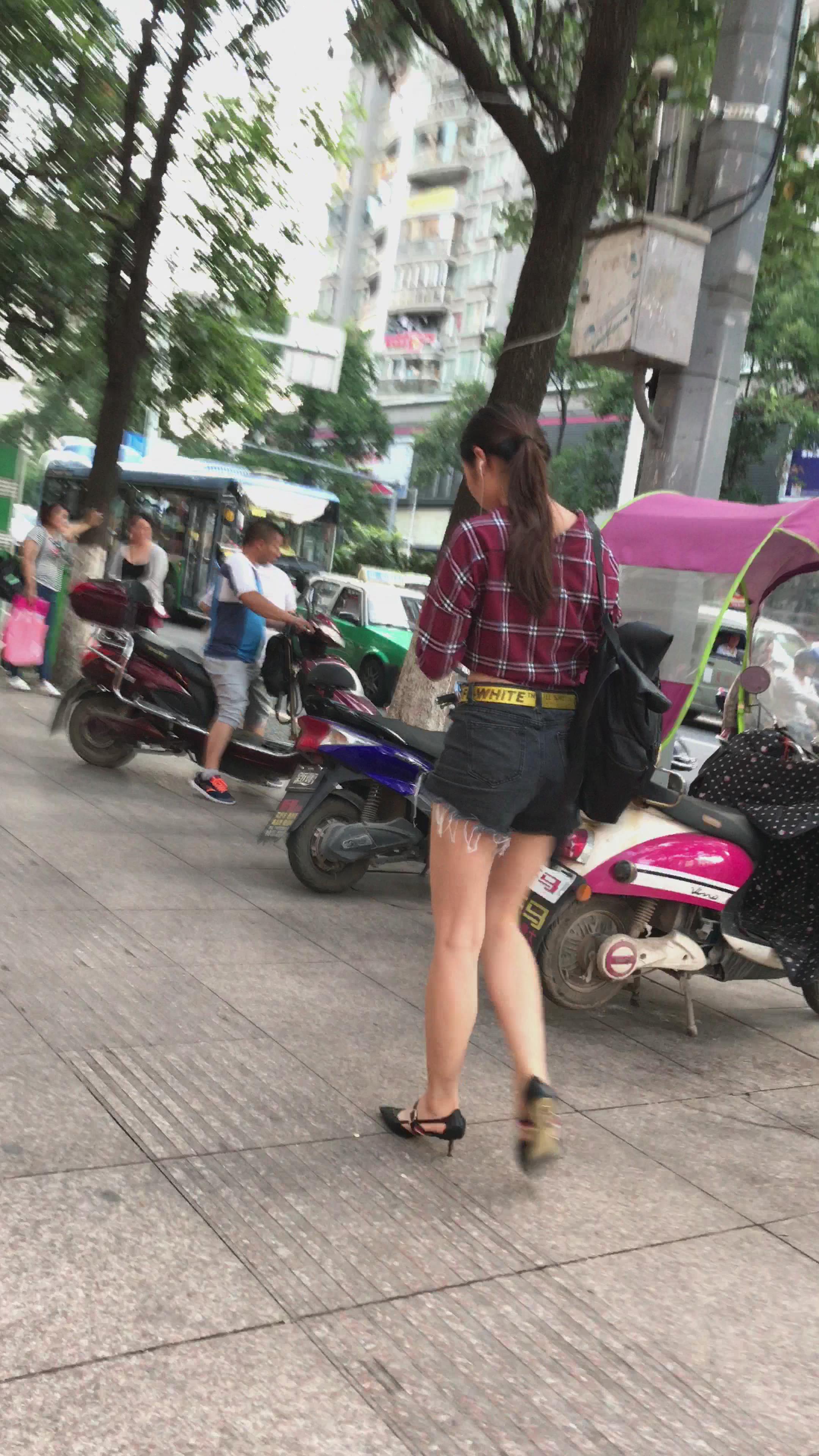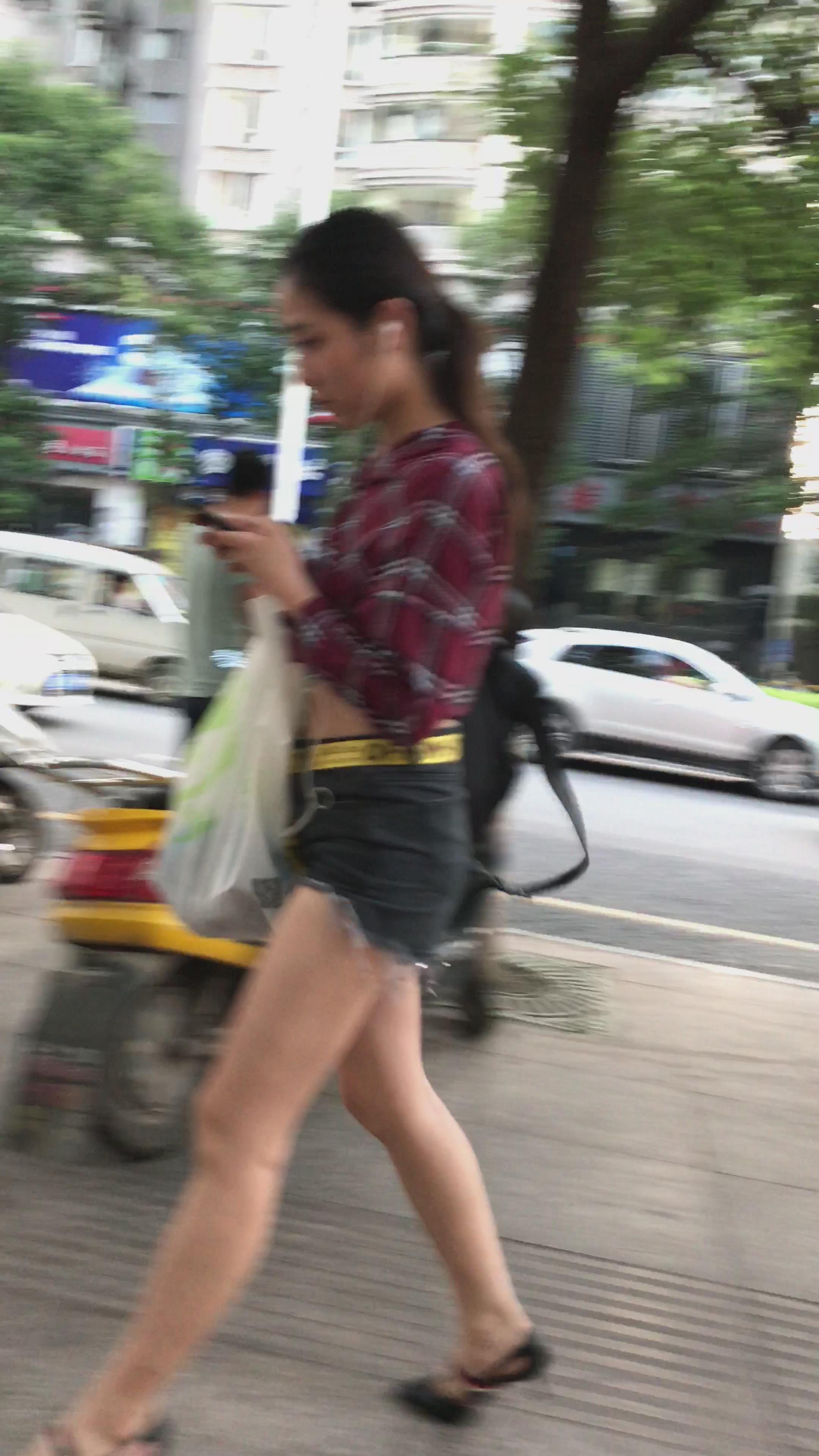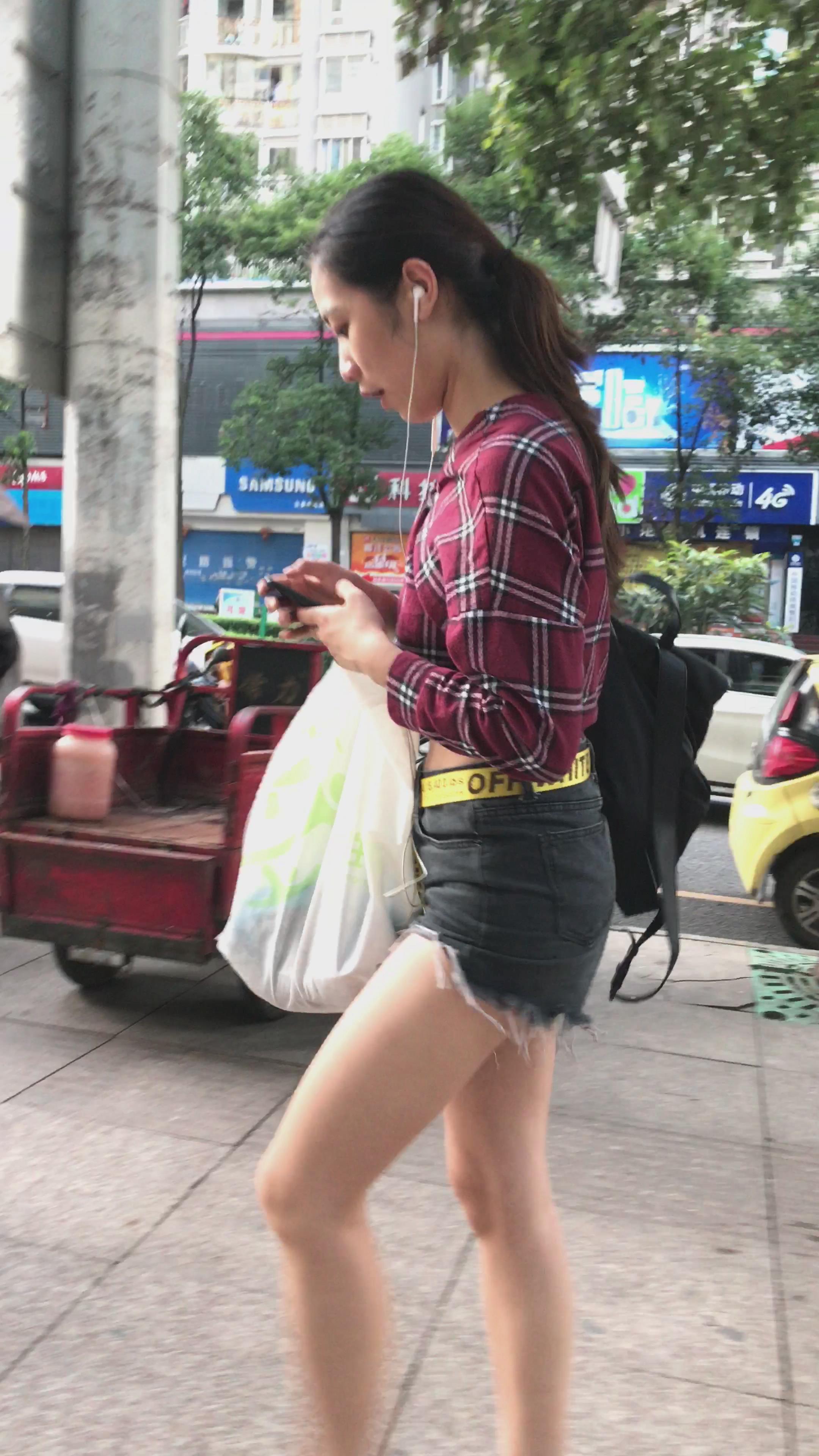 4K - 超短热裤格子衬衫性感美女姐姐 编号5282