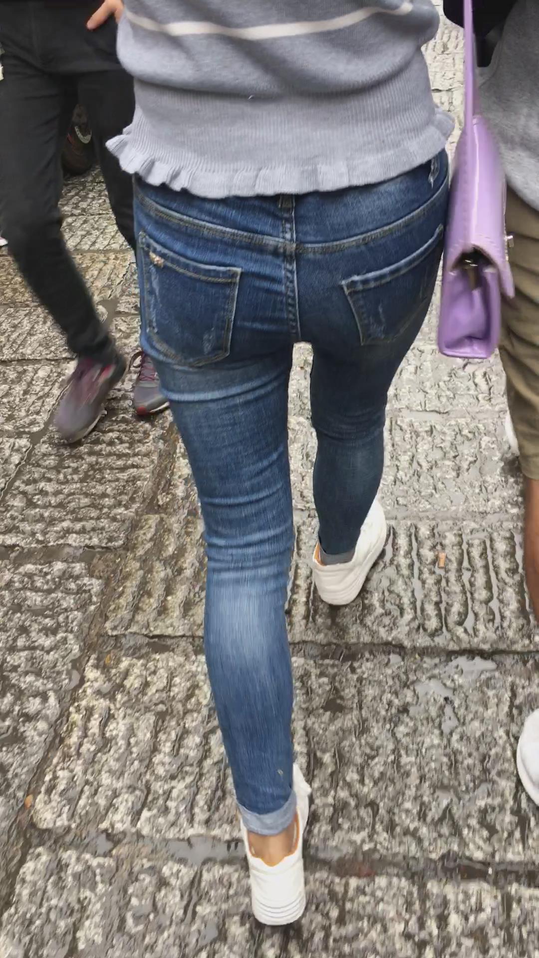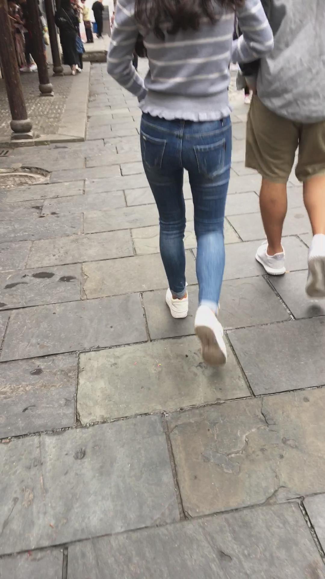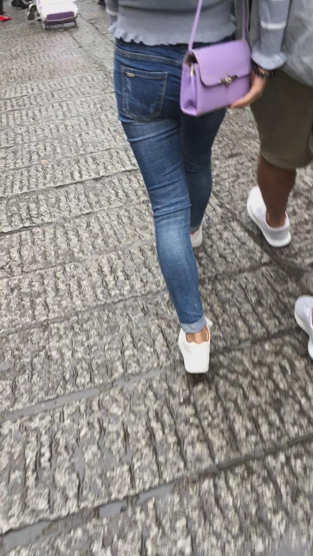 逛街偶遇牛仔裤圆臀学生妹 编号5292