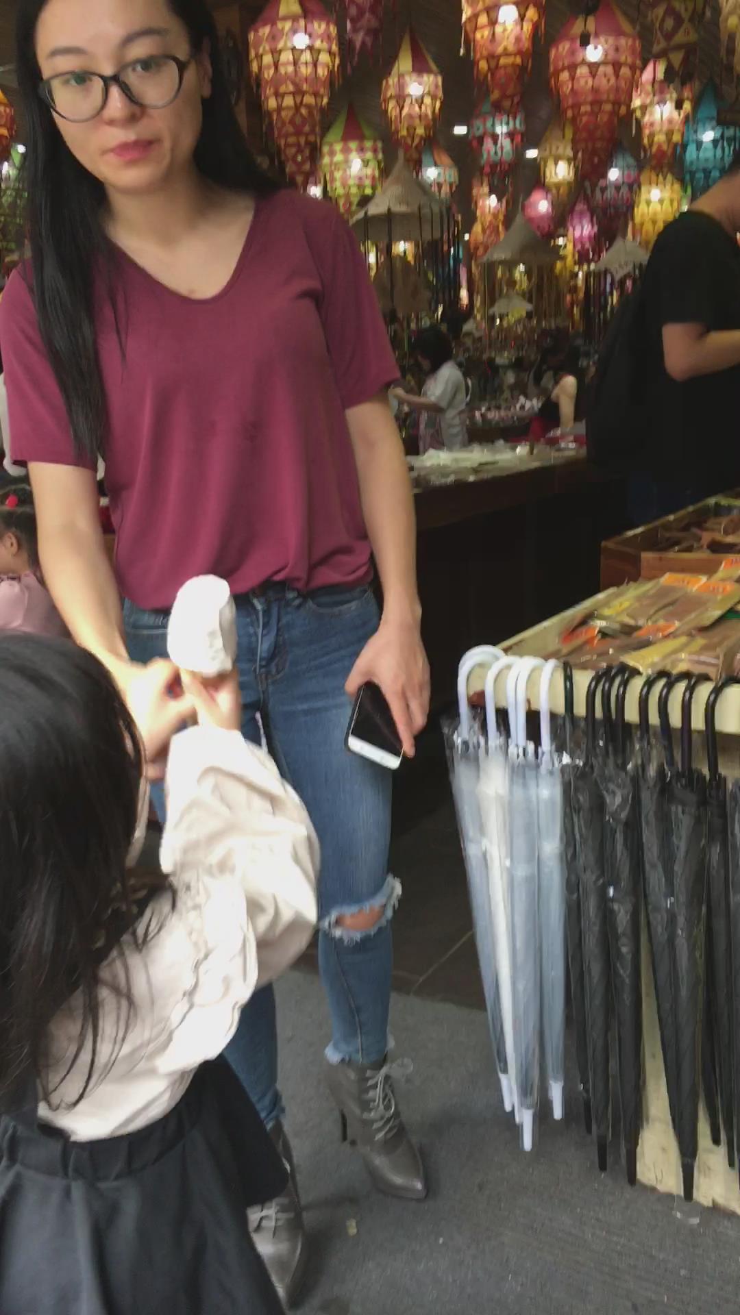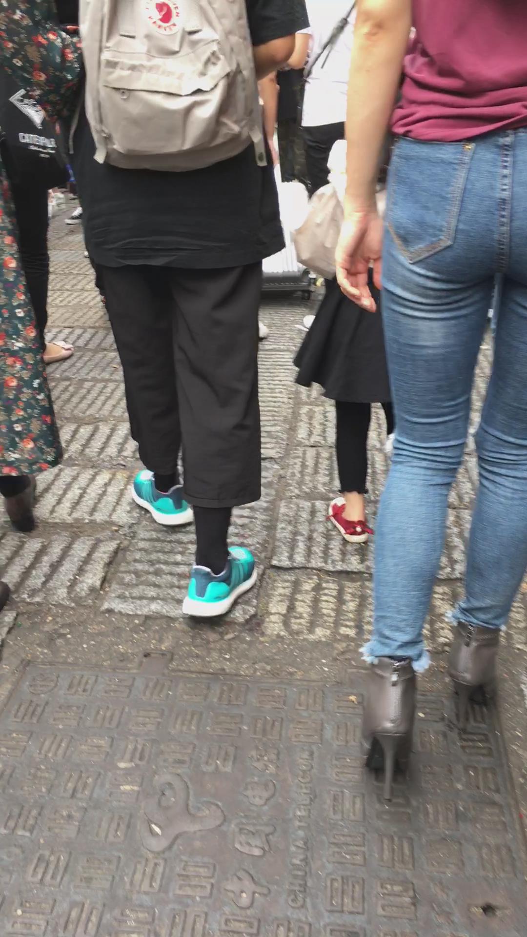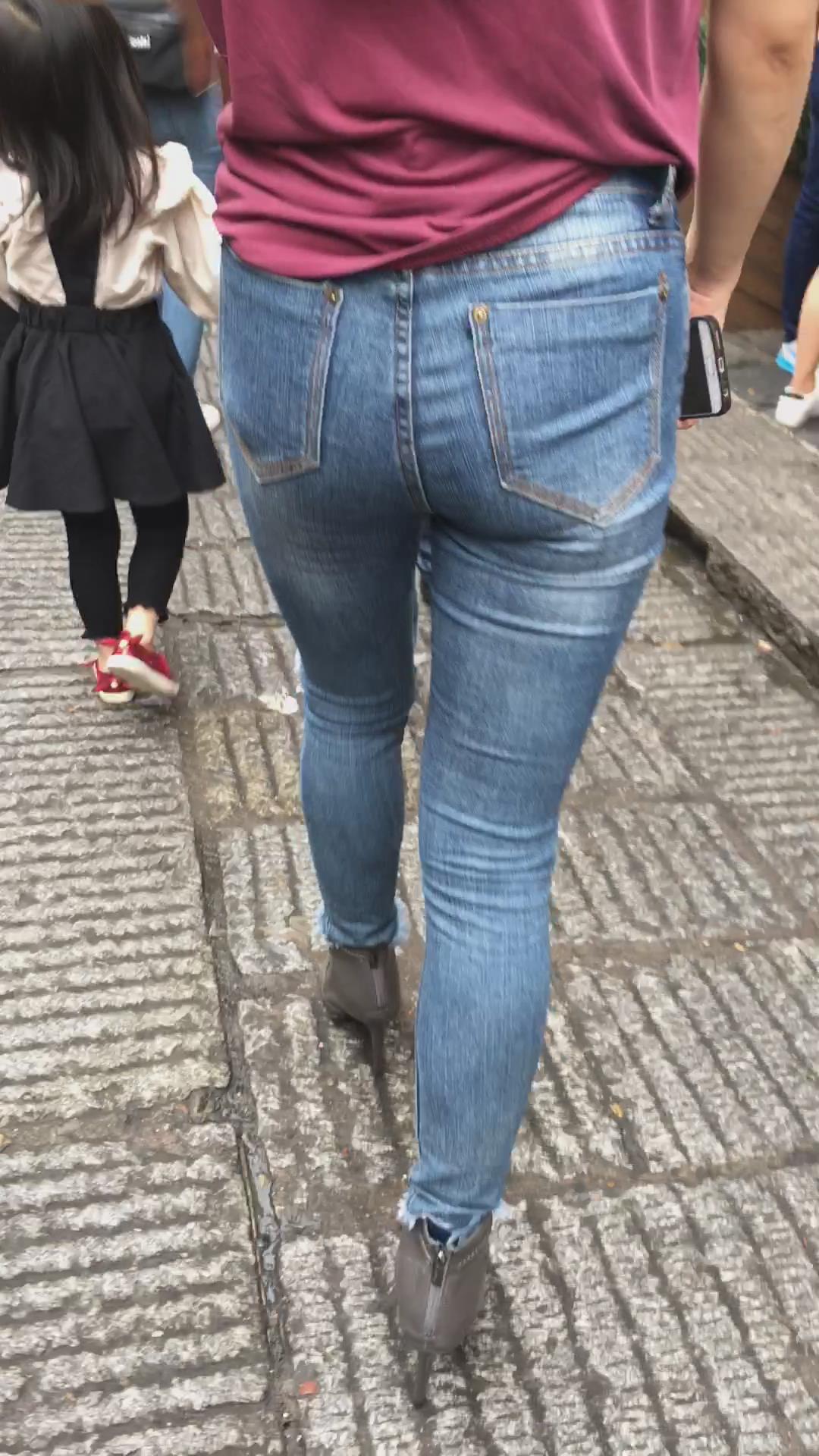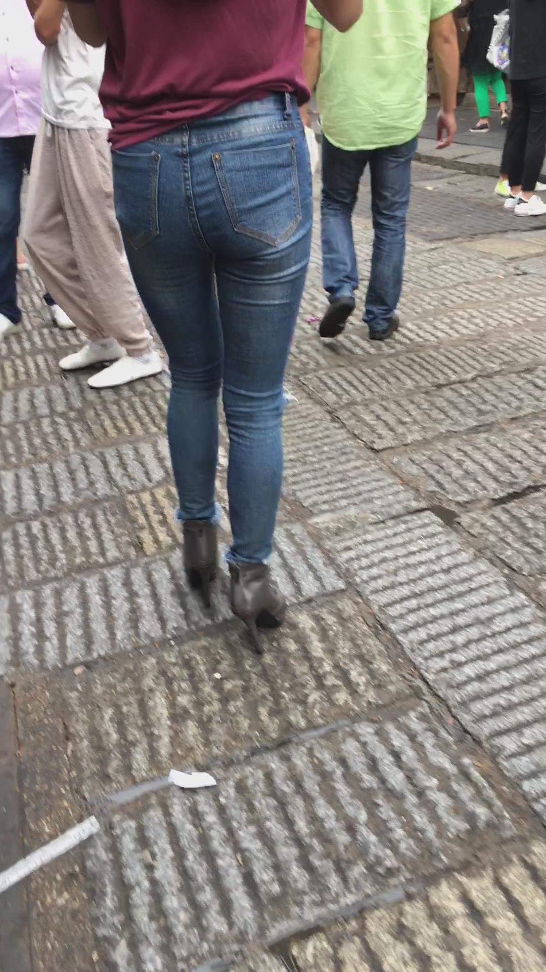 街拍紧身蓝牛高跟鞋圆臀街拍美女视频 编号5322