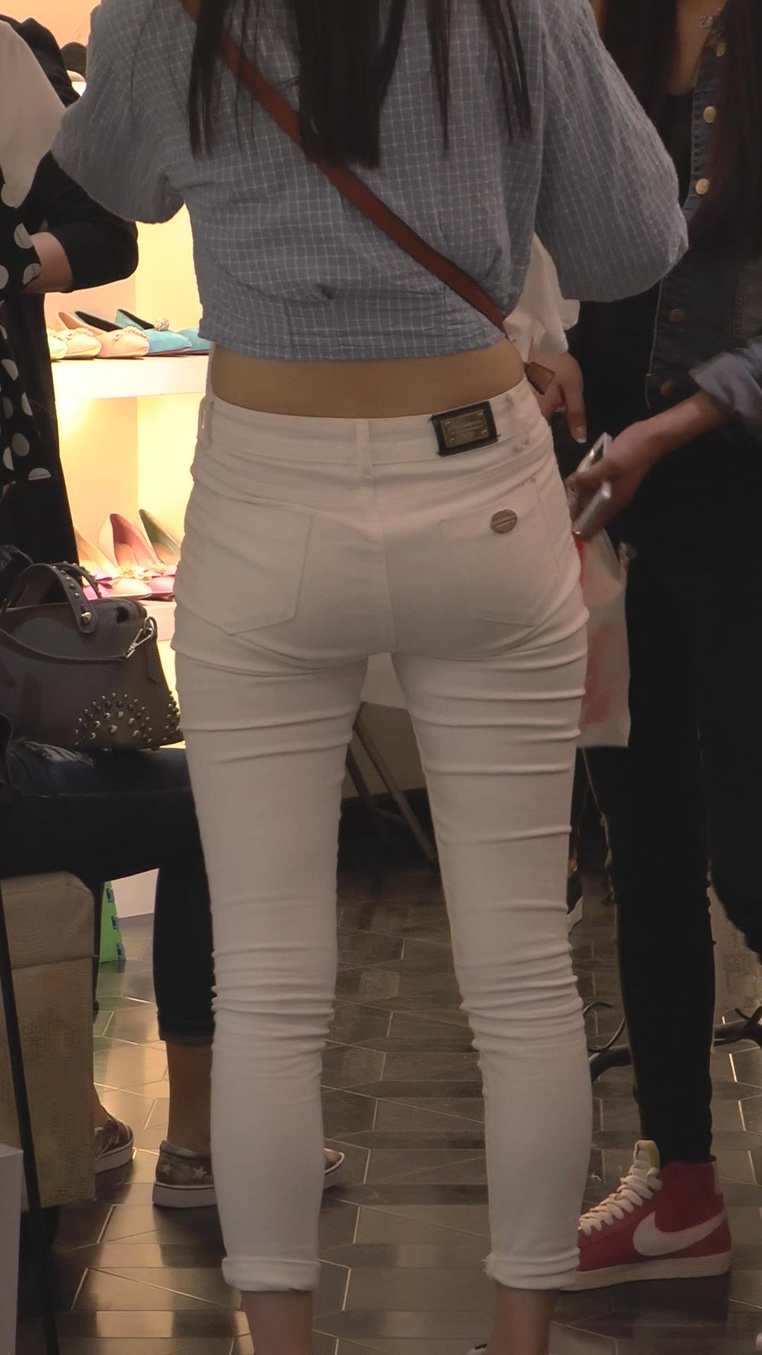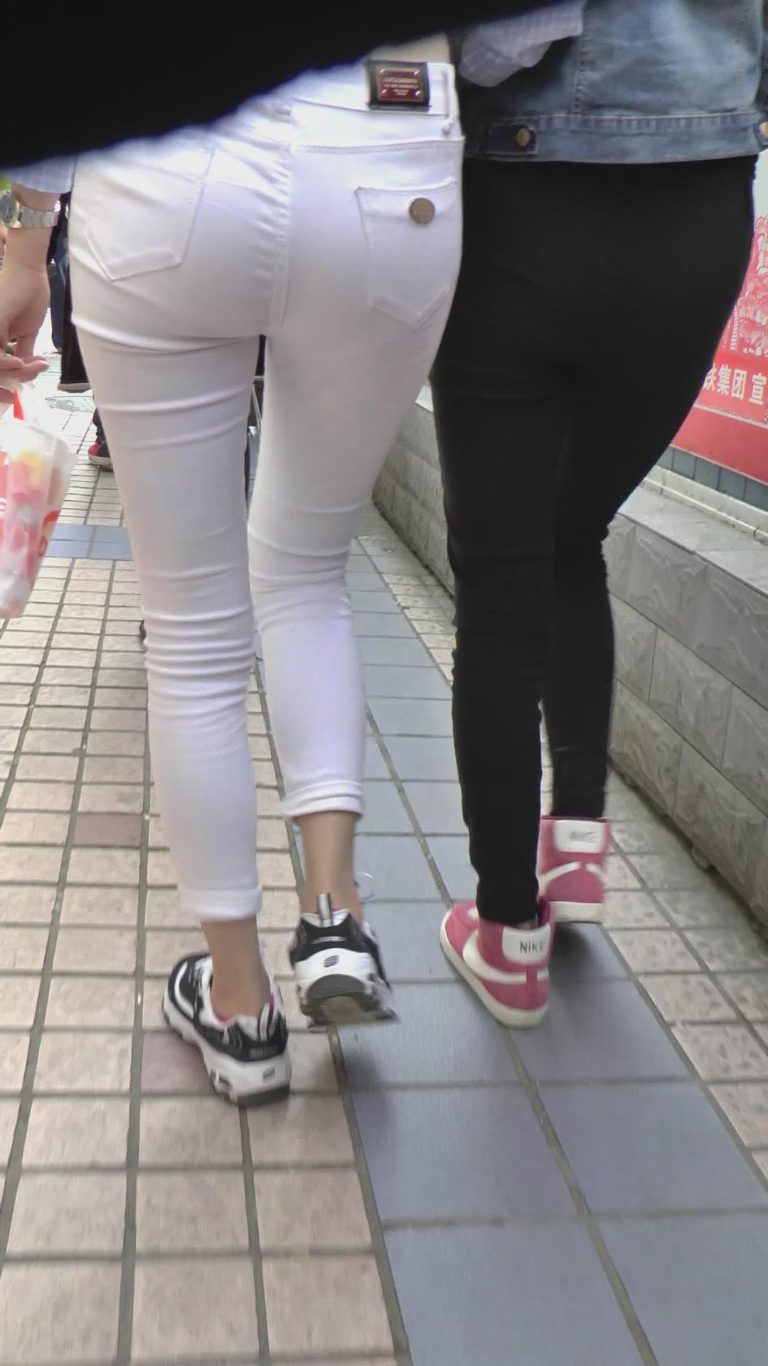 极品紧身白裤美臀少女,紧到令人窒息 编号5324
