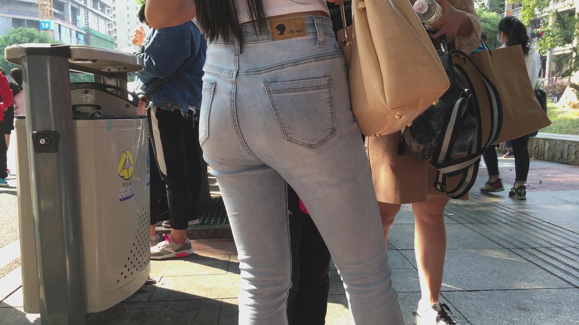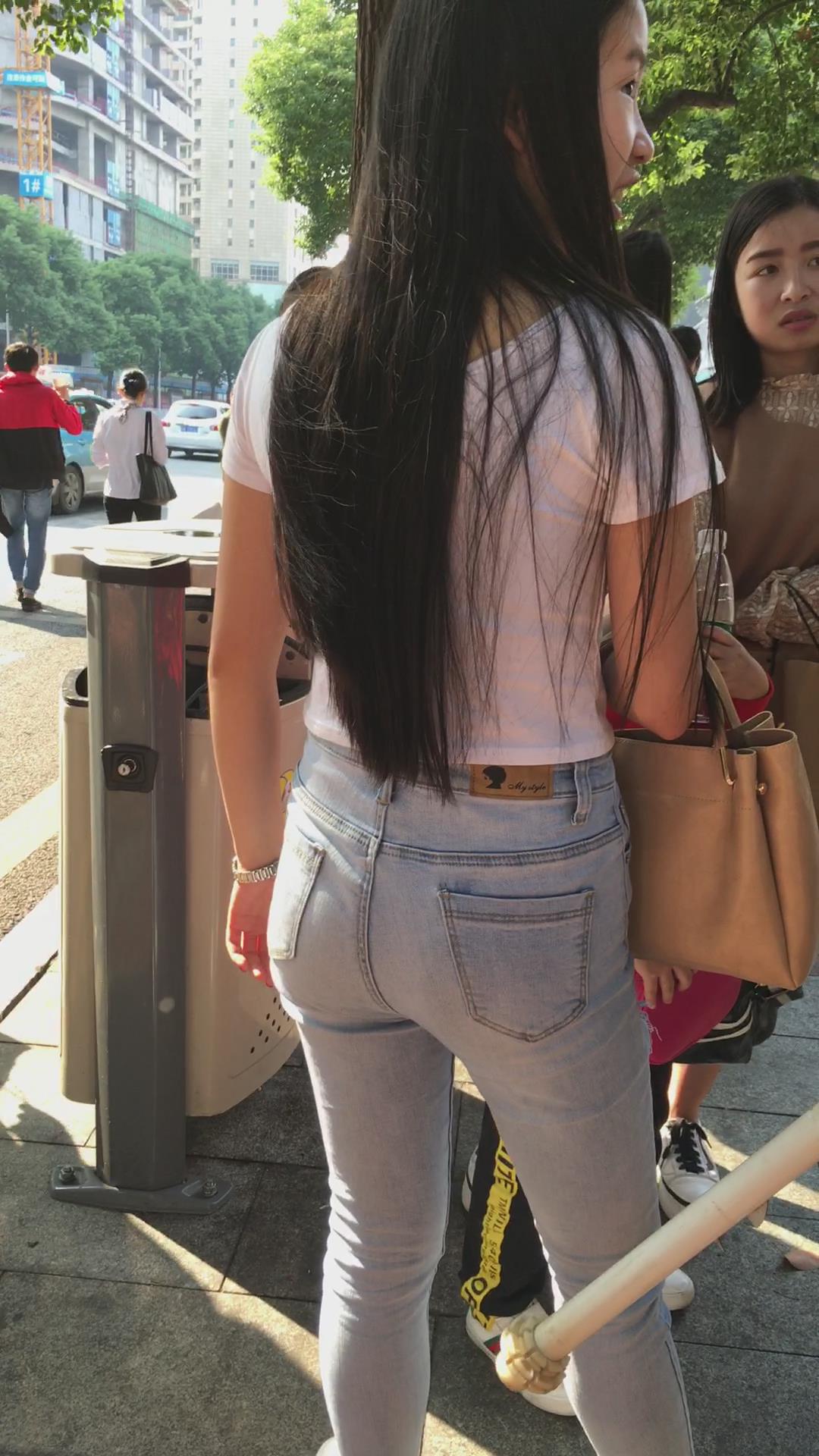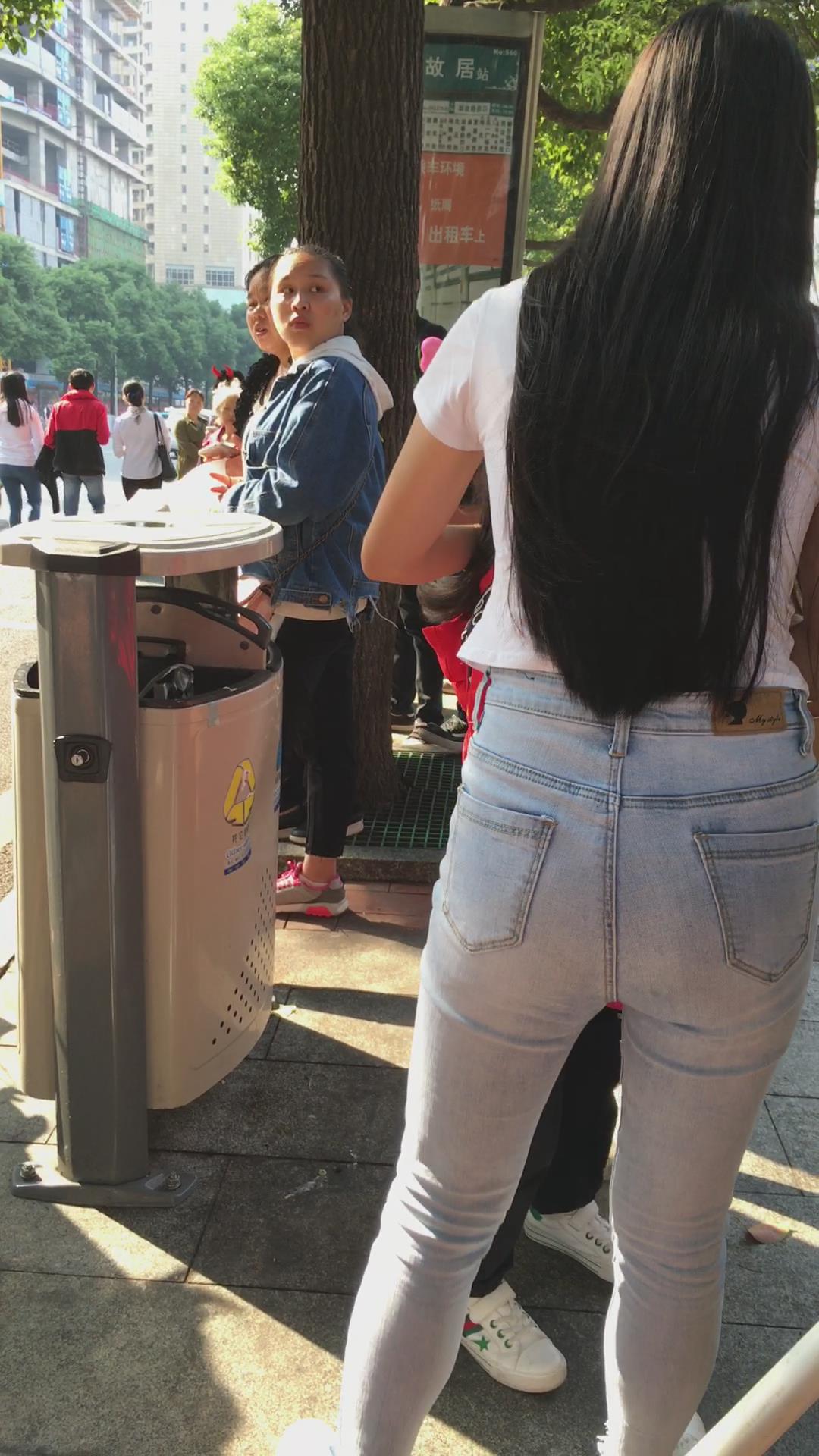 极品白T恤蓝色牛仔裤翘臀街拍美女 编号5330