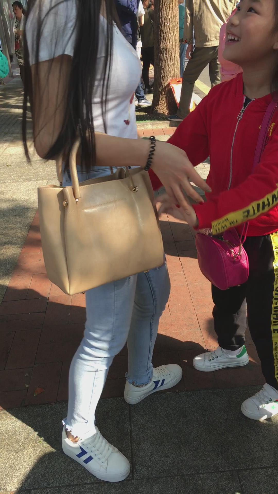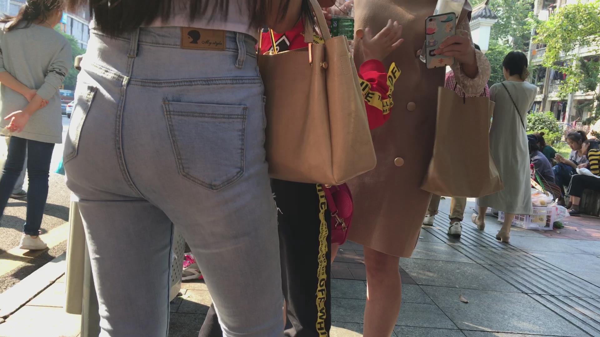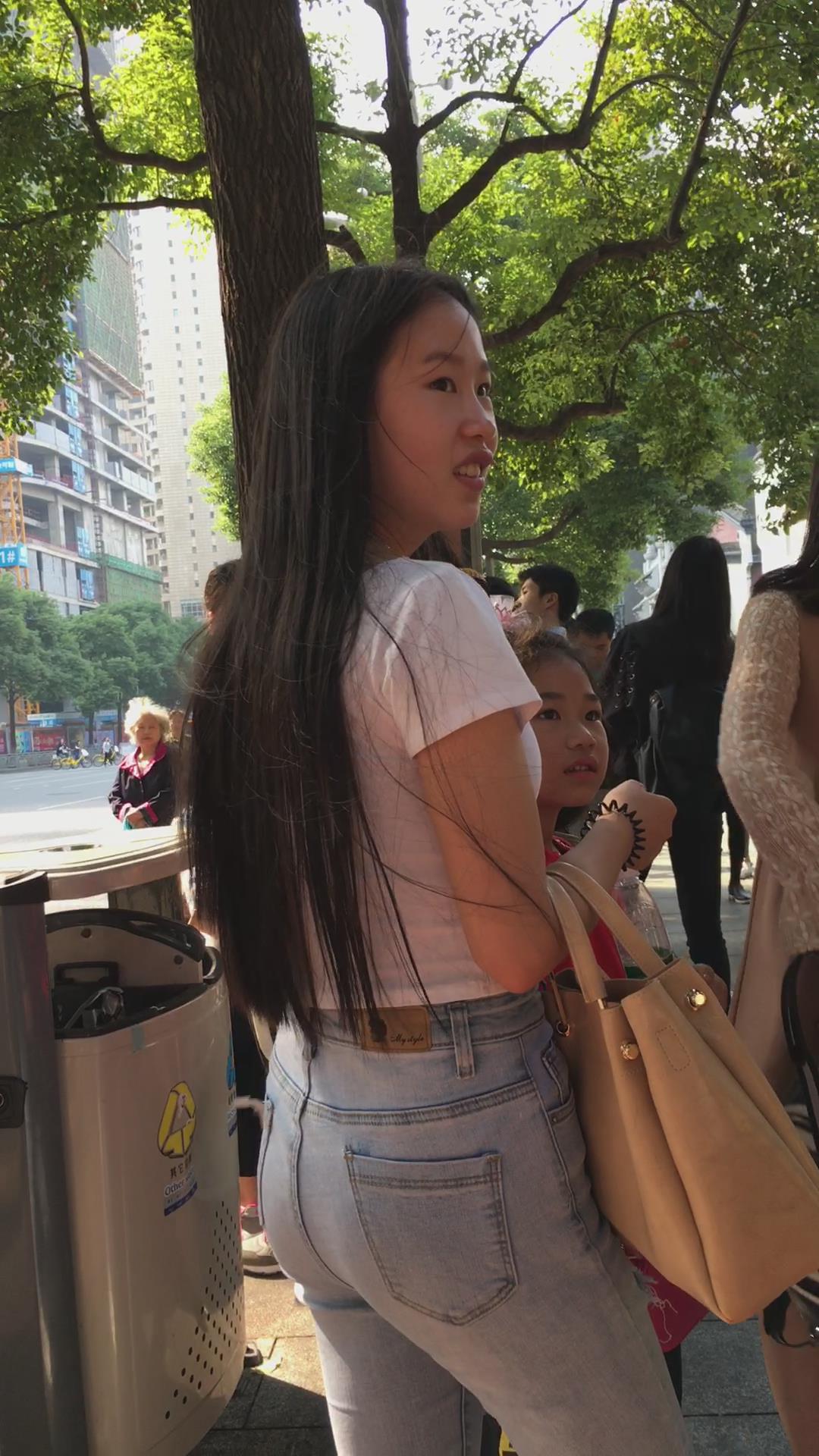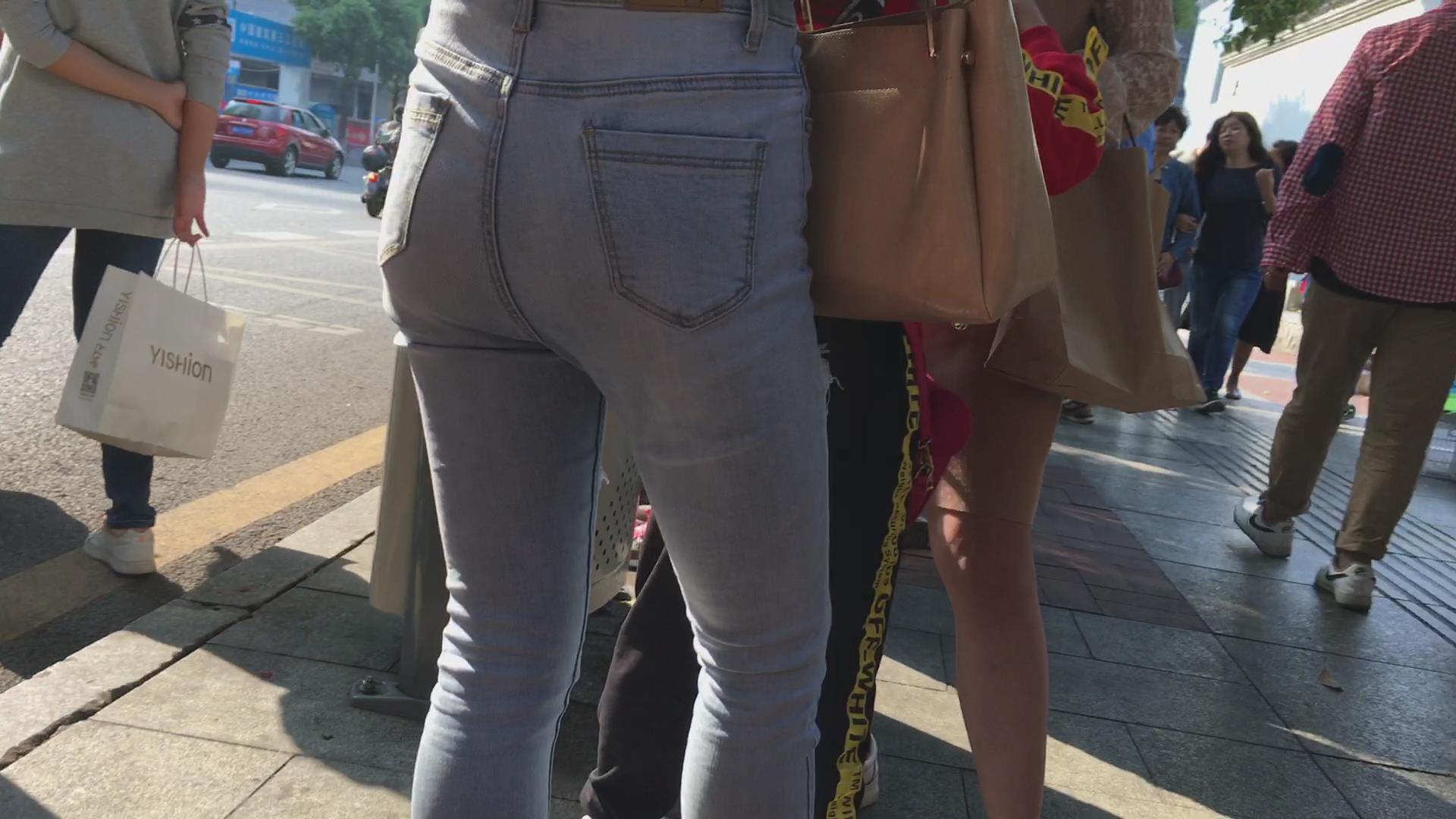 极品白T恤蓝色牛仔裤翘臀街拍美女 编号5330