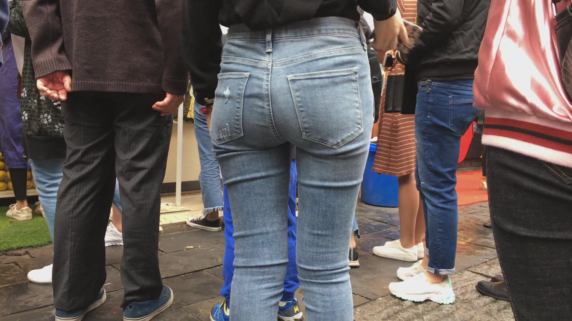 黑色衬衫街拍圆臀紧身牛仔裤美女 编号5331