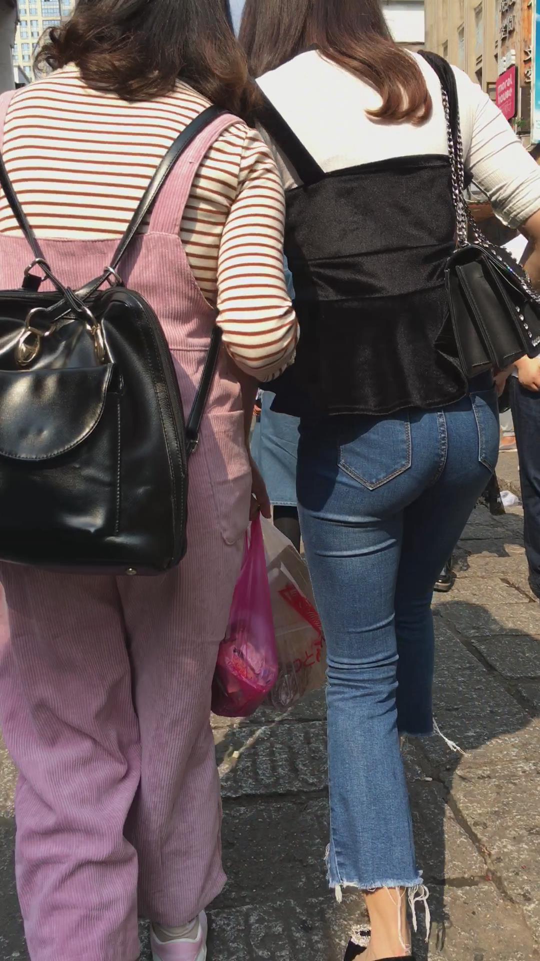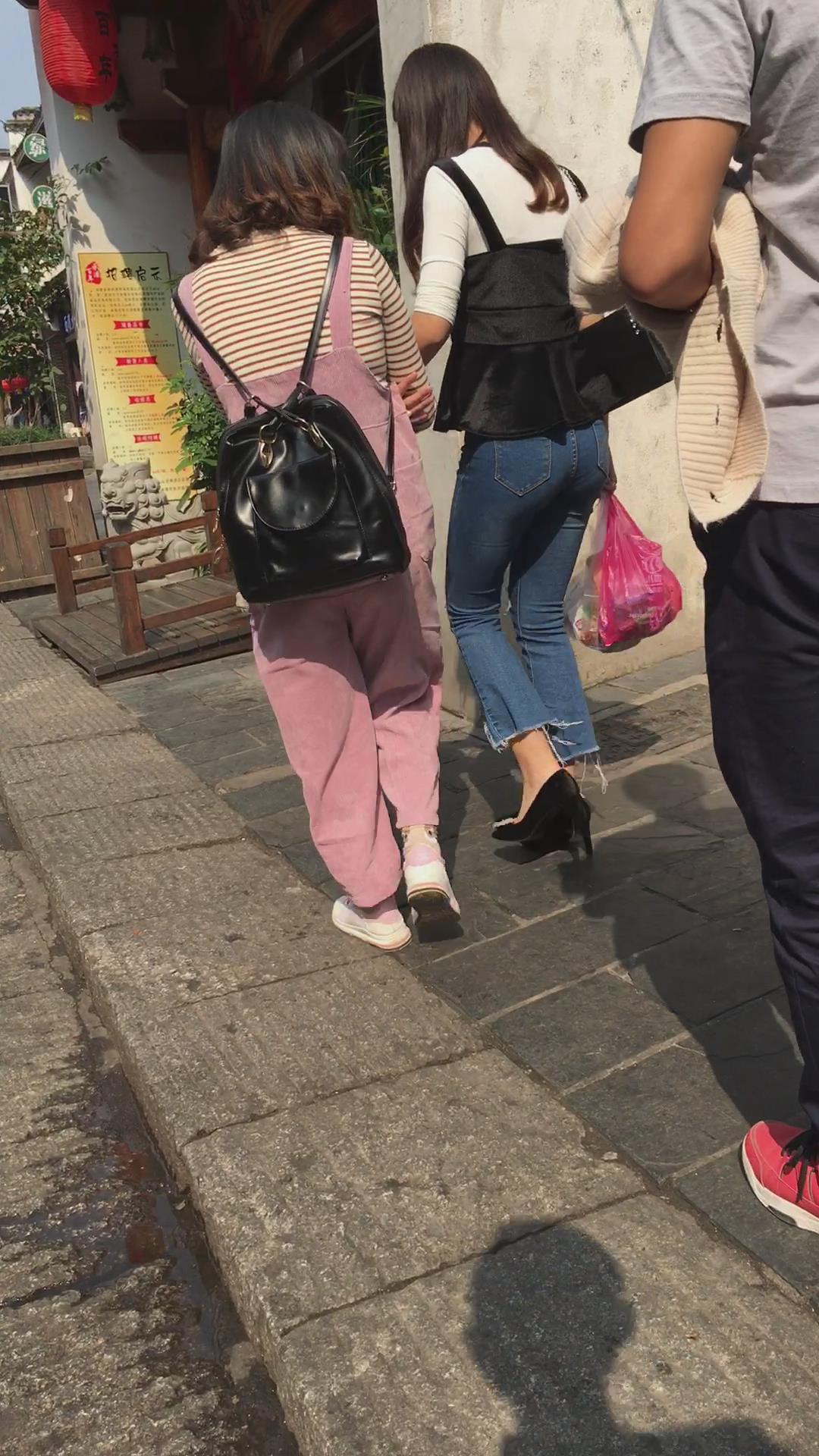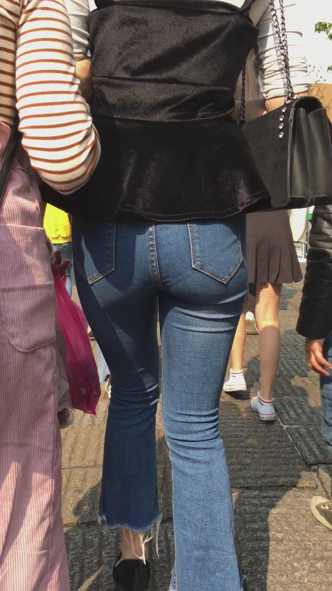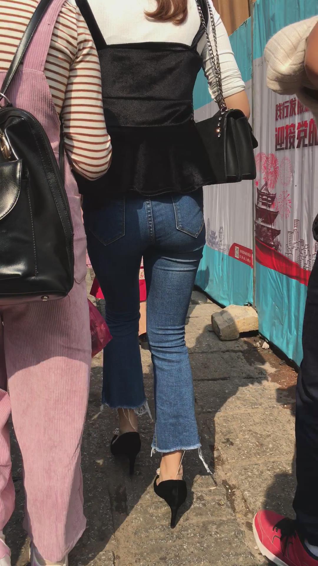 超紧身蓝色牛仔裤高跟鞋街拍美女 编号5332
