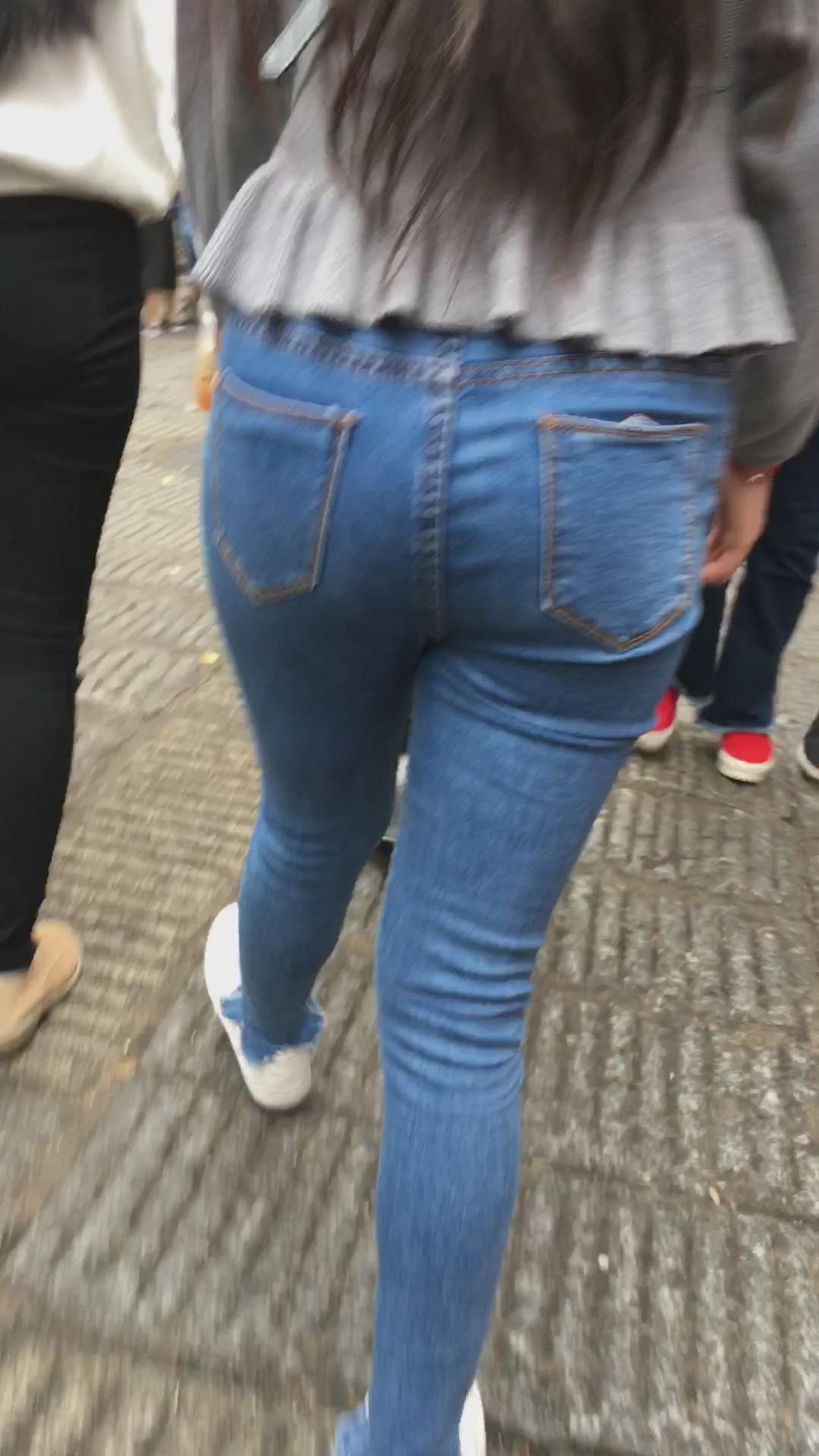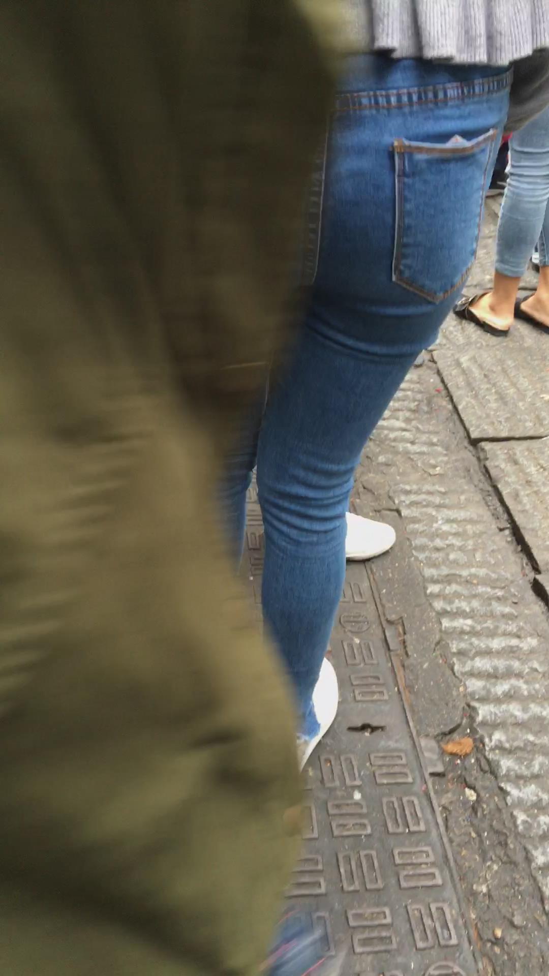 街拍圆臀紧身蓝色牛仔裤学生妹 编号5333