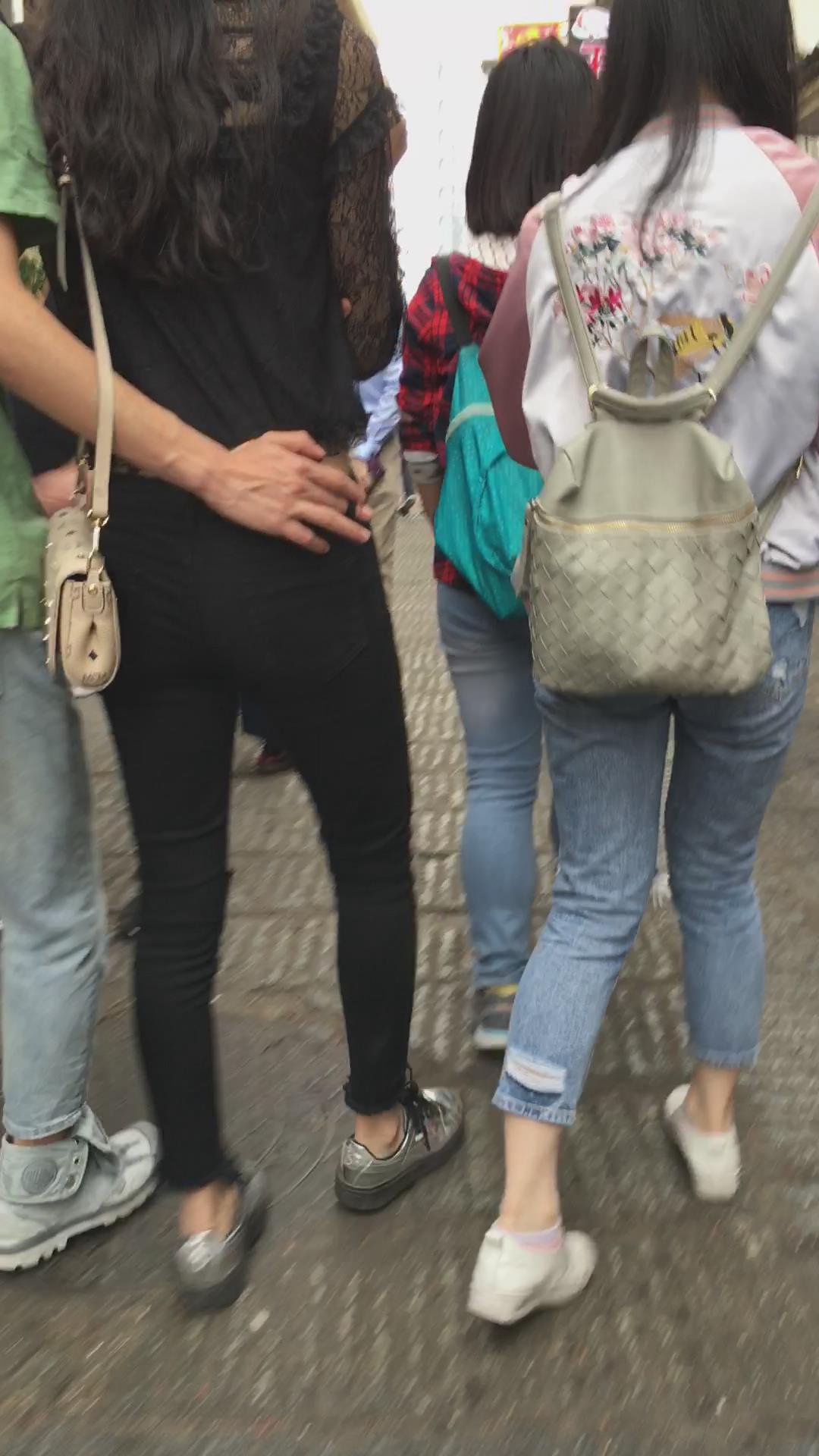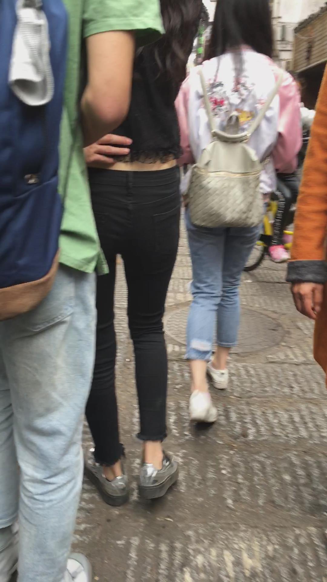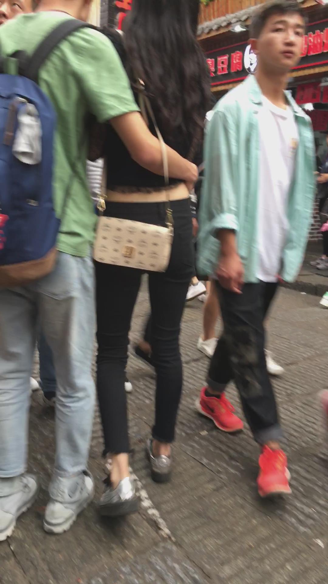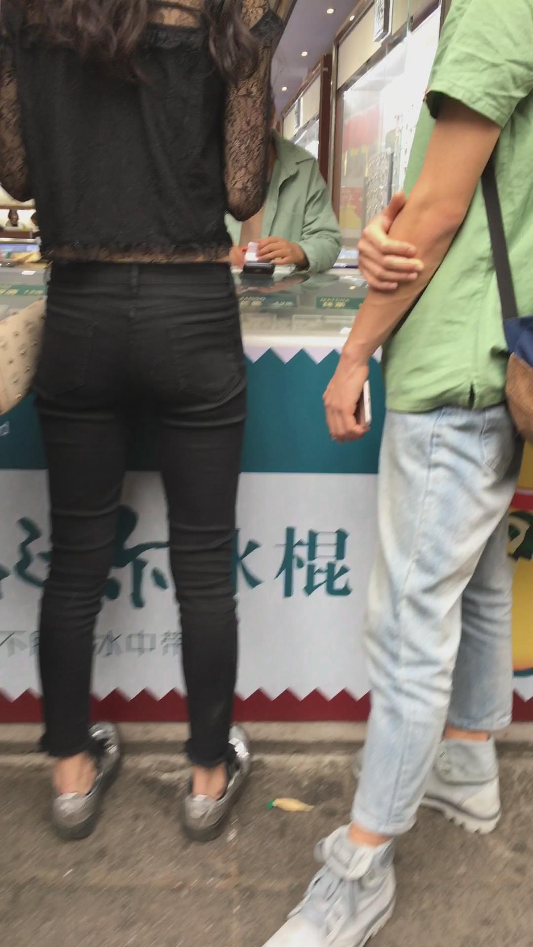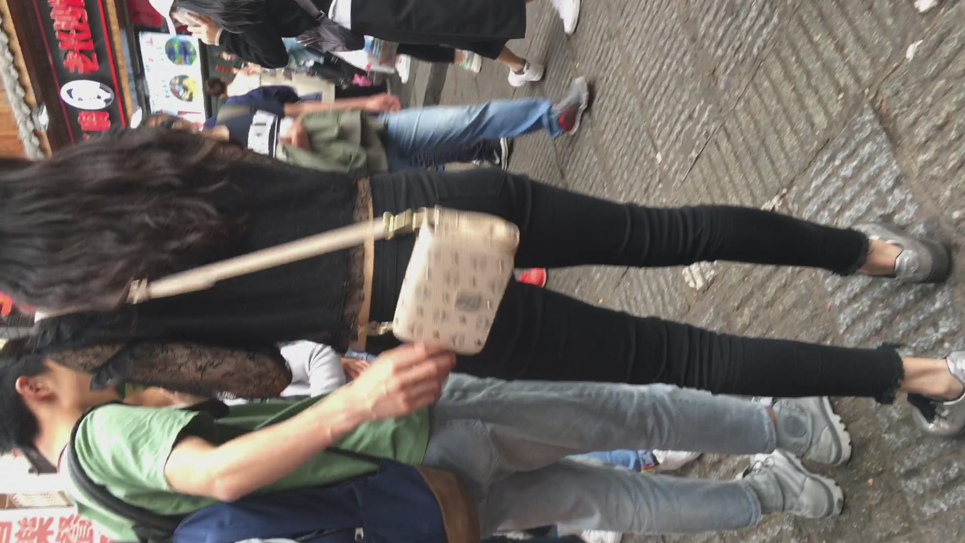 街拍黑色紧身裤美女 编号5348