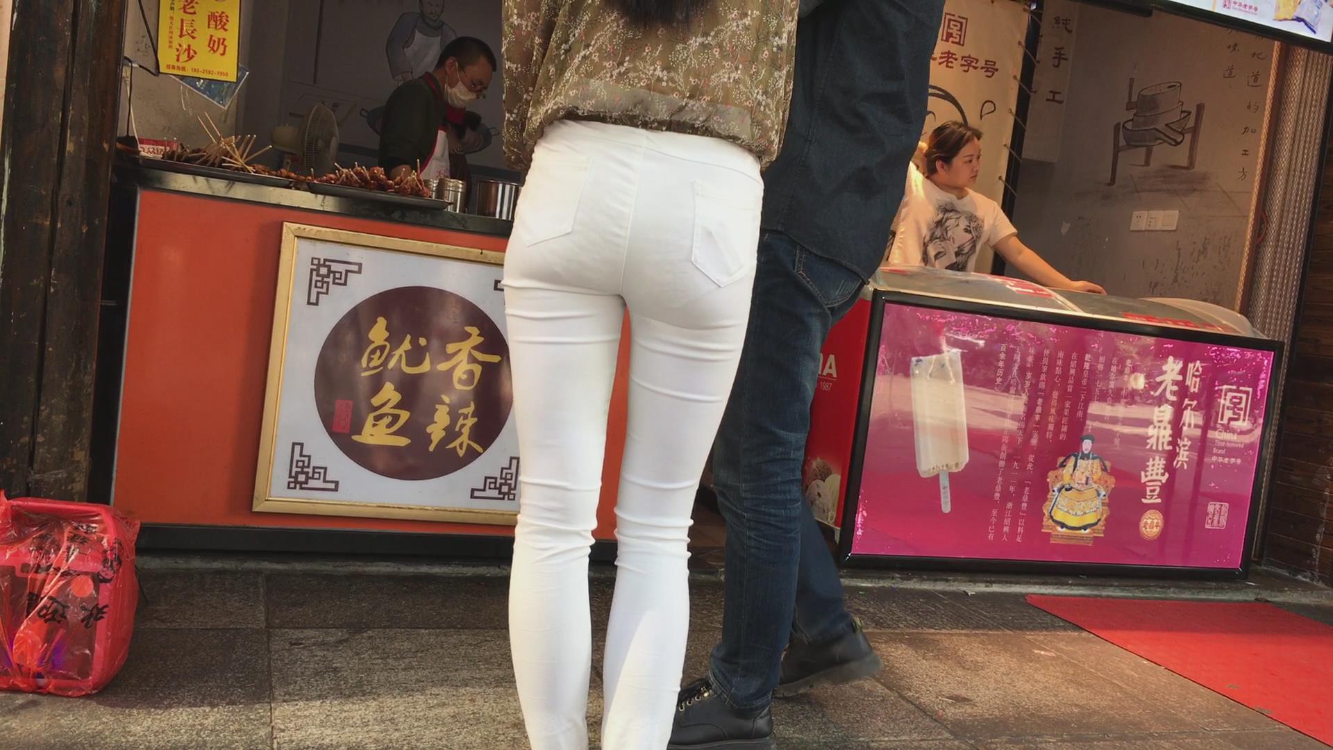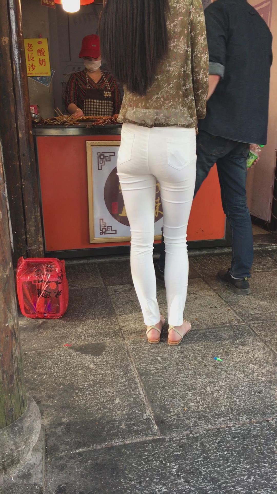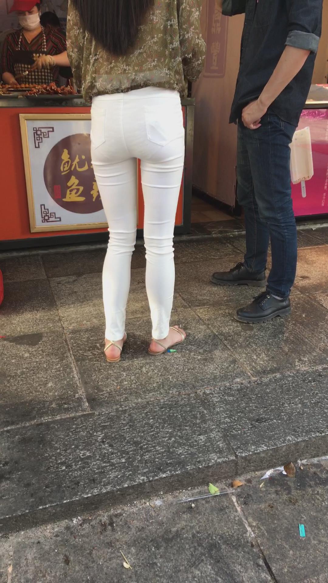 街拍极品超薄紧身白裤美女,似乎内内都印出来了 编号5361