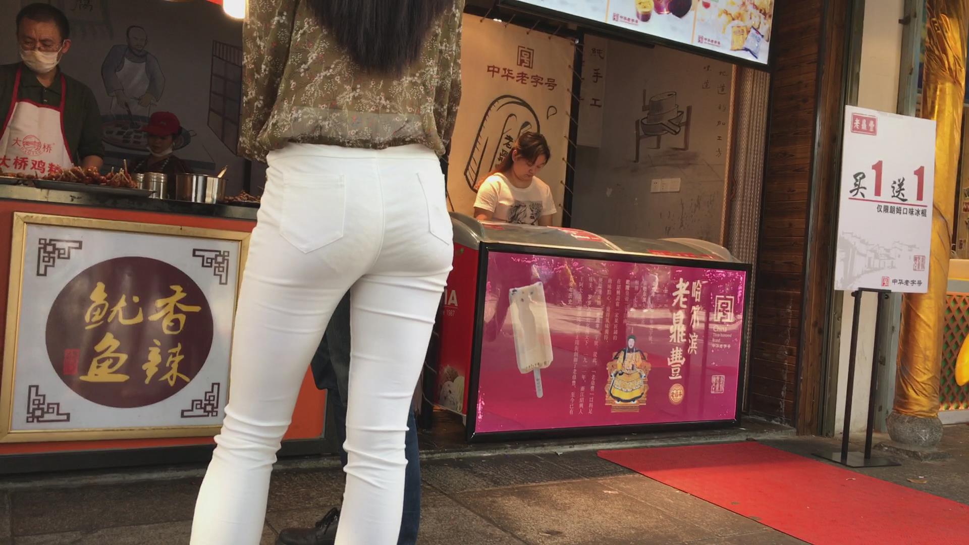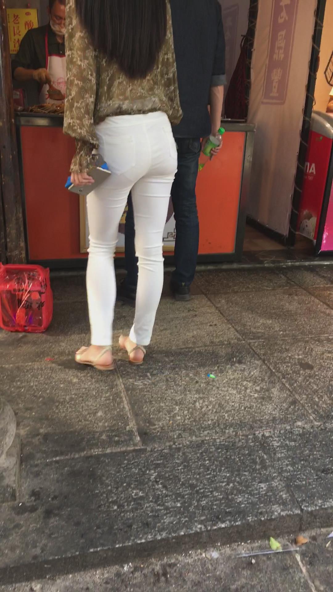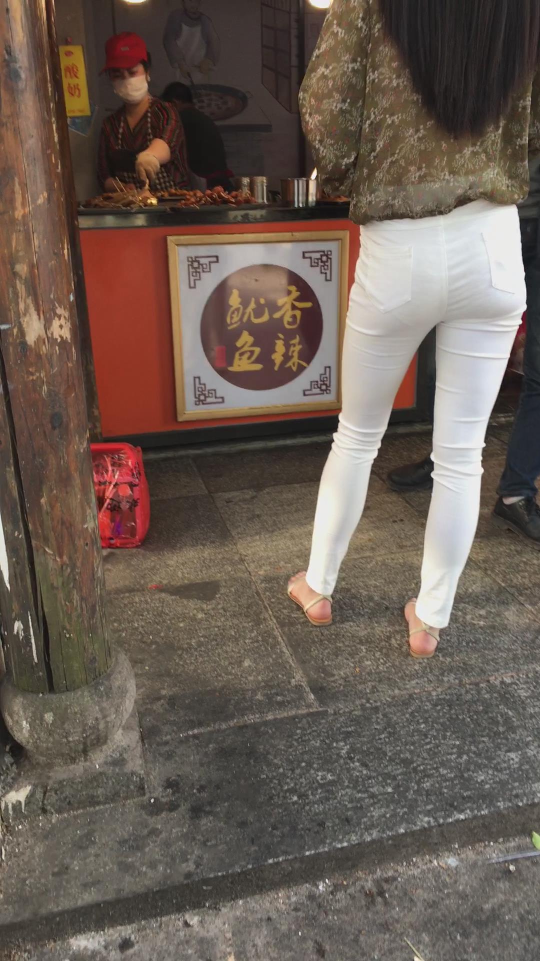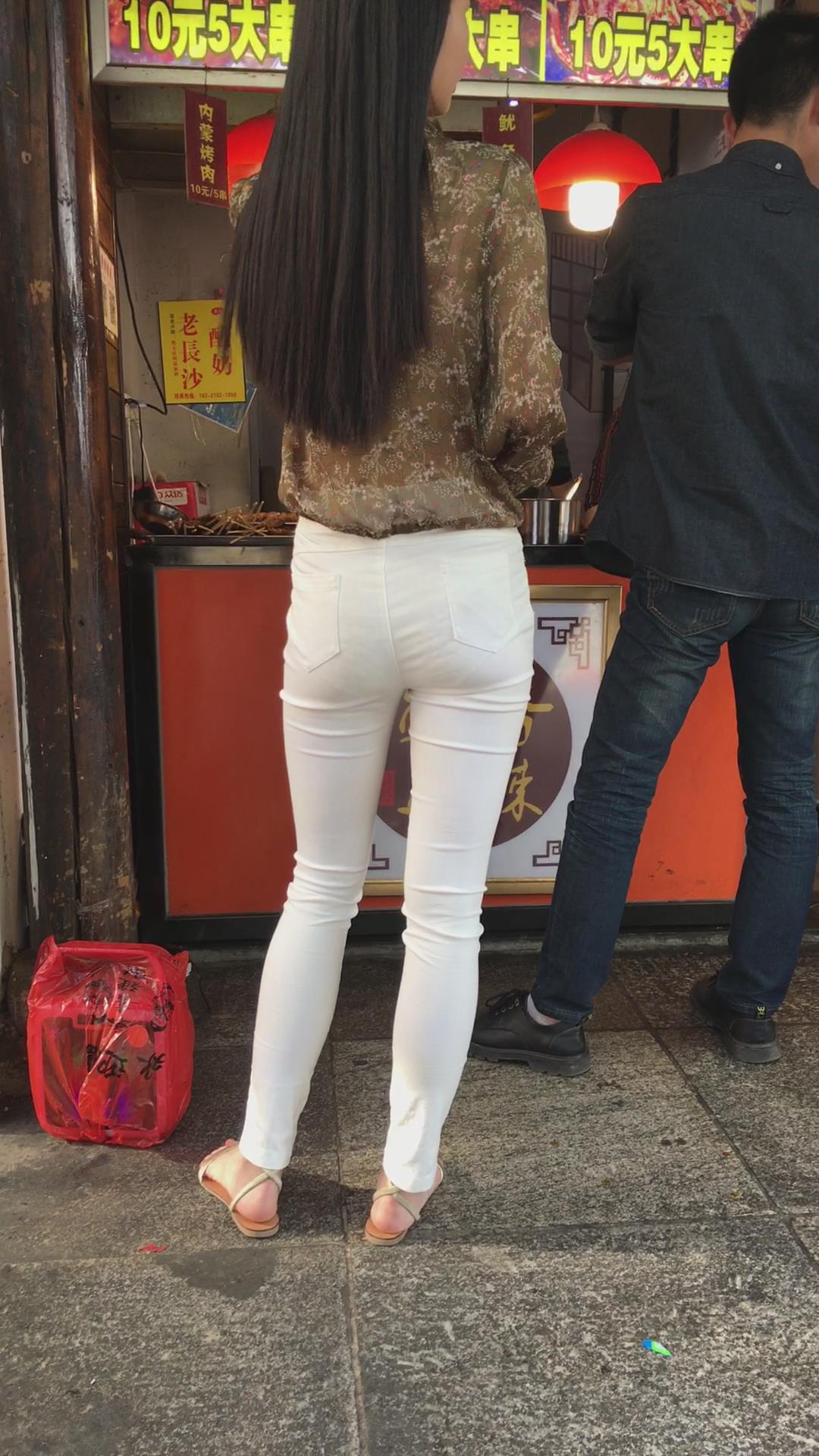 街拍极品超薄紧身白裤美女,似乎内内都印出来了 编号5361
