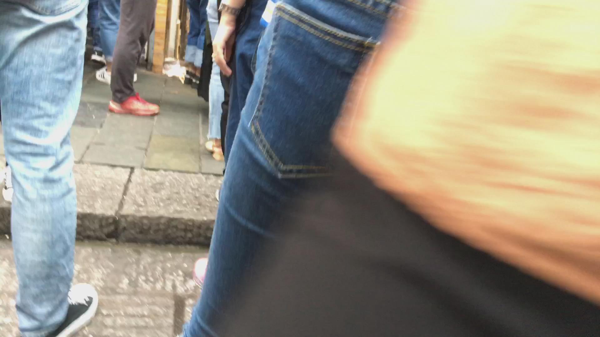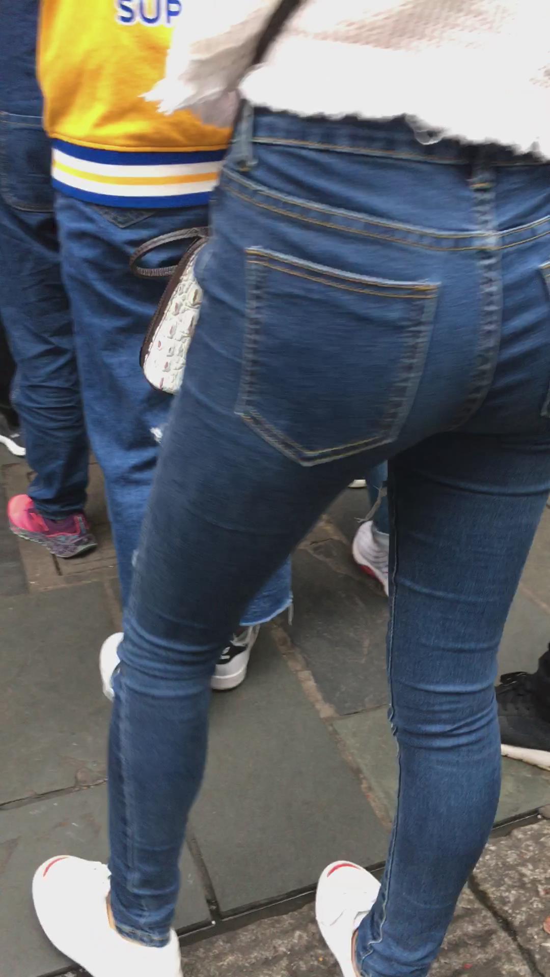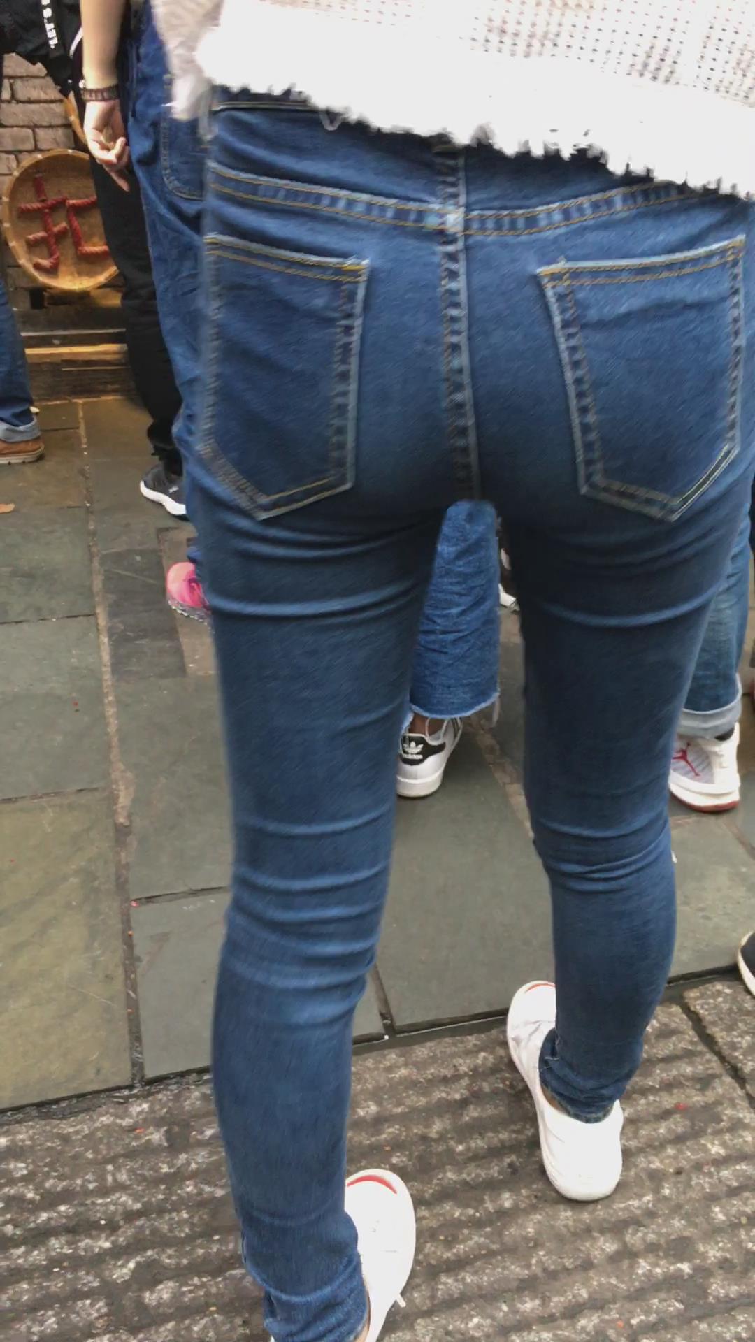 街拍超紧蓝色牛仔裤学生妹 编号5364