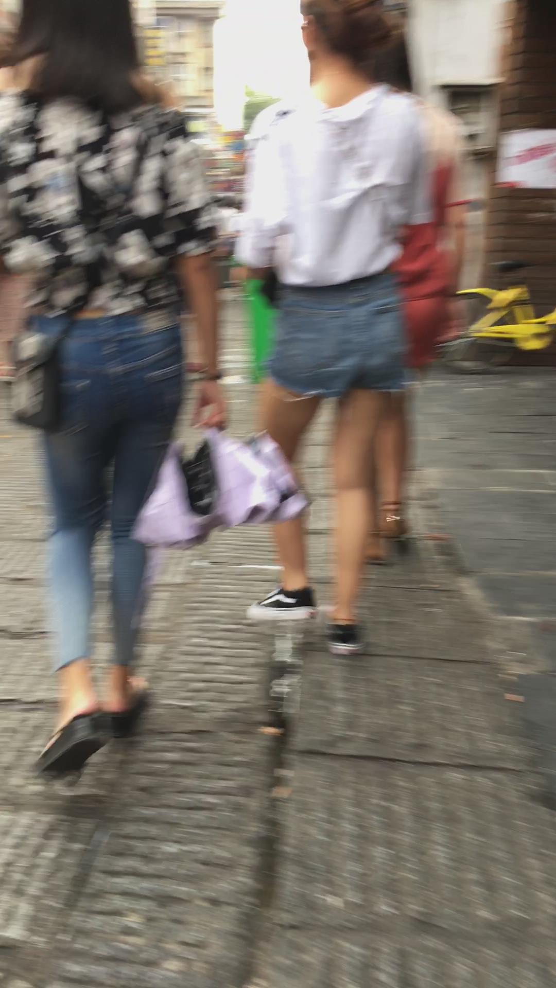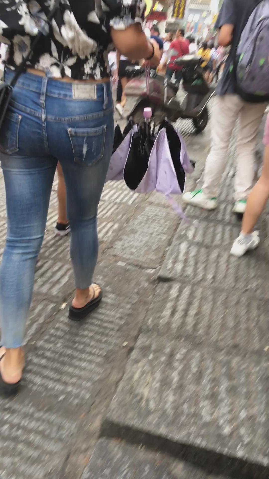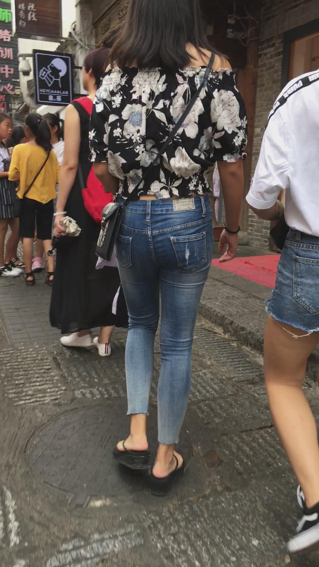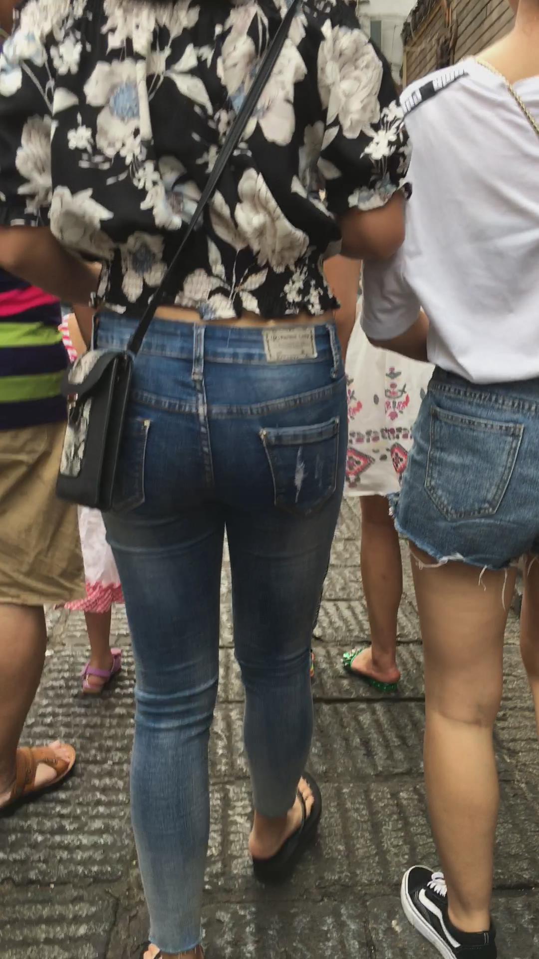 街拍超级紧致的蓝色牛仔裤美臀美女 编号5373