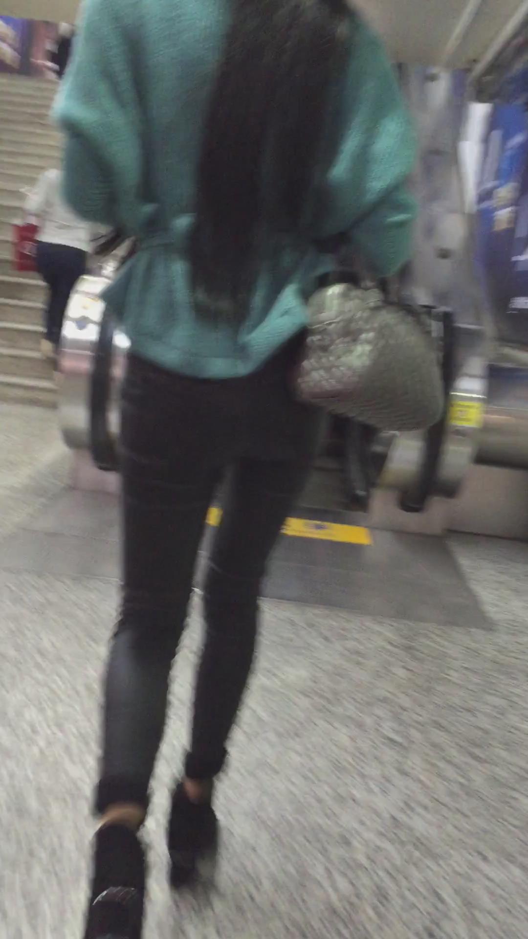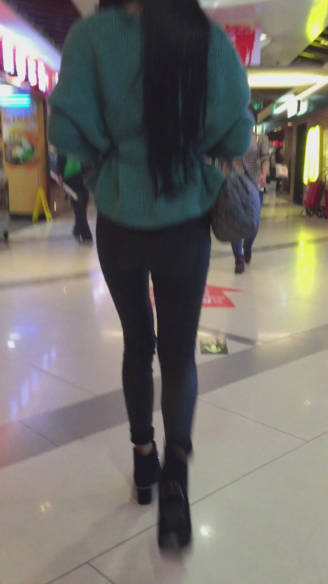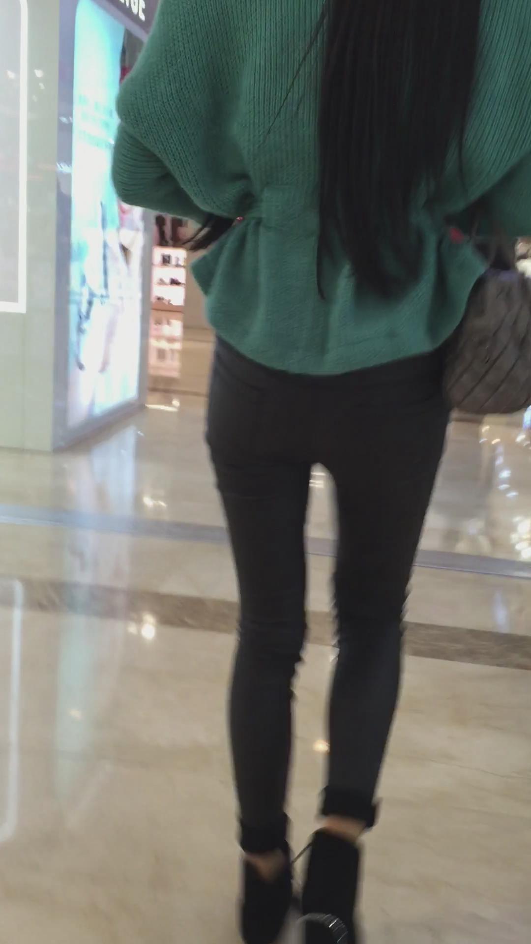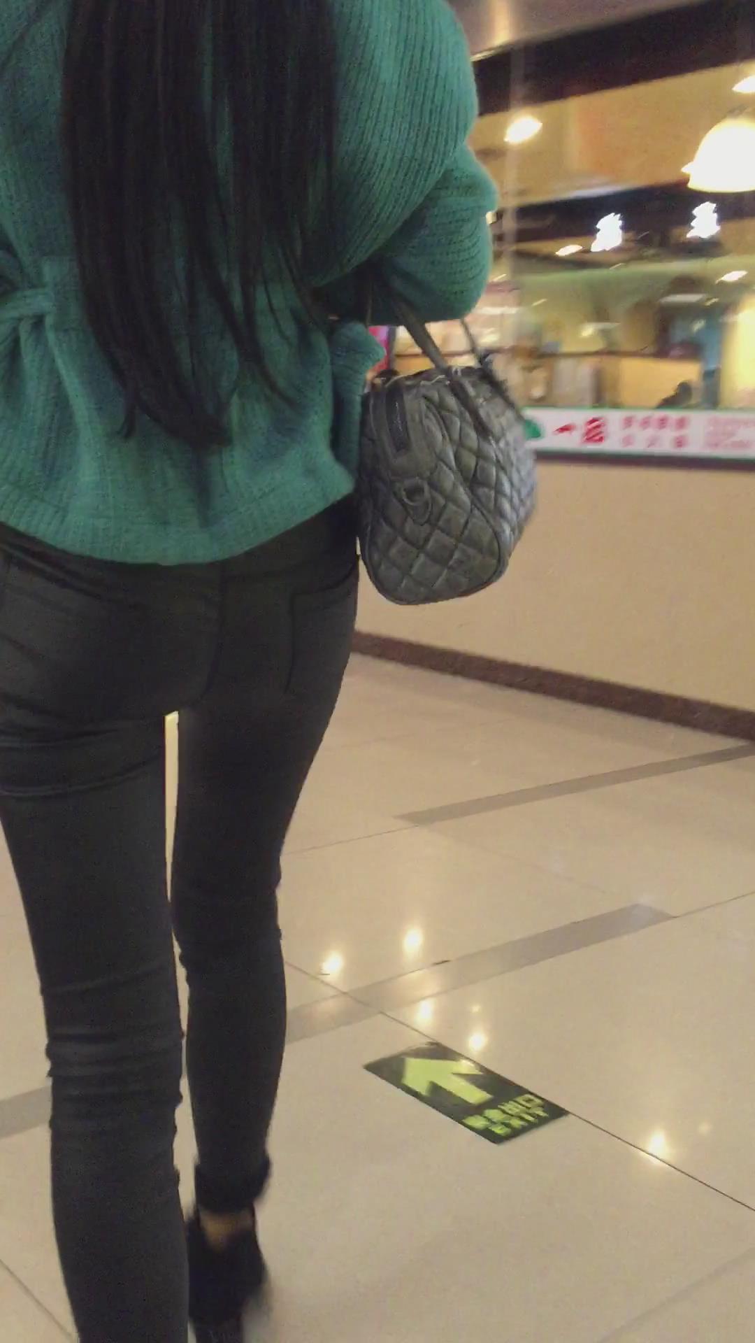 黑色紧身裤美臀少妇逛商场 编号5387