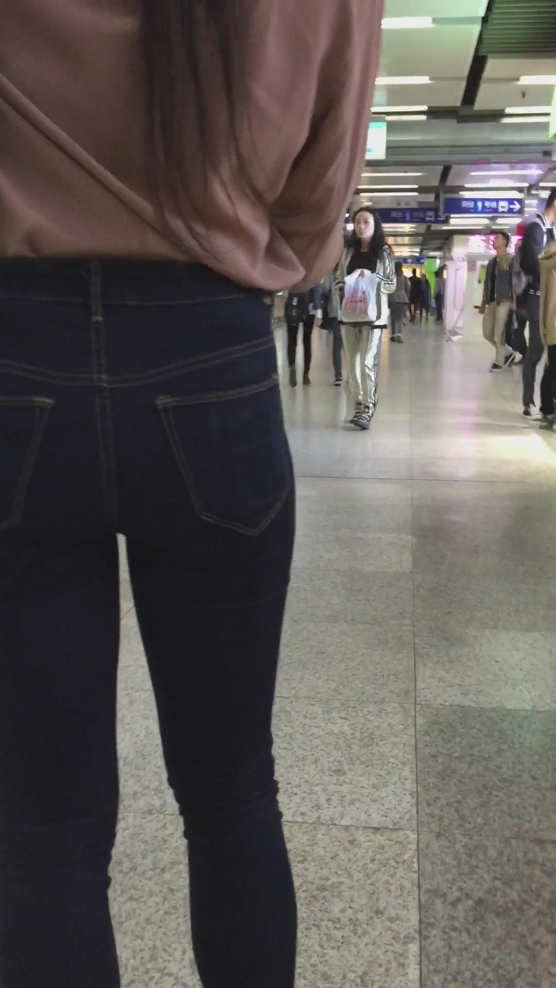 跟拍刚下地铁的紧身牛仔裤美女 编号5388