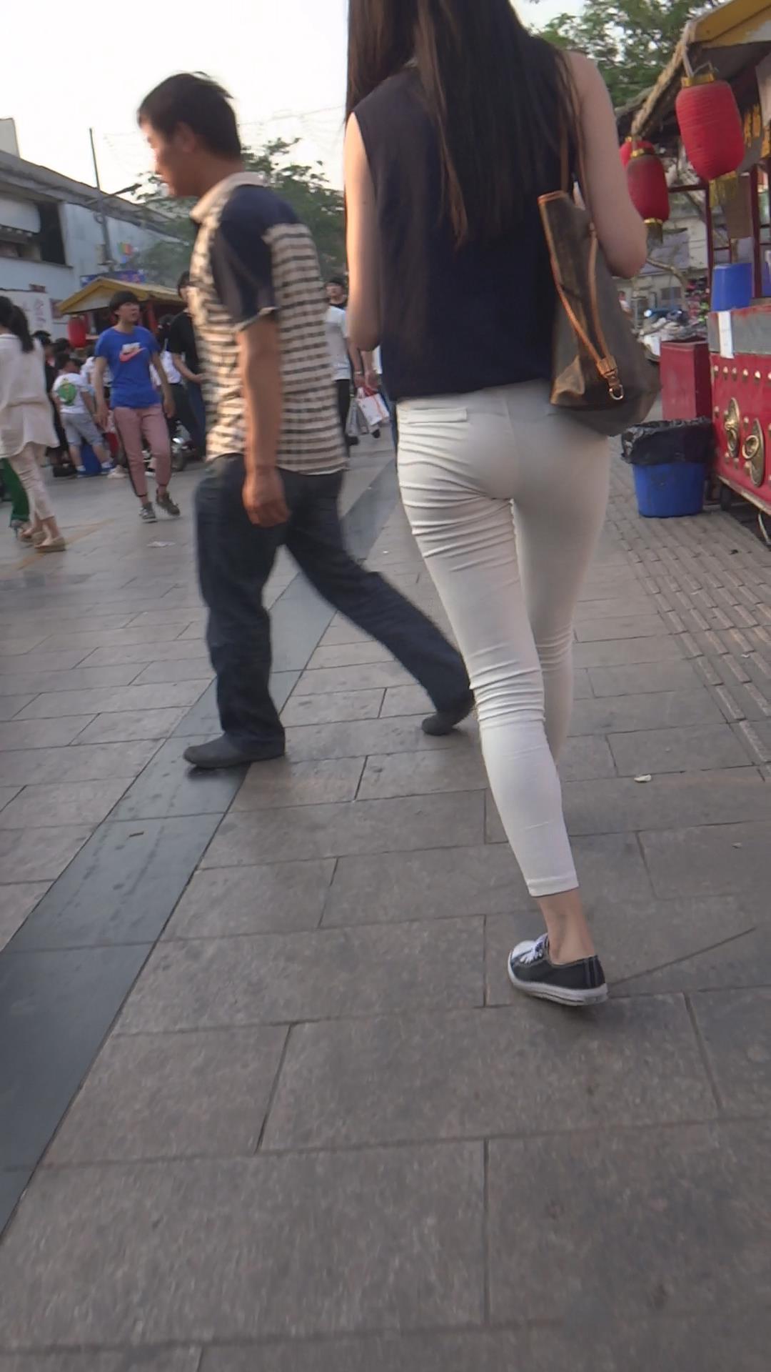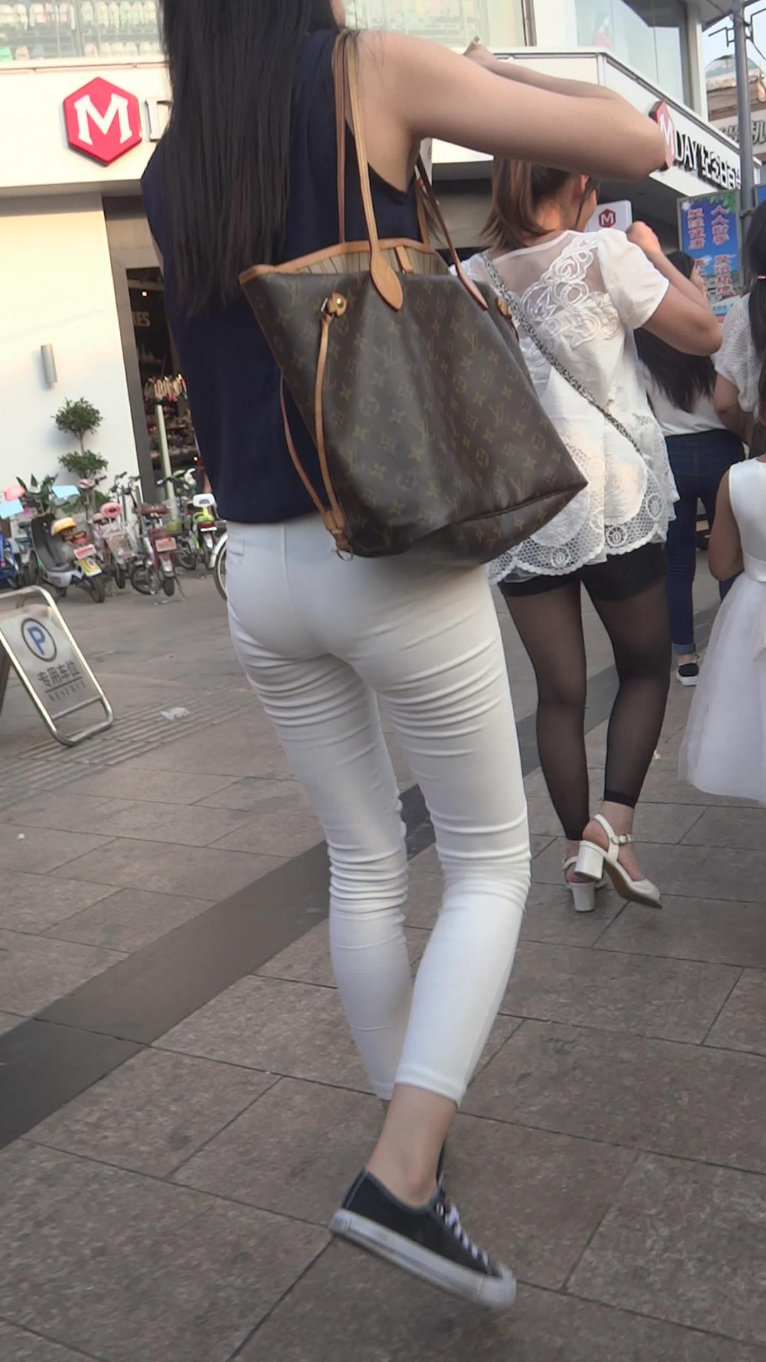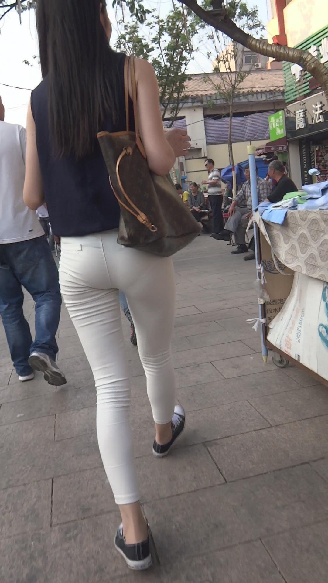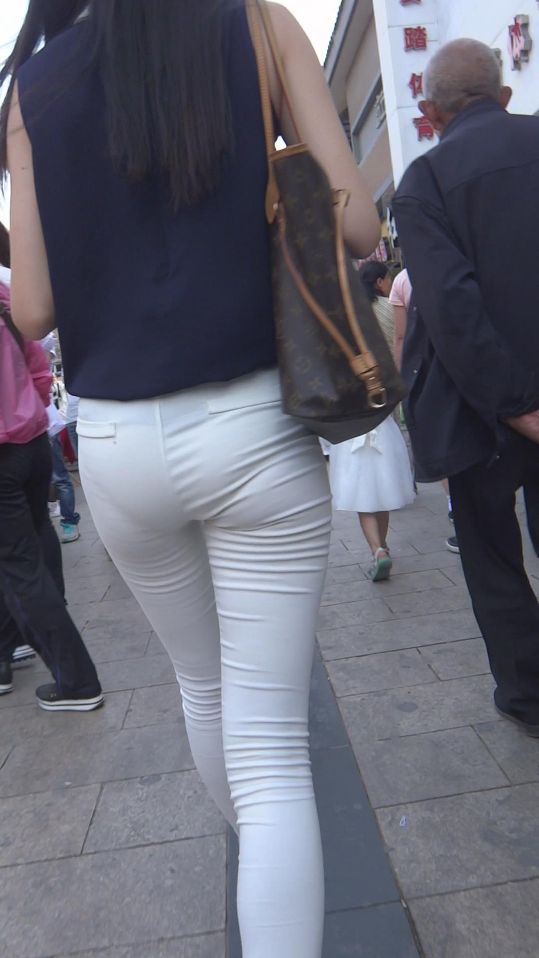 超薄紧身白裤丝滑美臀美女 编号6122