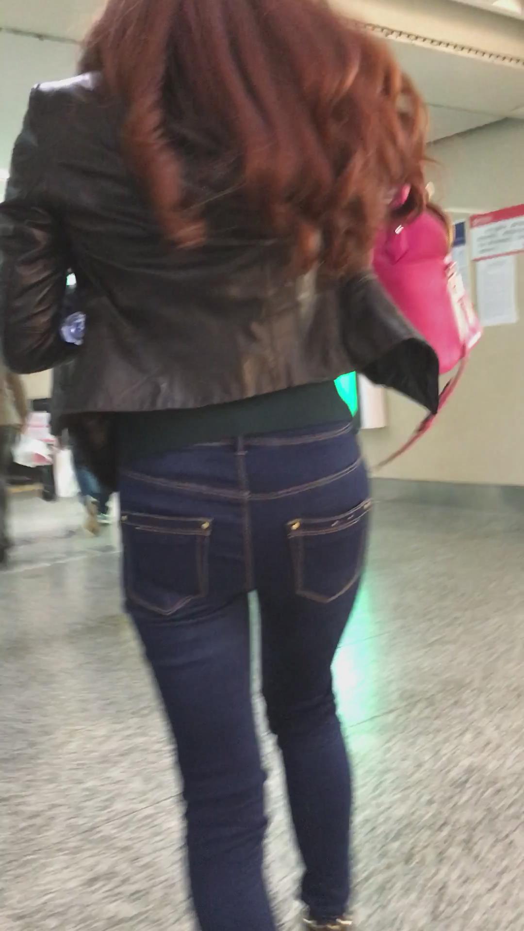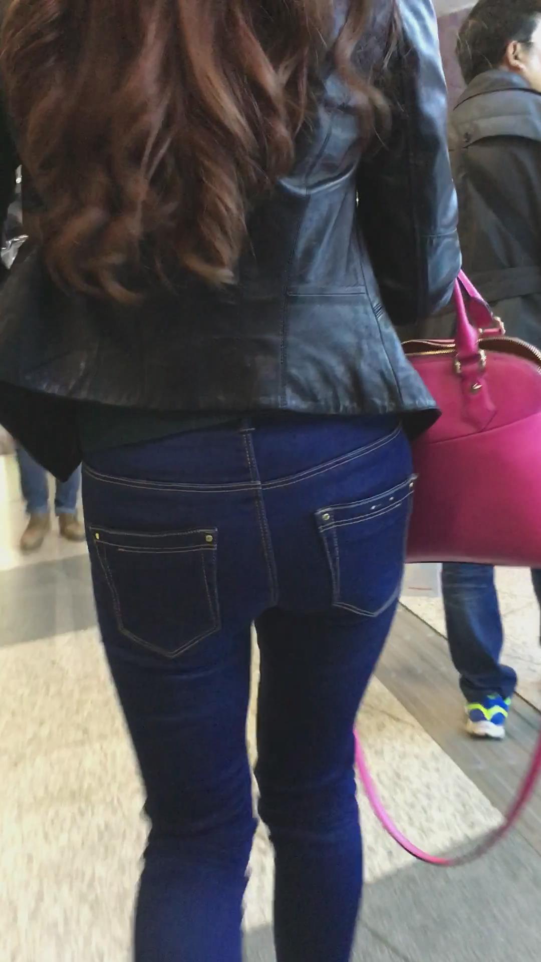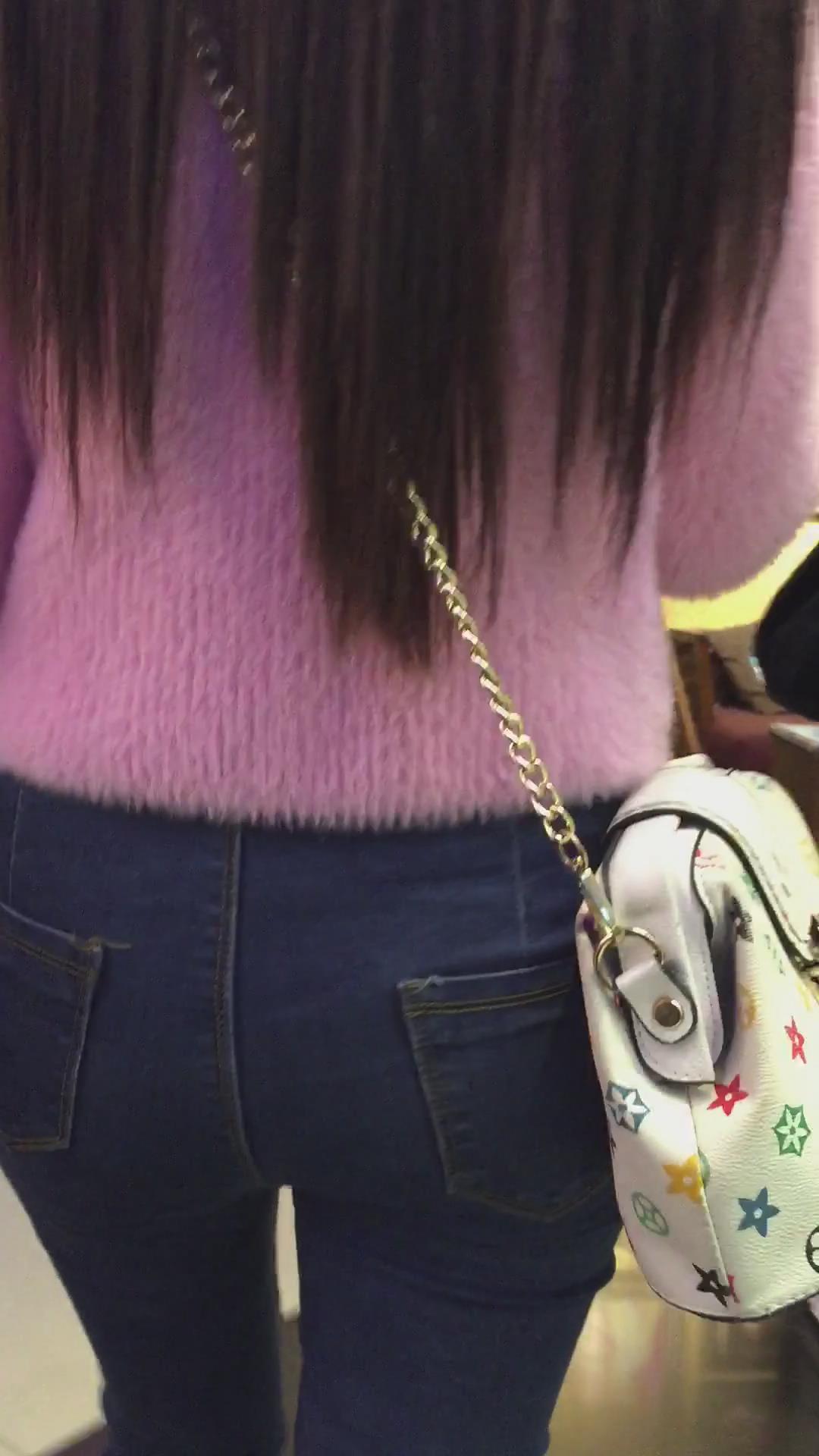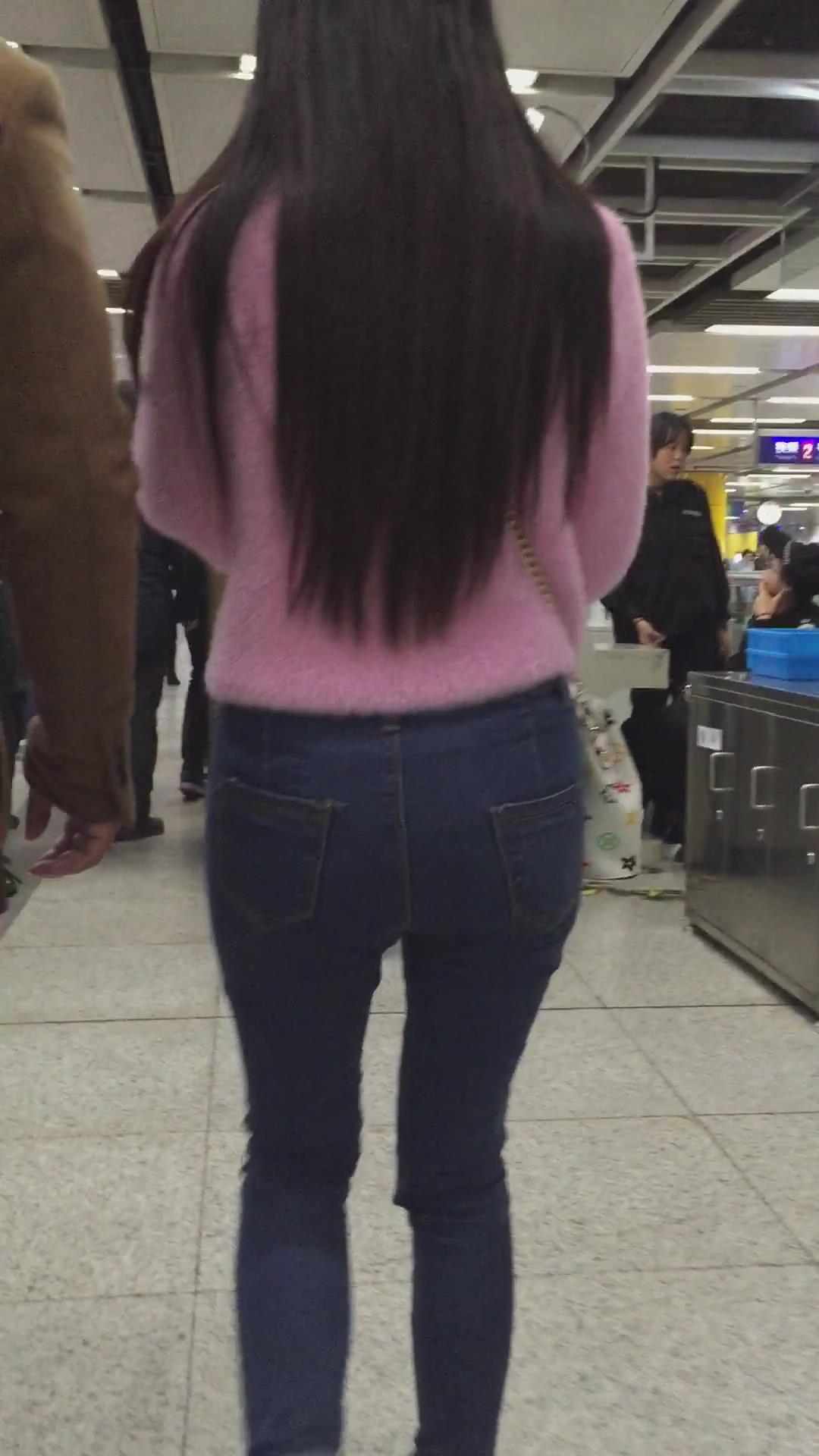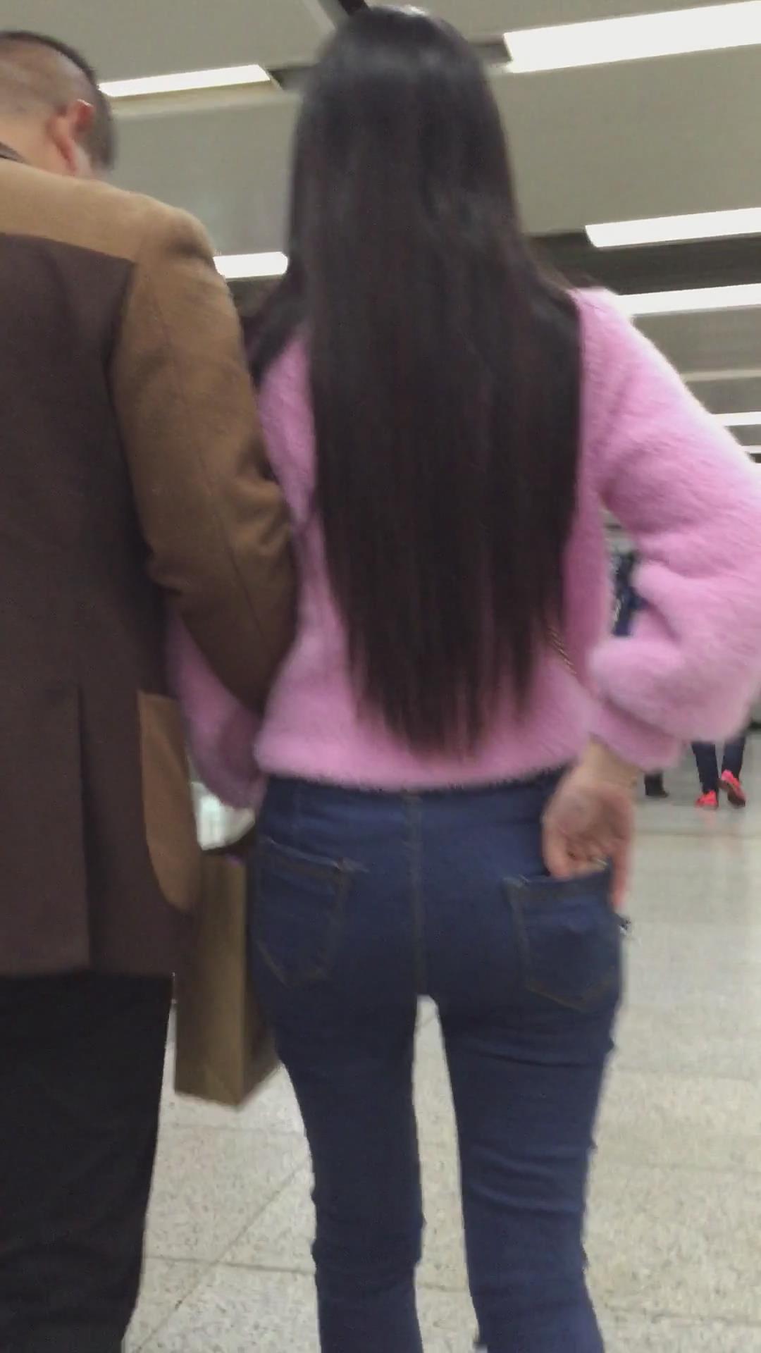 街拍紧身蓝色牛仔裤美眉们 编号5404