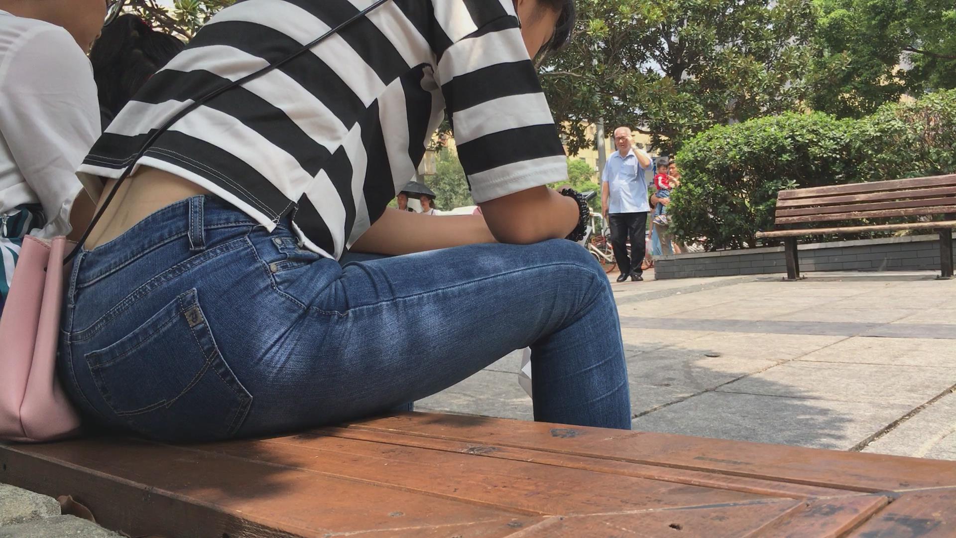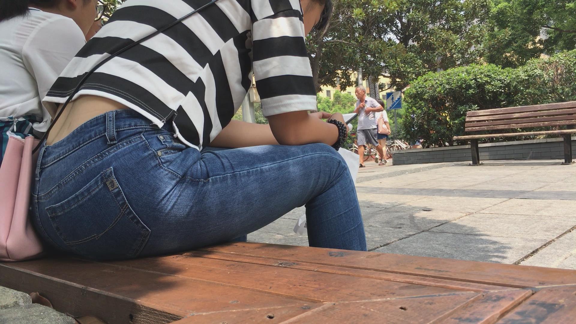 街拍紧身蓝色牛仔裤妹纸 编号5412