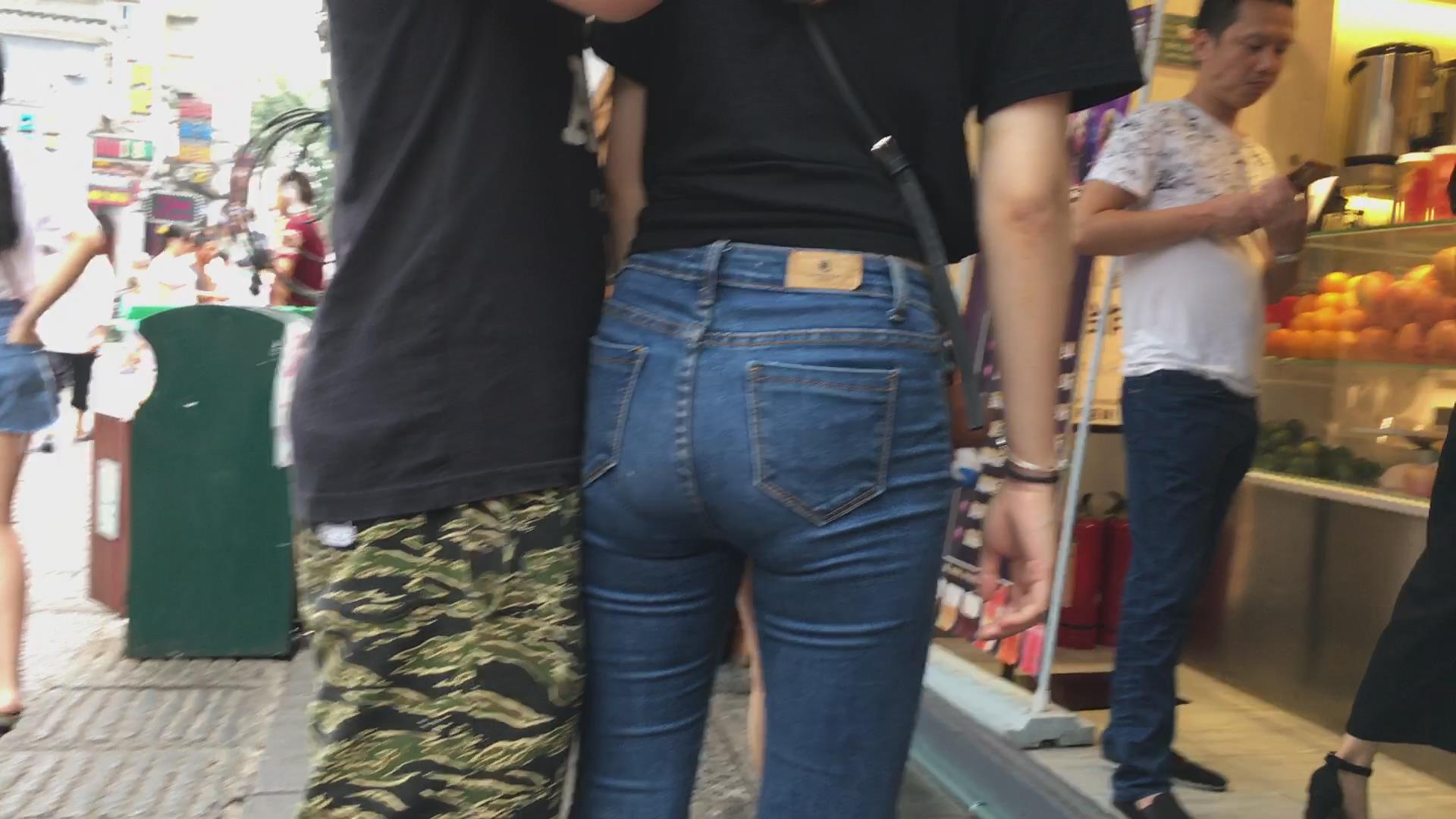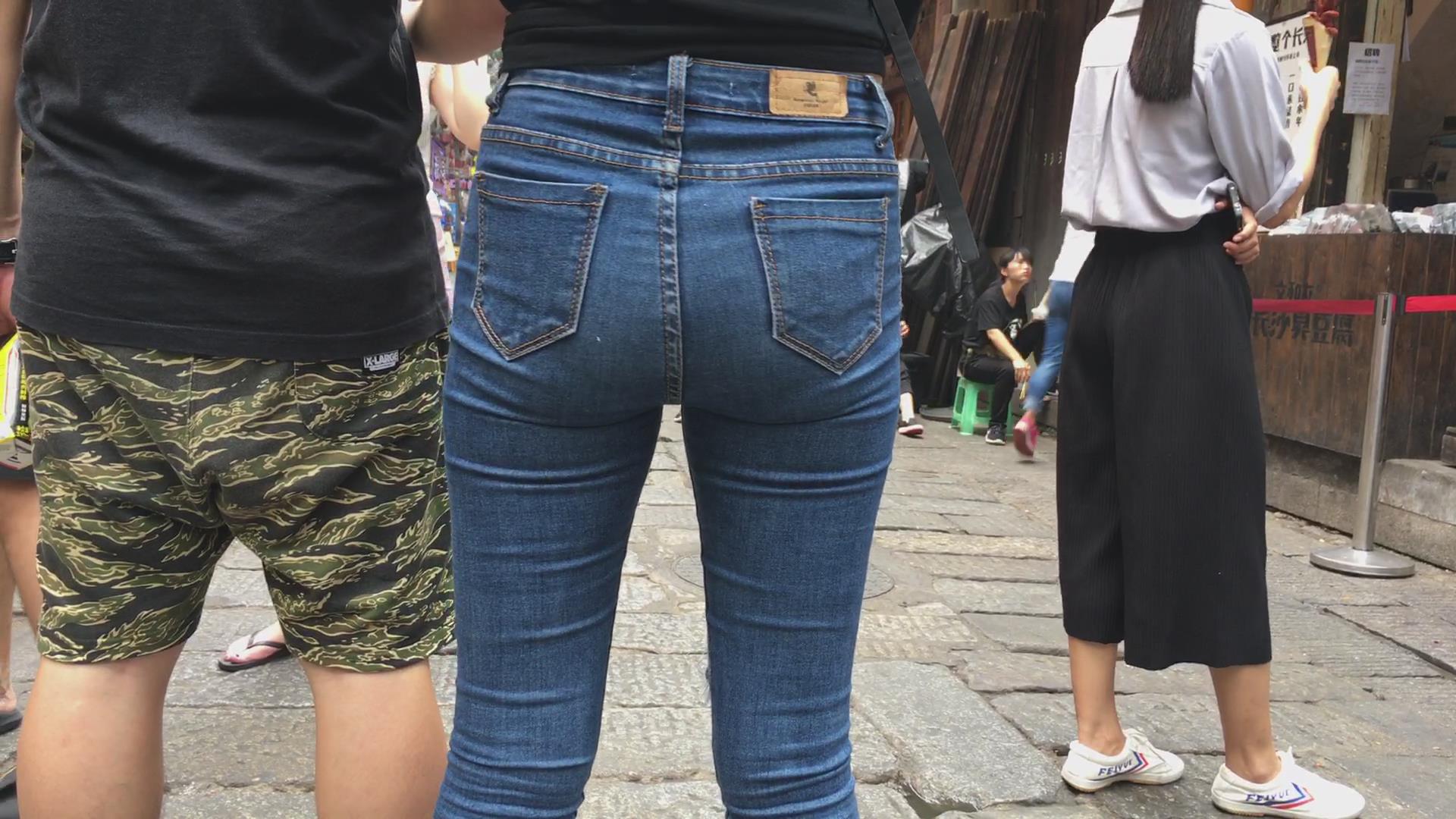 街拍超紧身蓝色牛仔裤小姐姐,pp很给力 编号5415