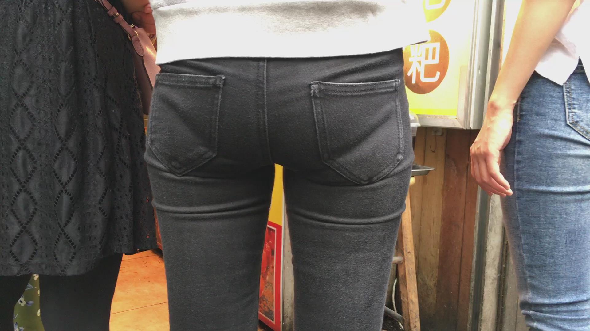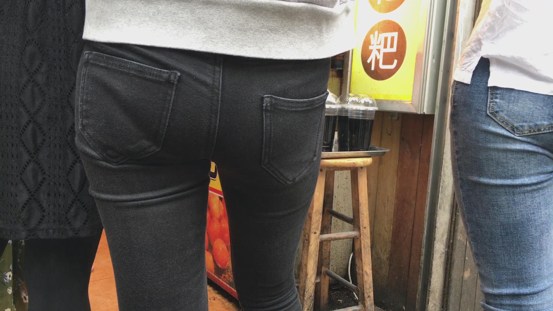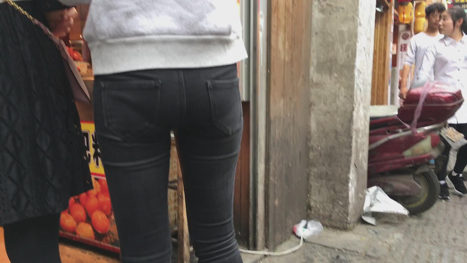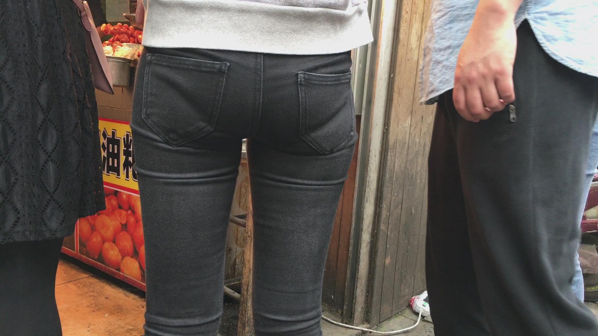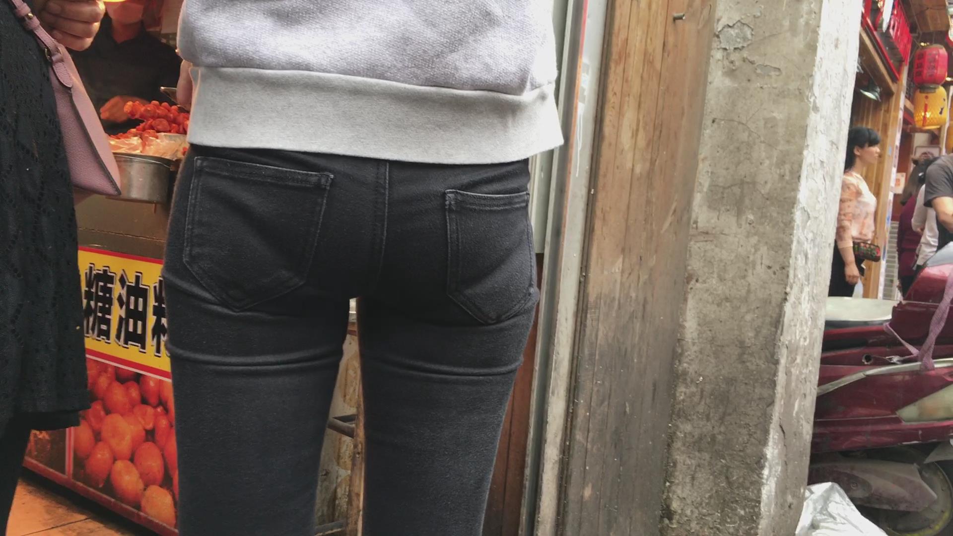 街拍紧身蜜桃臀美眉,内内印痕明显 编号5424