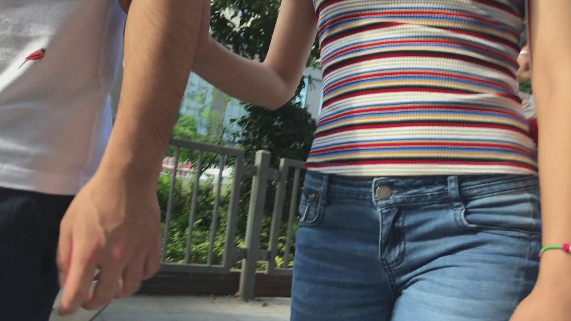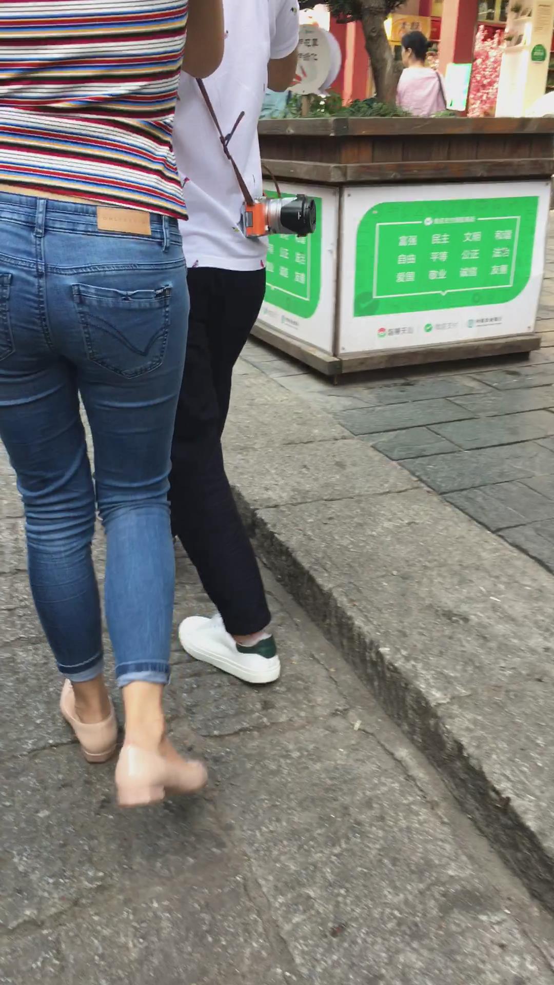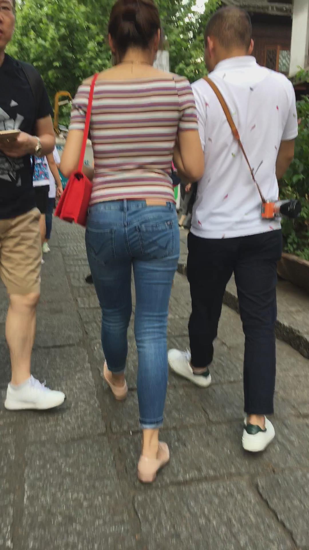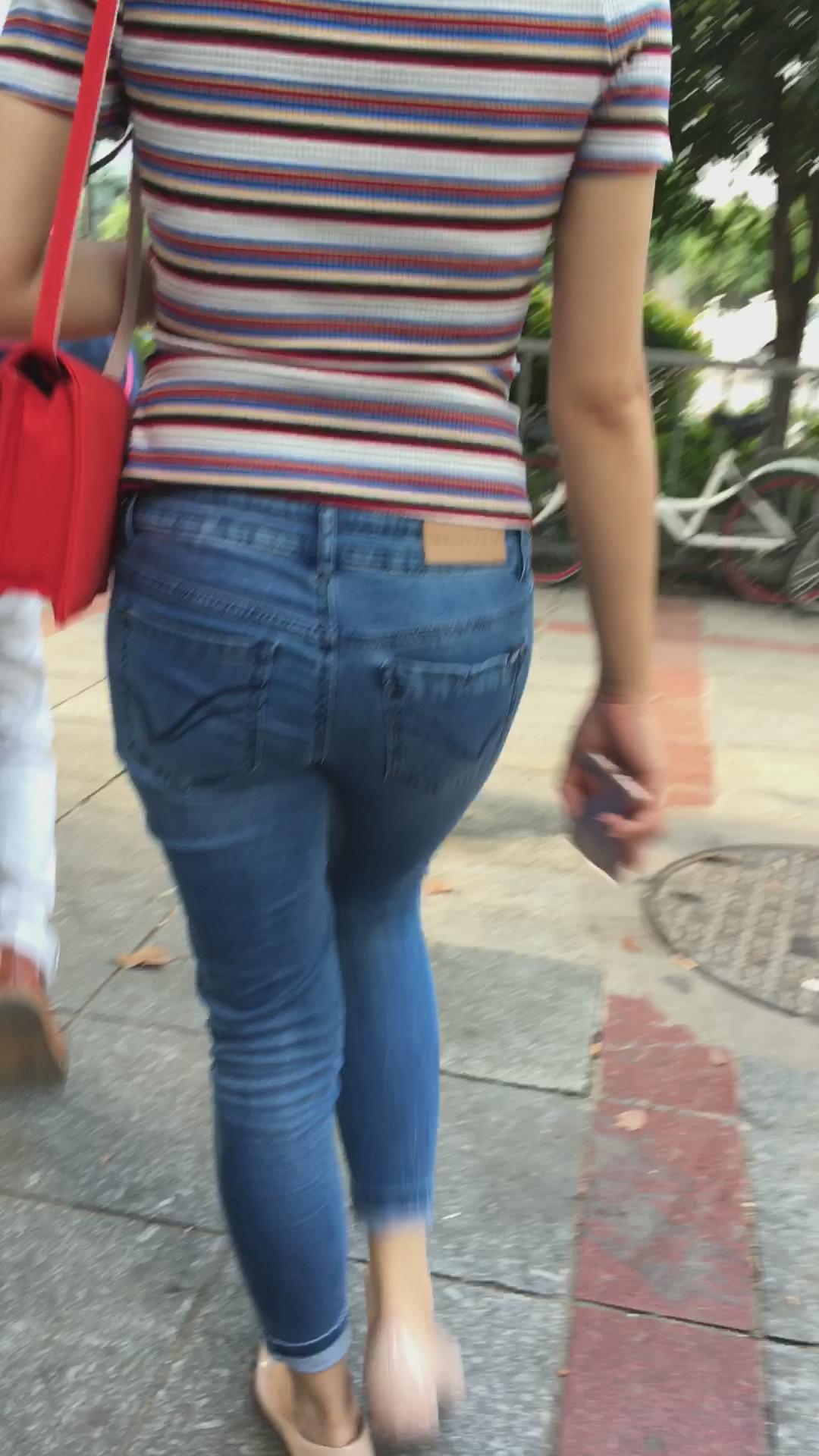 街拍紧身牛仔裤翘臀美眉 编号5435