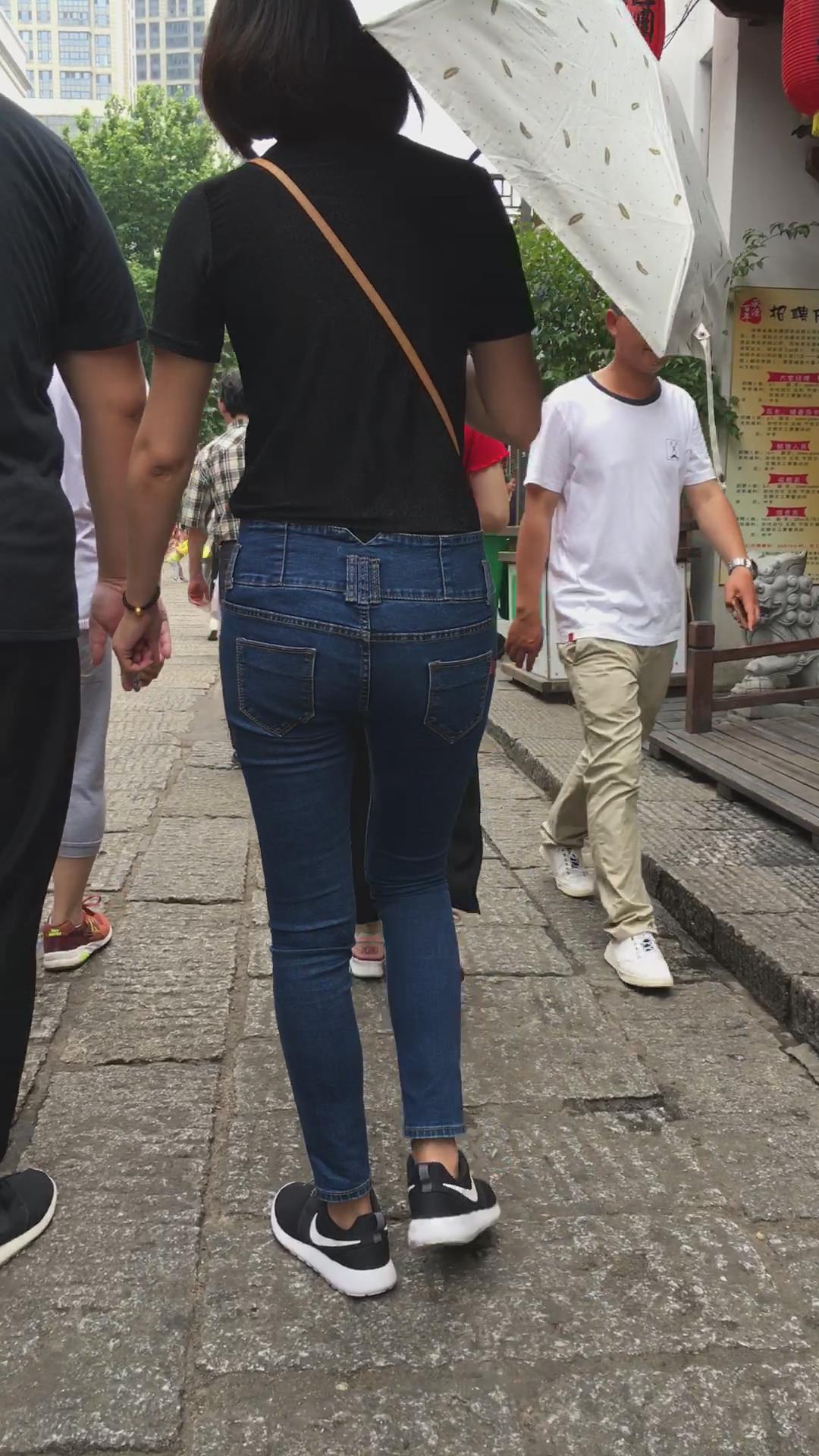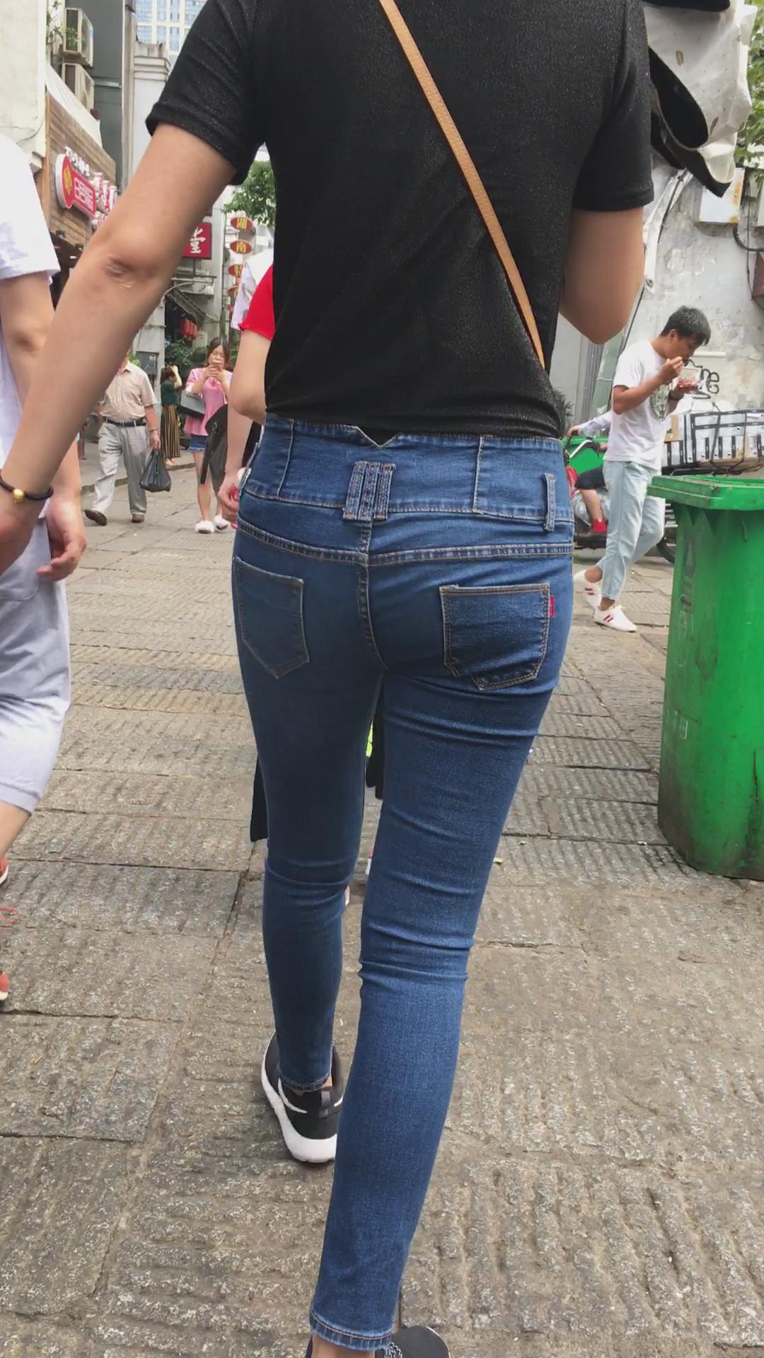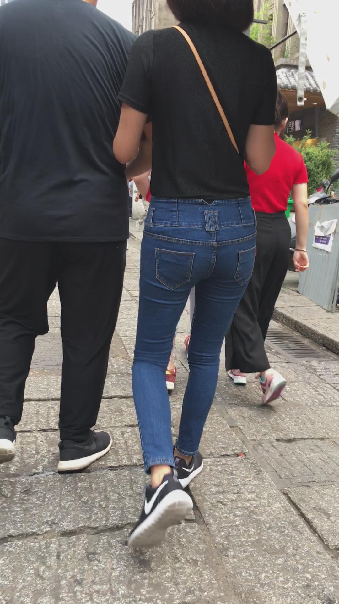 跟拍紧身蓝牛短发运动鞋美眉 编号5441