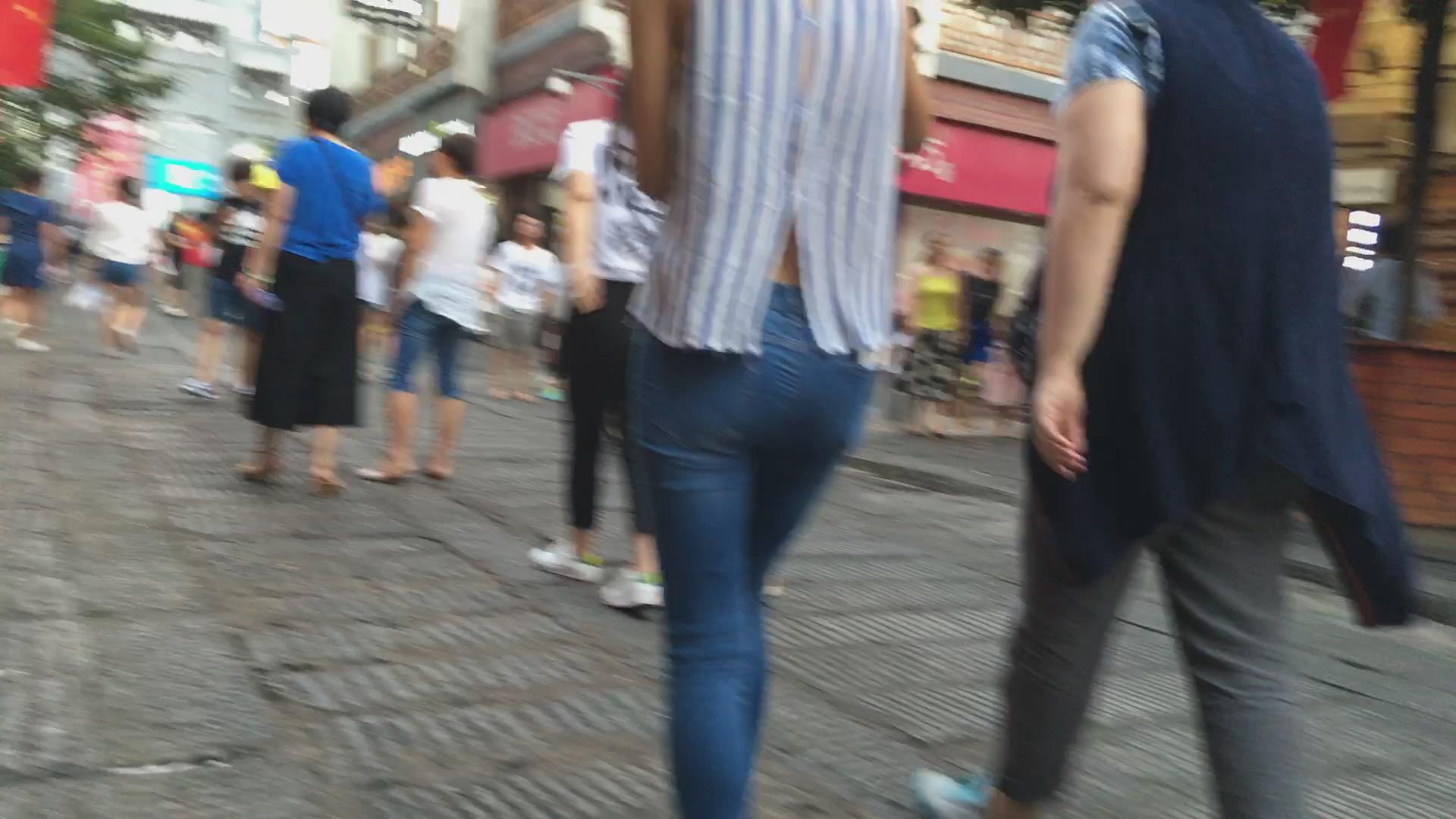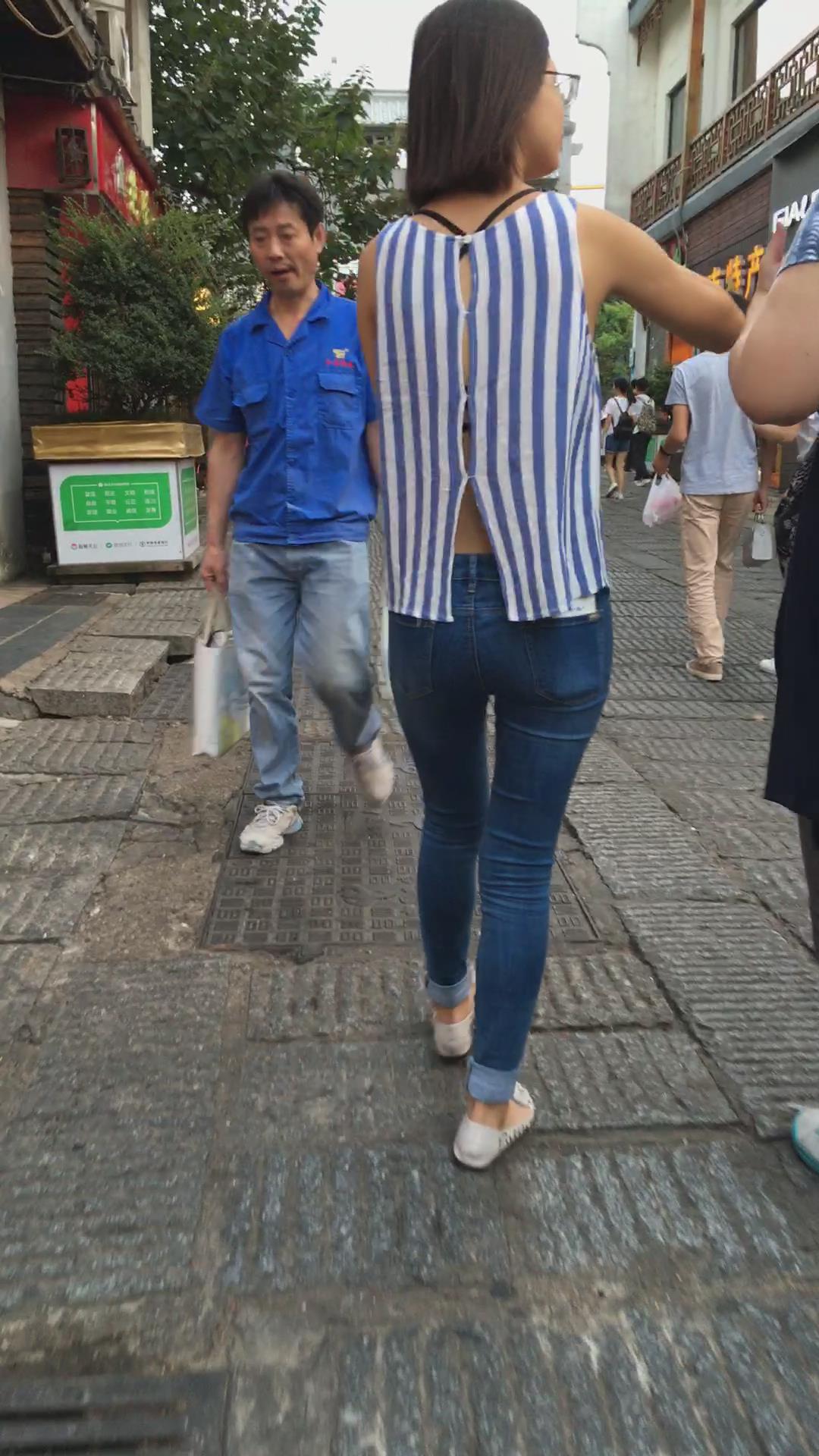 逛街偶遇紧身蓝牛眼镜妹子 编号5458