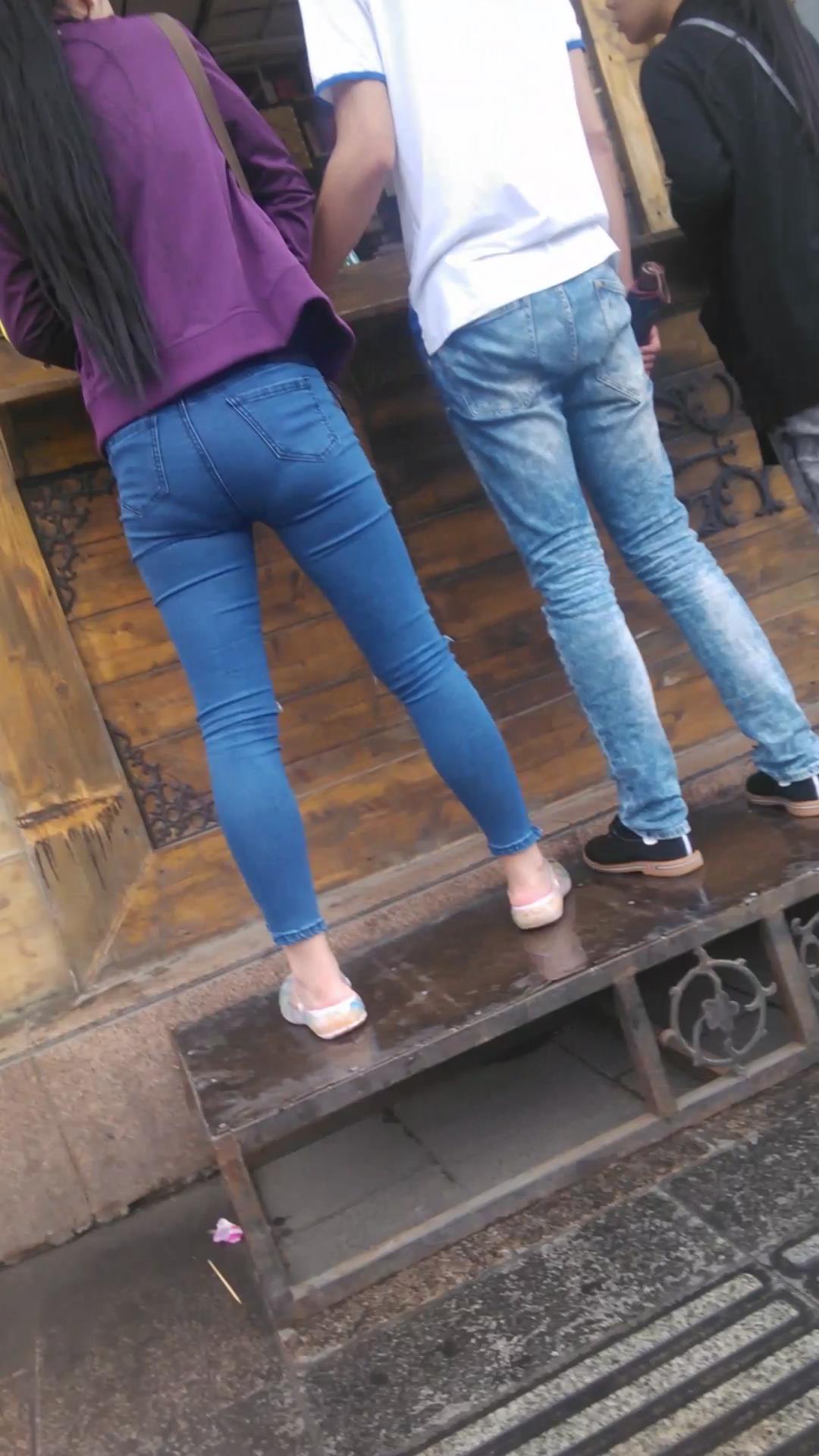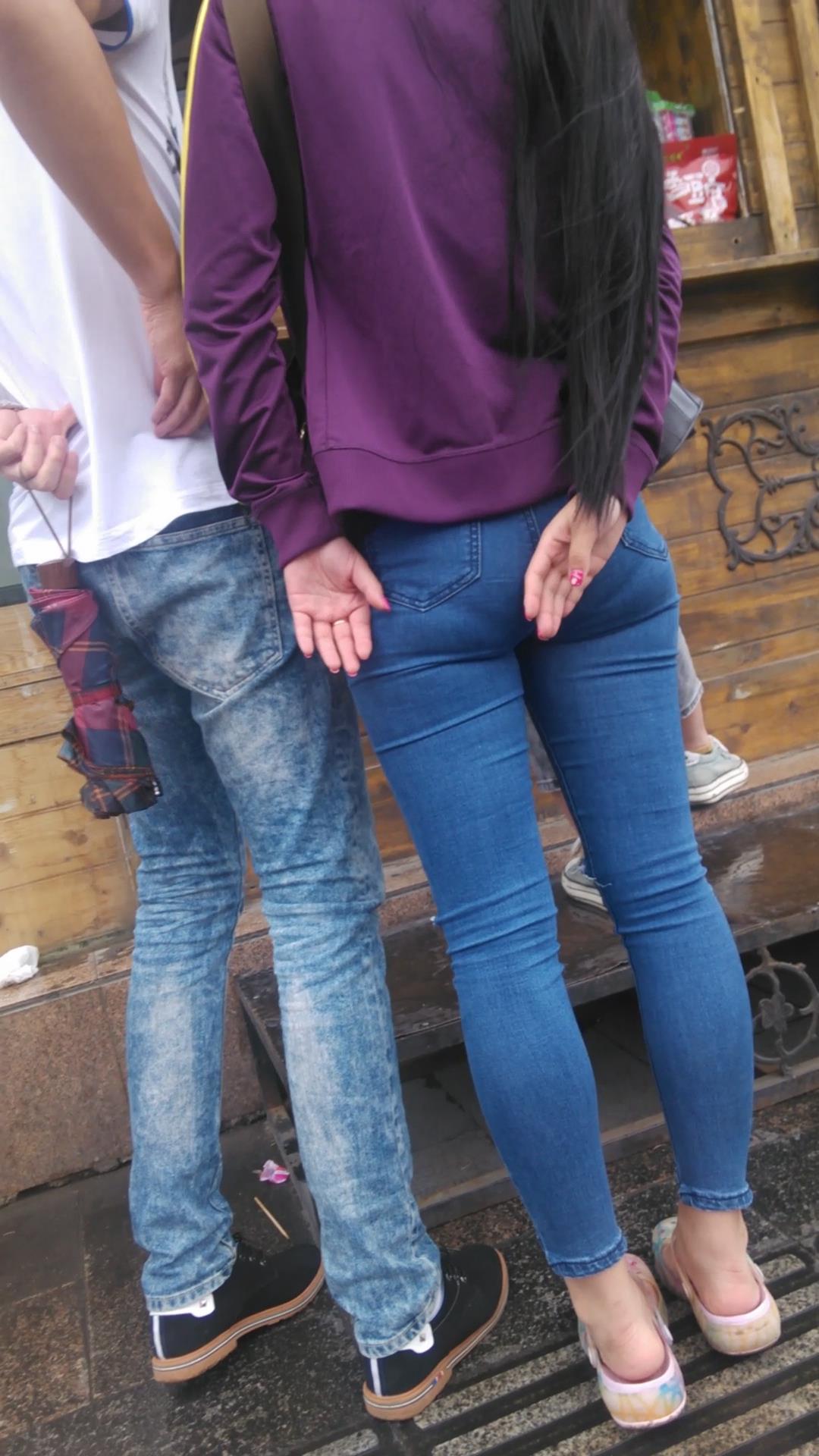 长发超紧身蓝色牛仔裤美眉,撅起美臀 编号5461