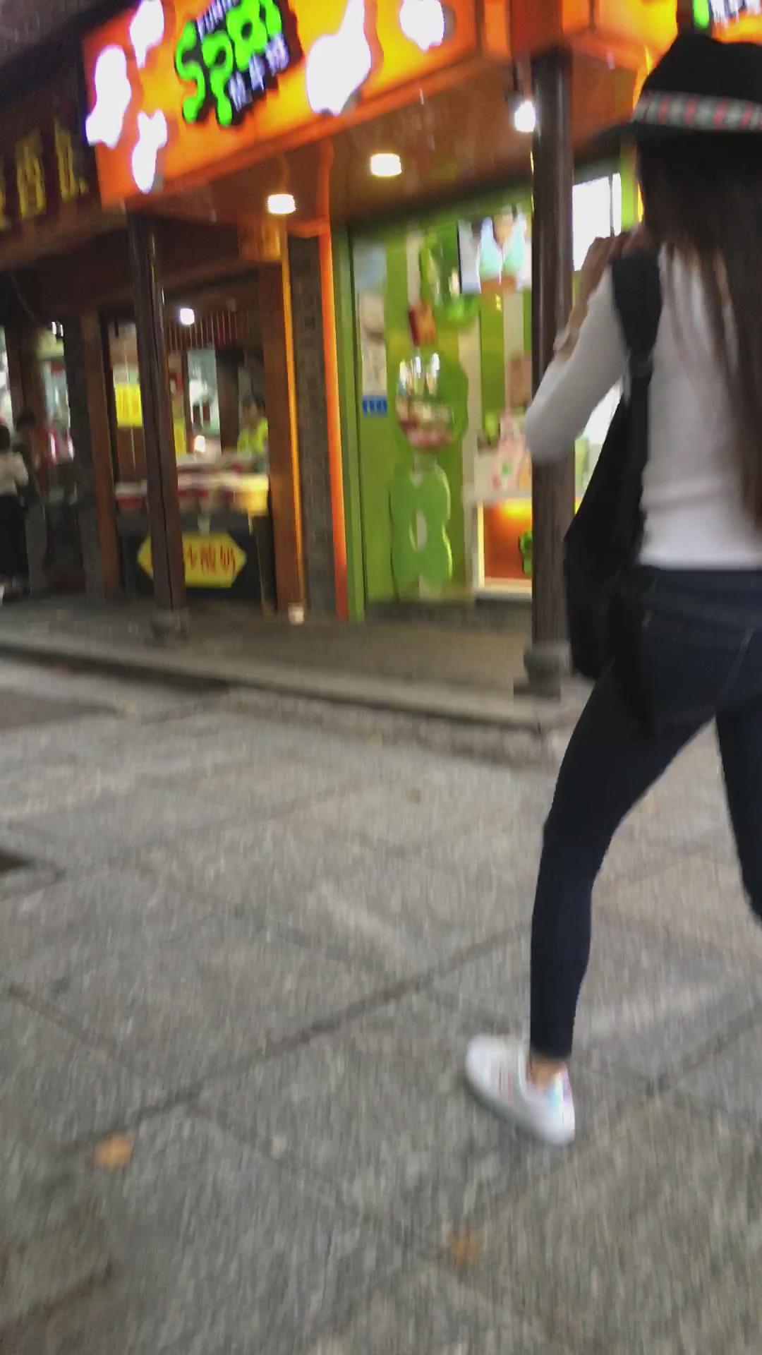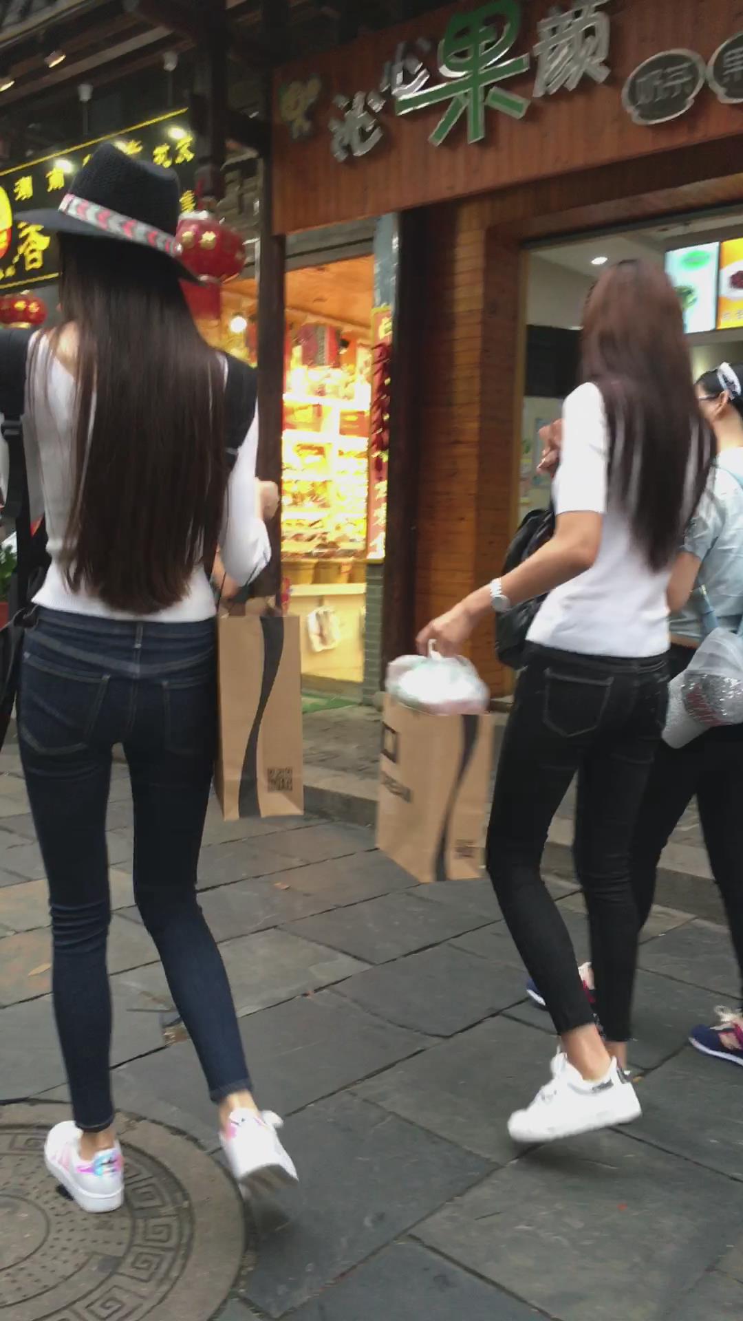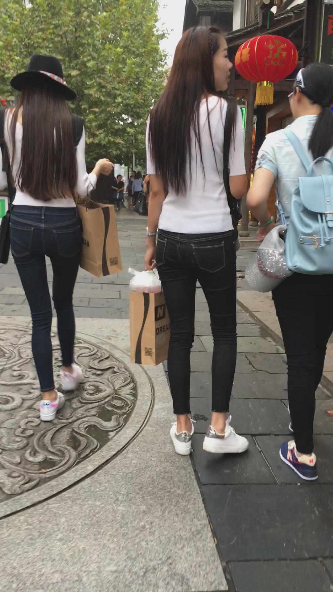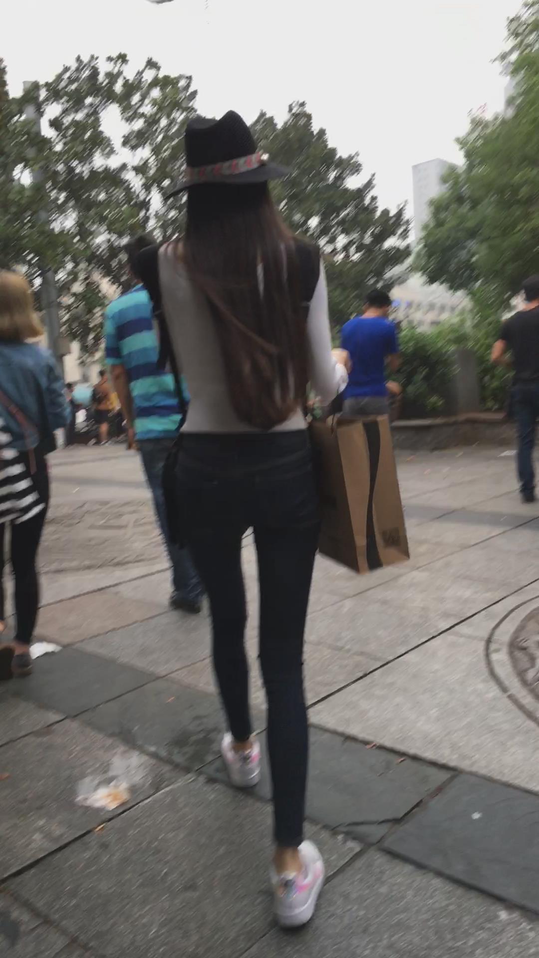 街拍高挑紧身牛仔裤苗条美女小姐姐 编号5468