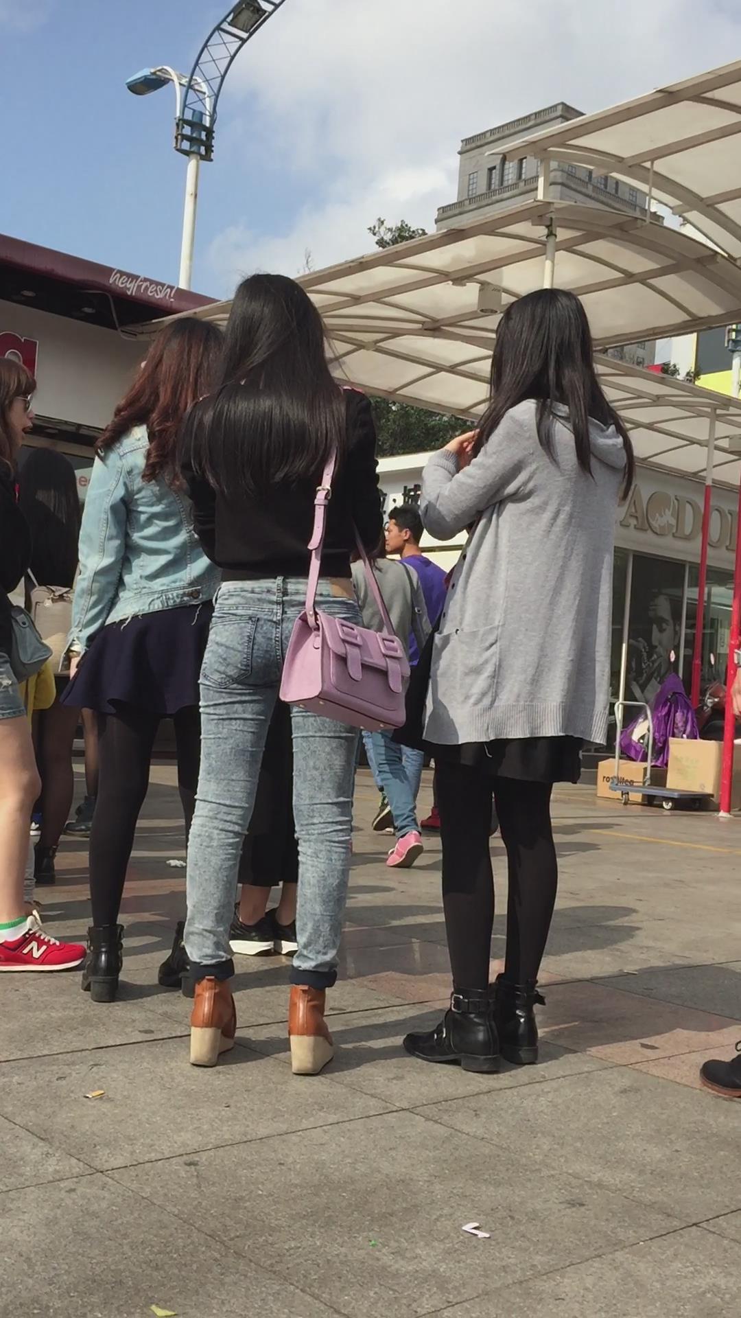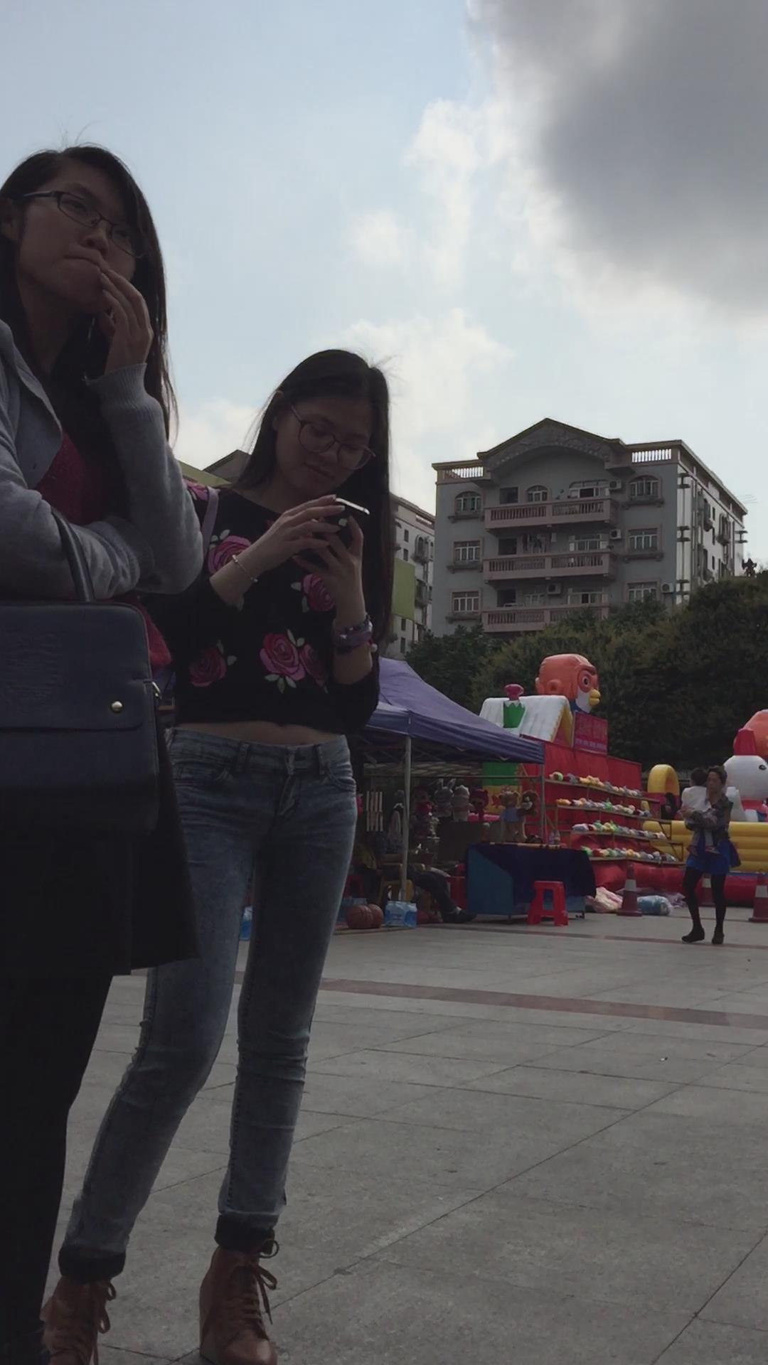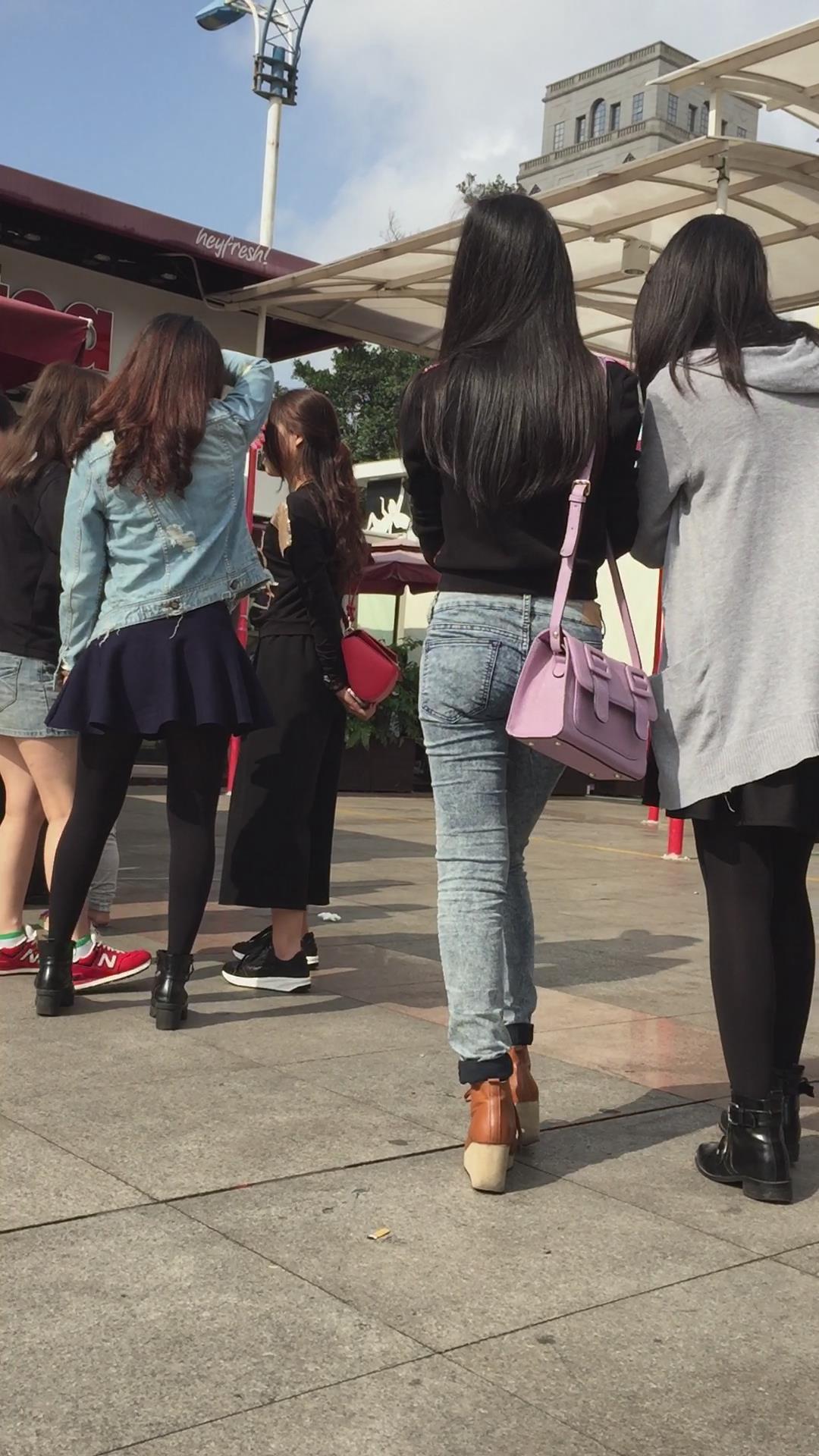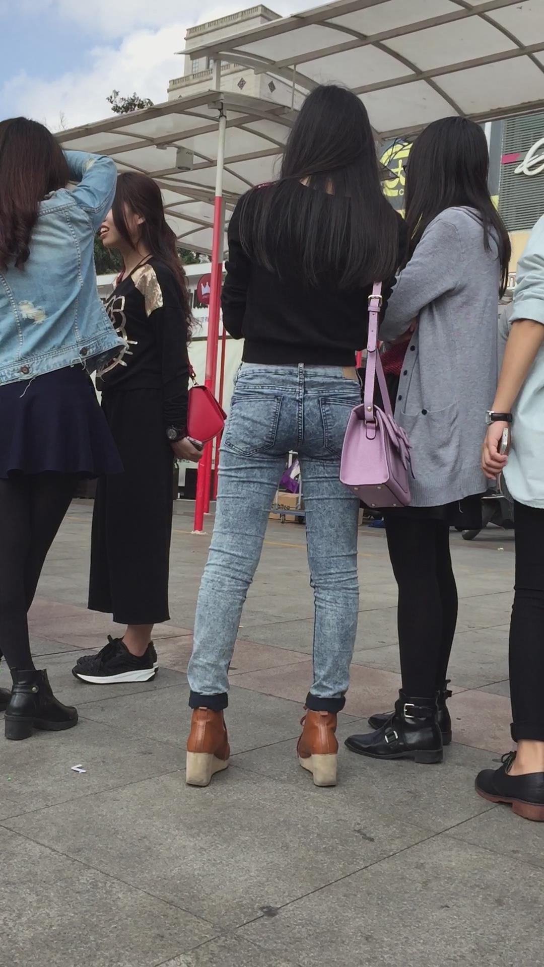 广场上拍摄蓝色牛仔裤紧到让人无法呼吸的美女,太美啦 编号5496