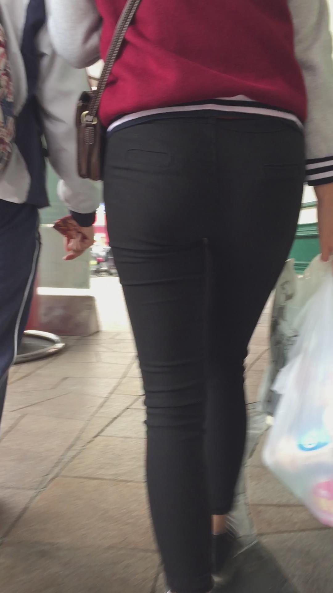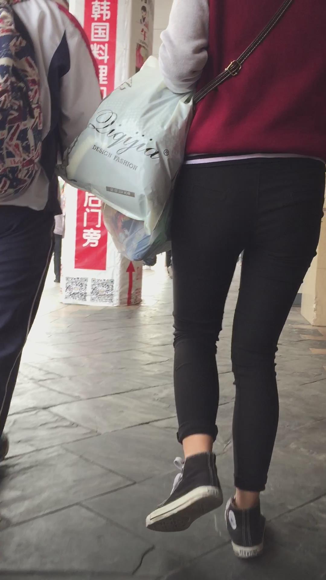 黑色紧身裤学生妹被跟踪,相机都快贴屁屁上了还不知道 编号5500