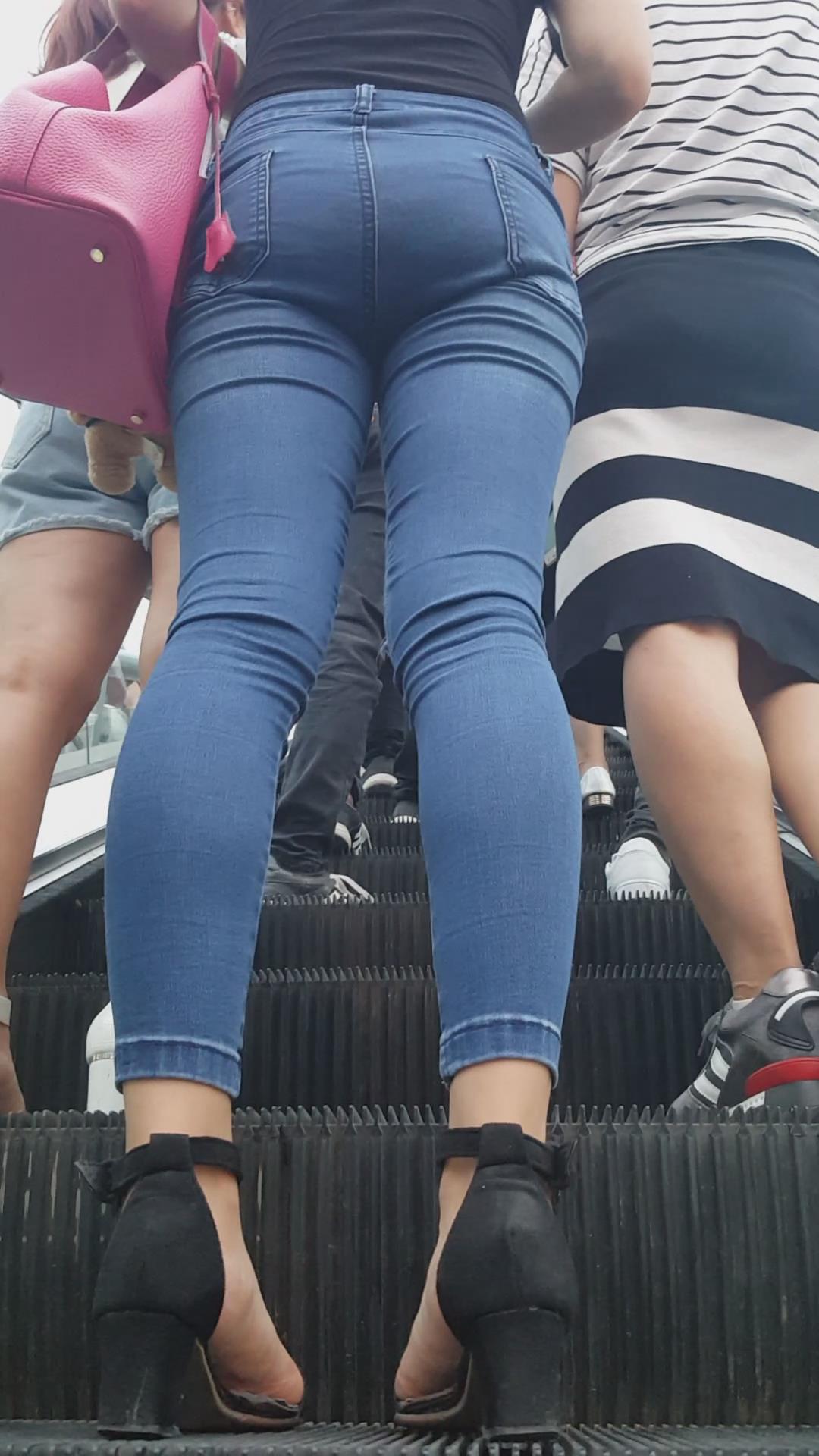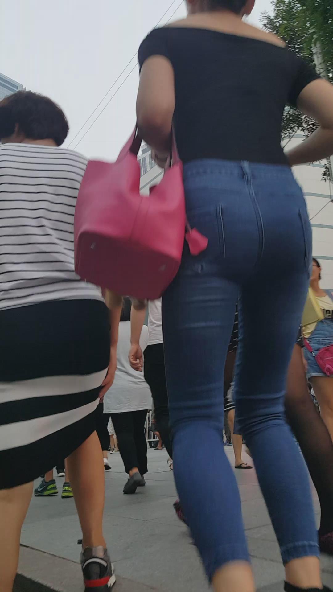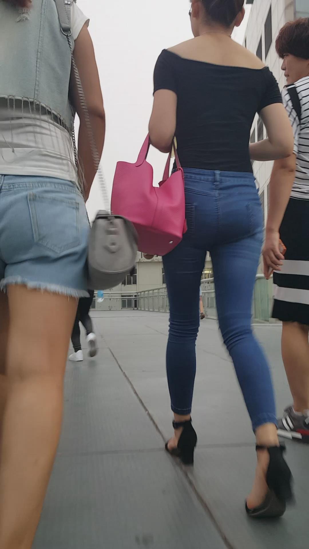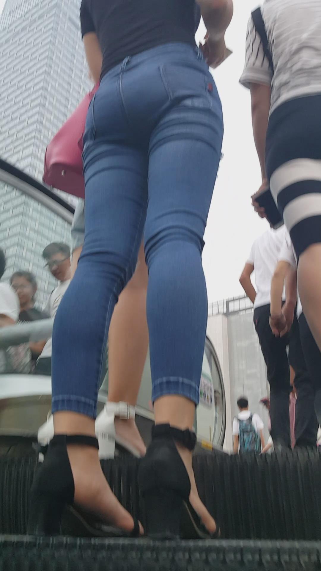 街拍极品大长腿紧身蓝牛高跟鞋性感气质女神 编号5506