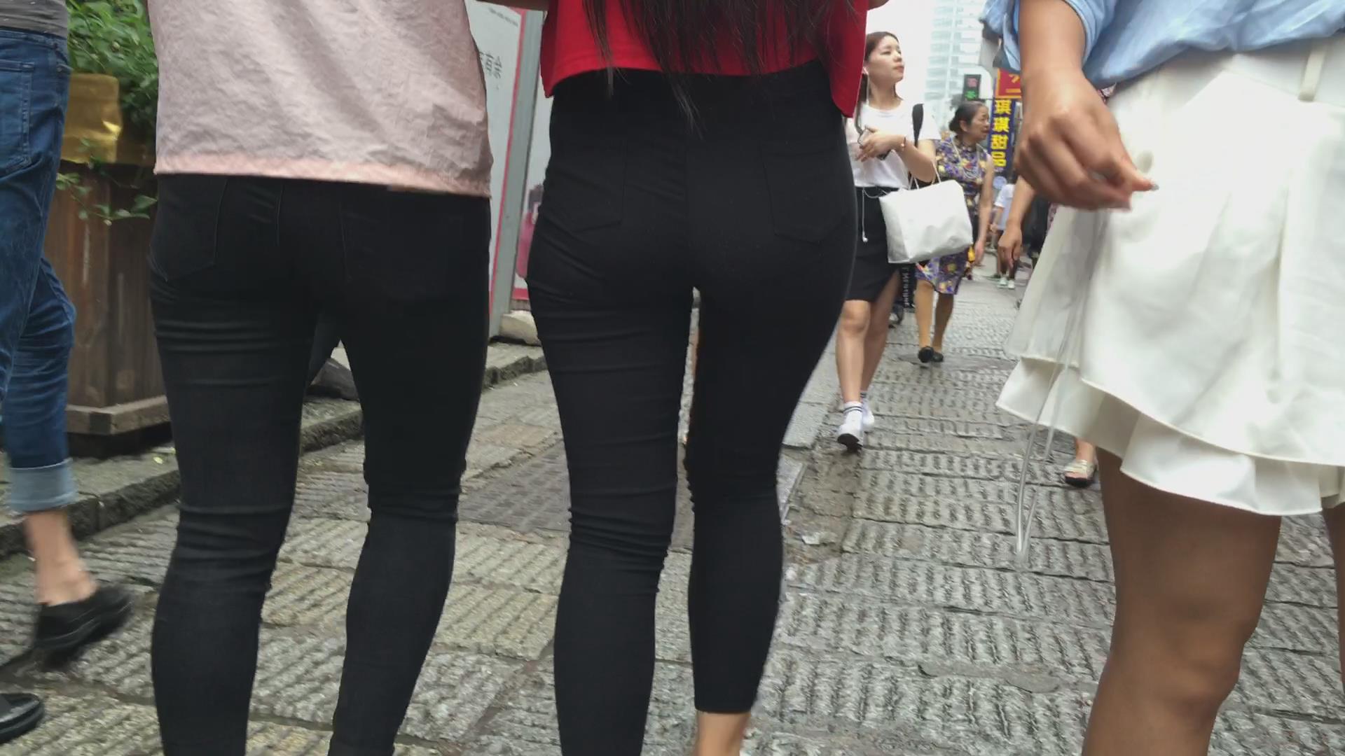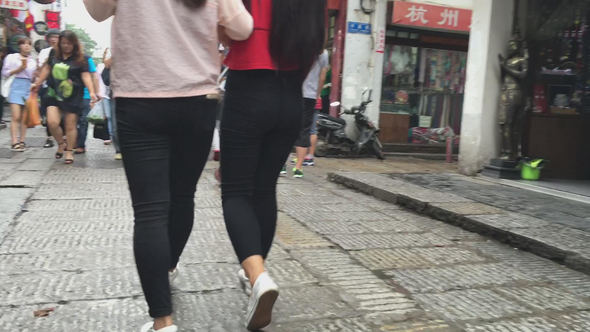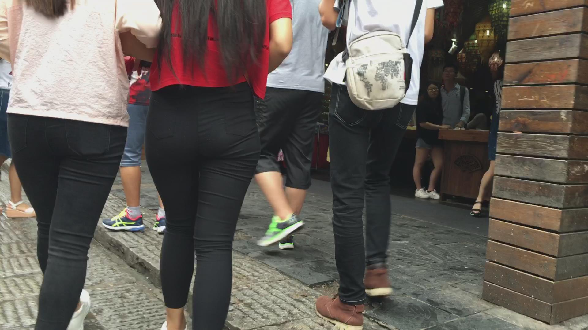 跟拍黑色紧身裤宽臀美女 编号5508