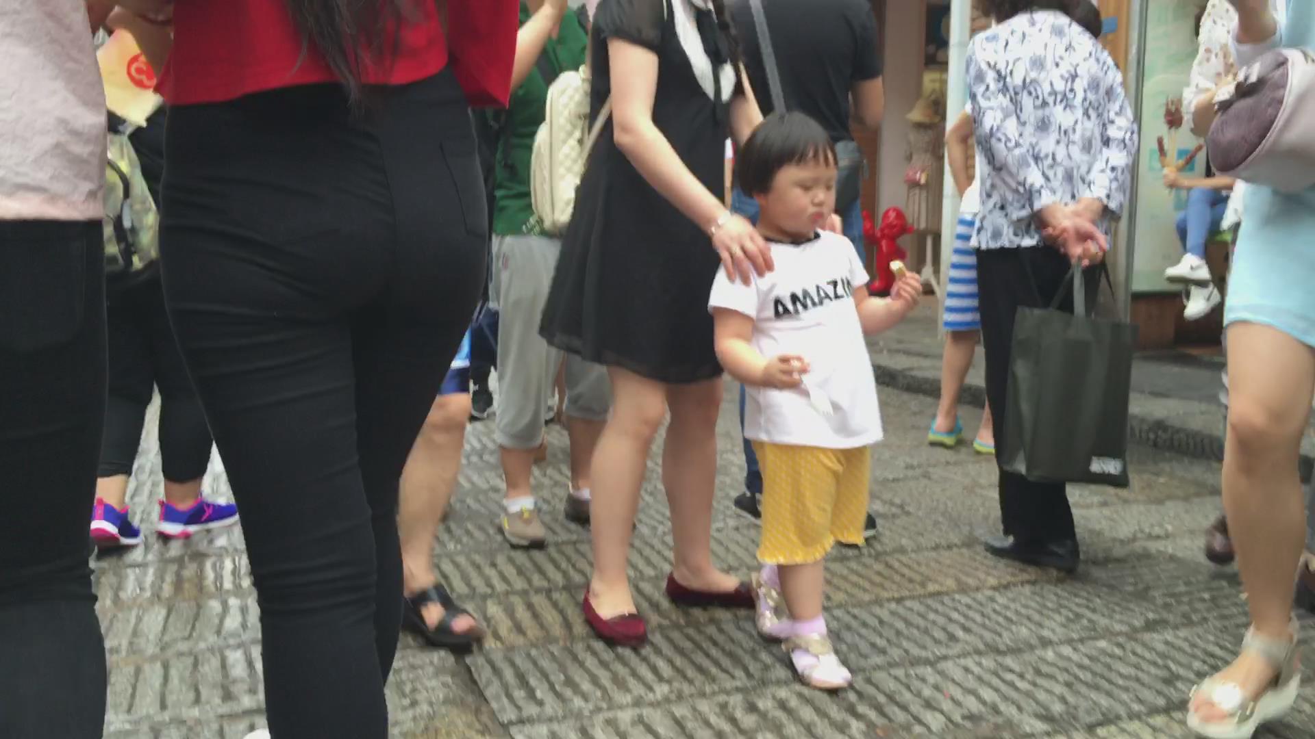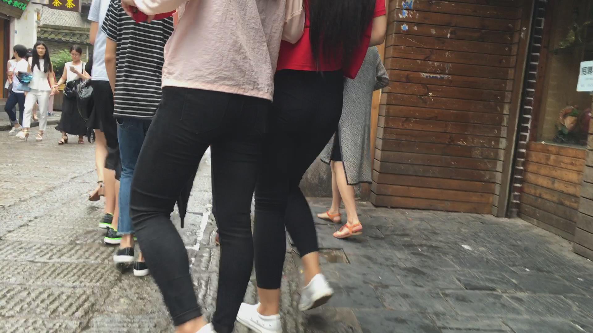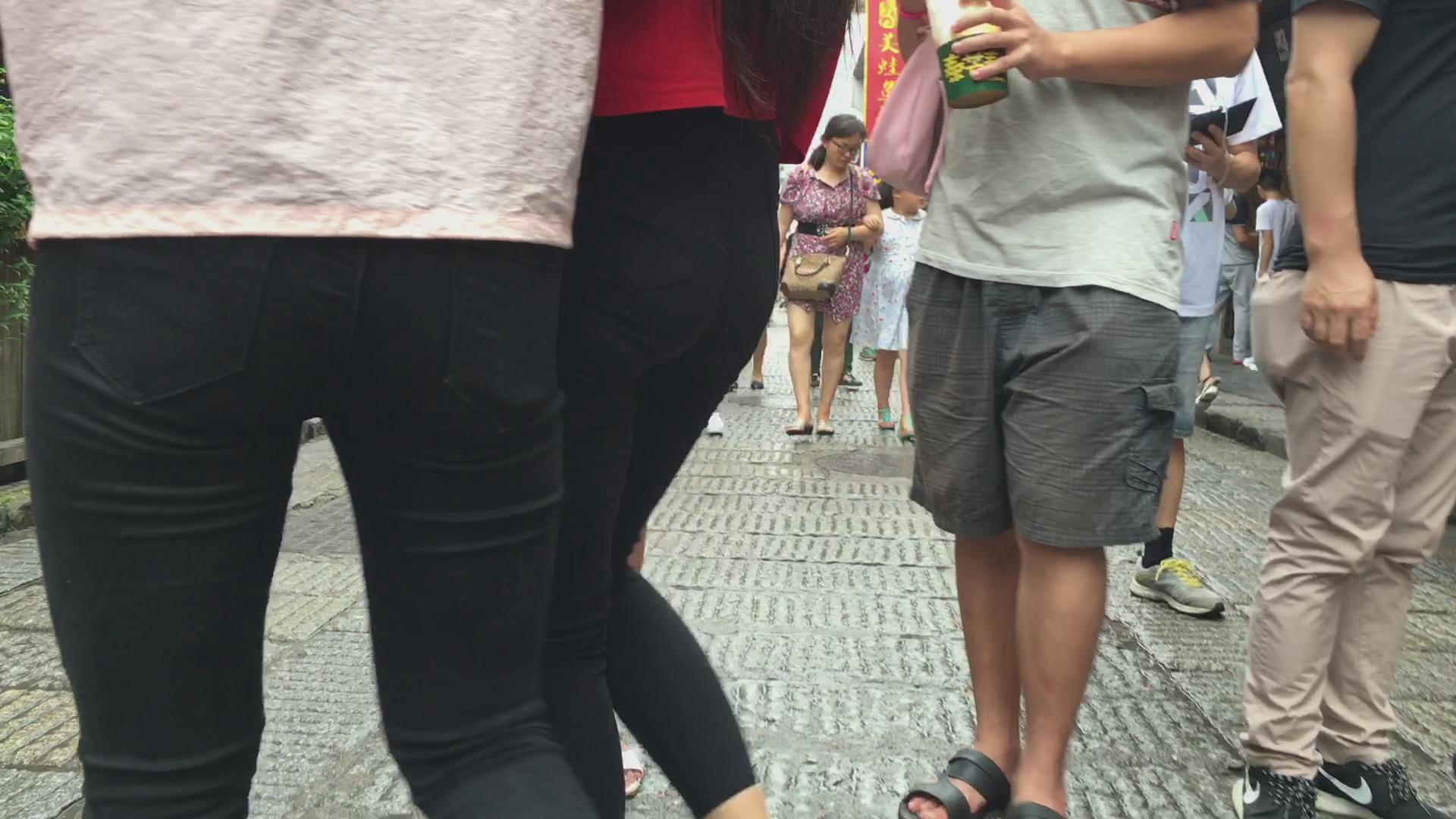 跟拍黑色紧身裤宽臀美女 编号5508