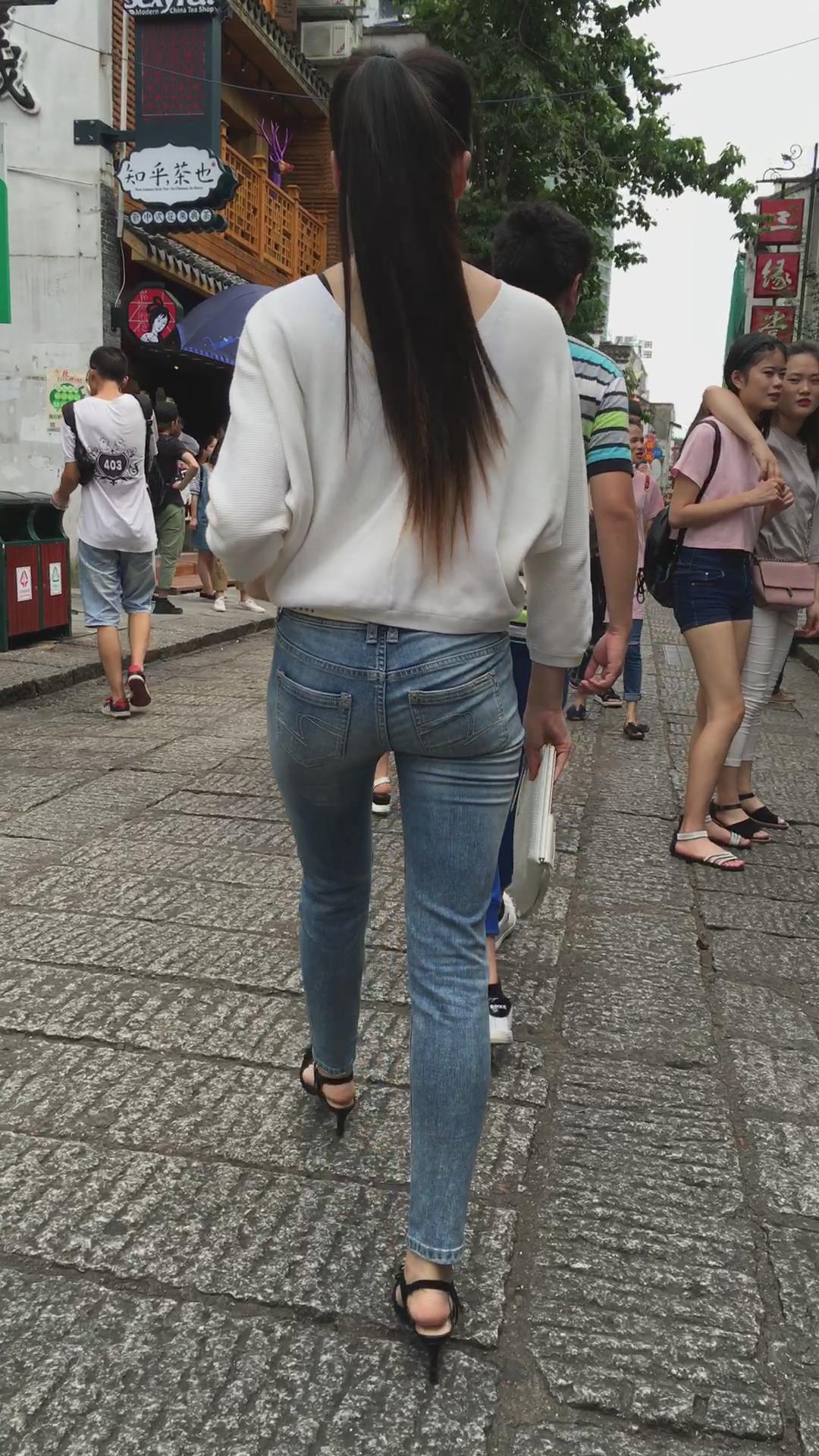 跟拍极品紧身蓝牛长腿马尾辫性感美女 编号5513