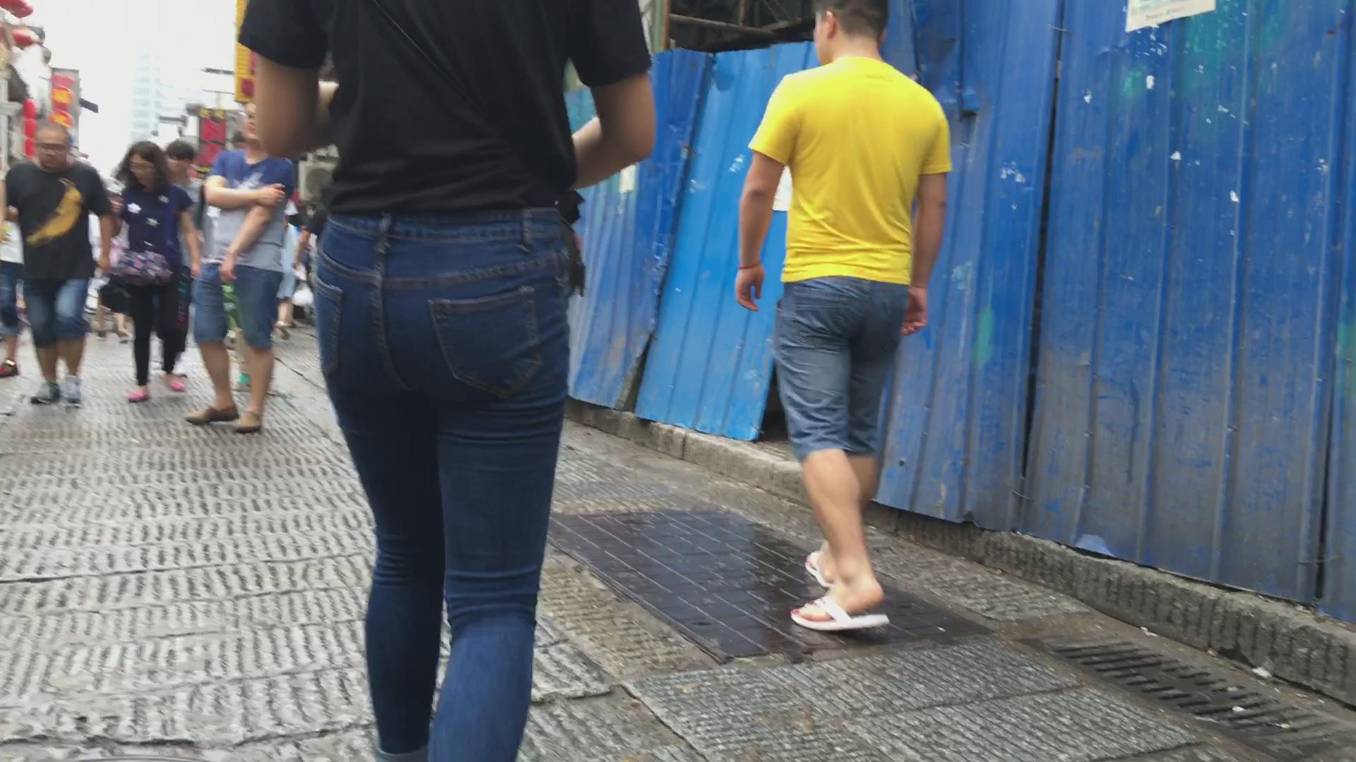 跟拍超紧绷蓝色牛仔裤妹子,紧到让人无法呼吸 编号5520
