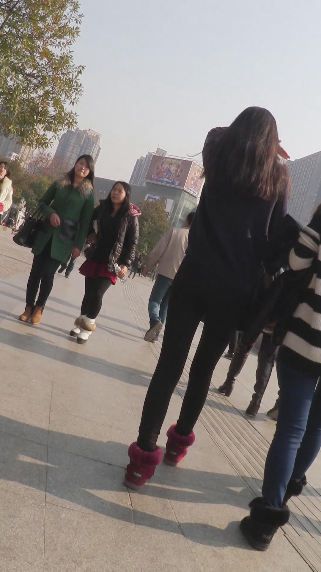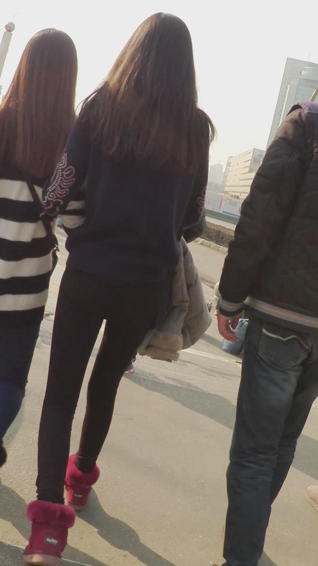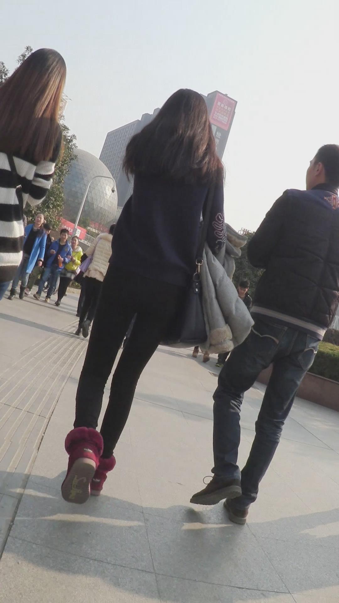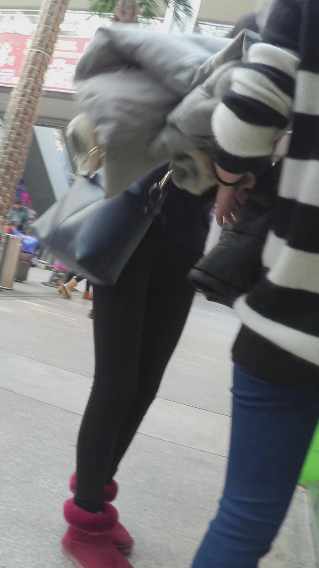 街拍黑色紧身裤美女 编号6135