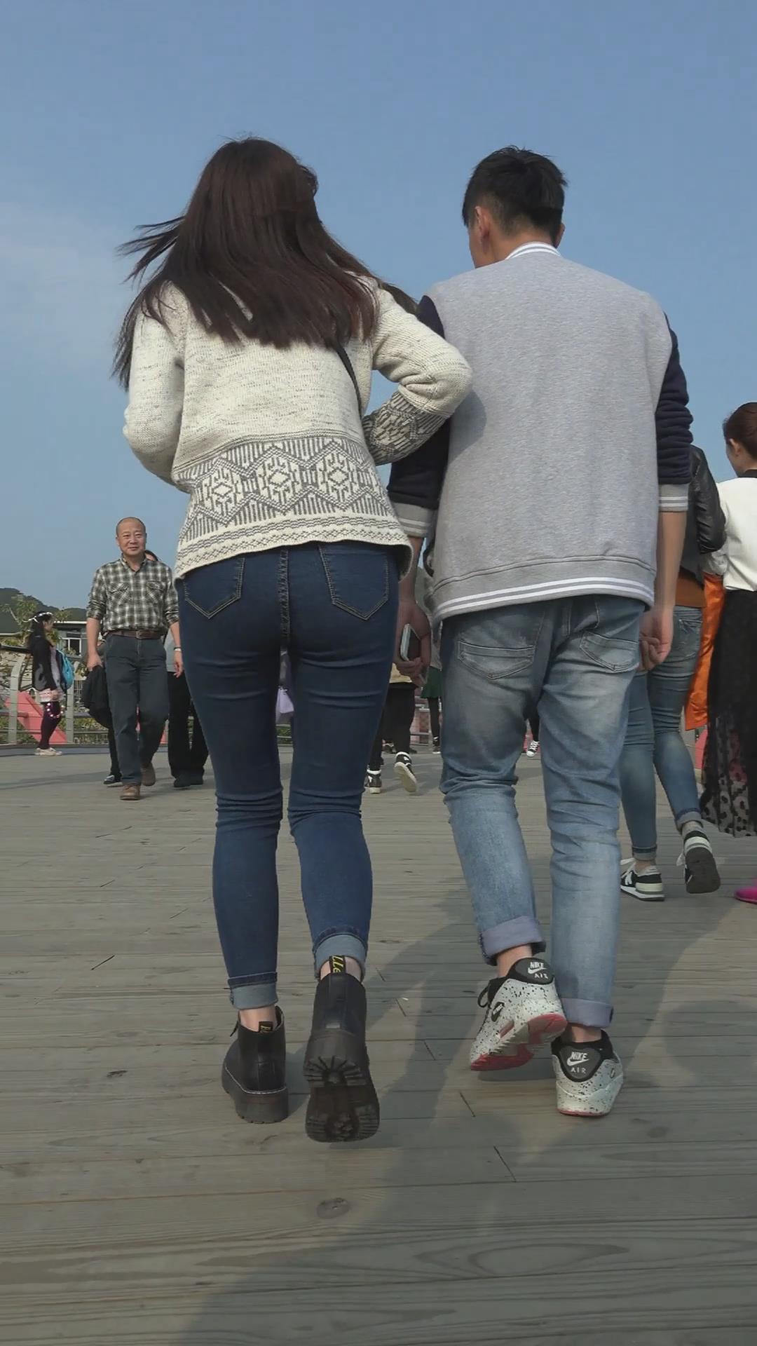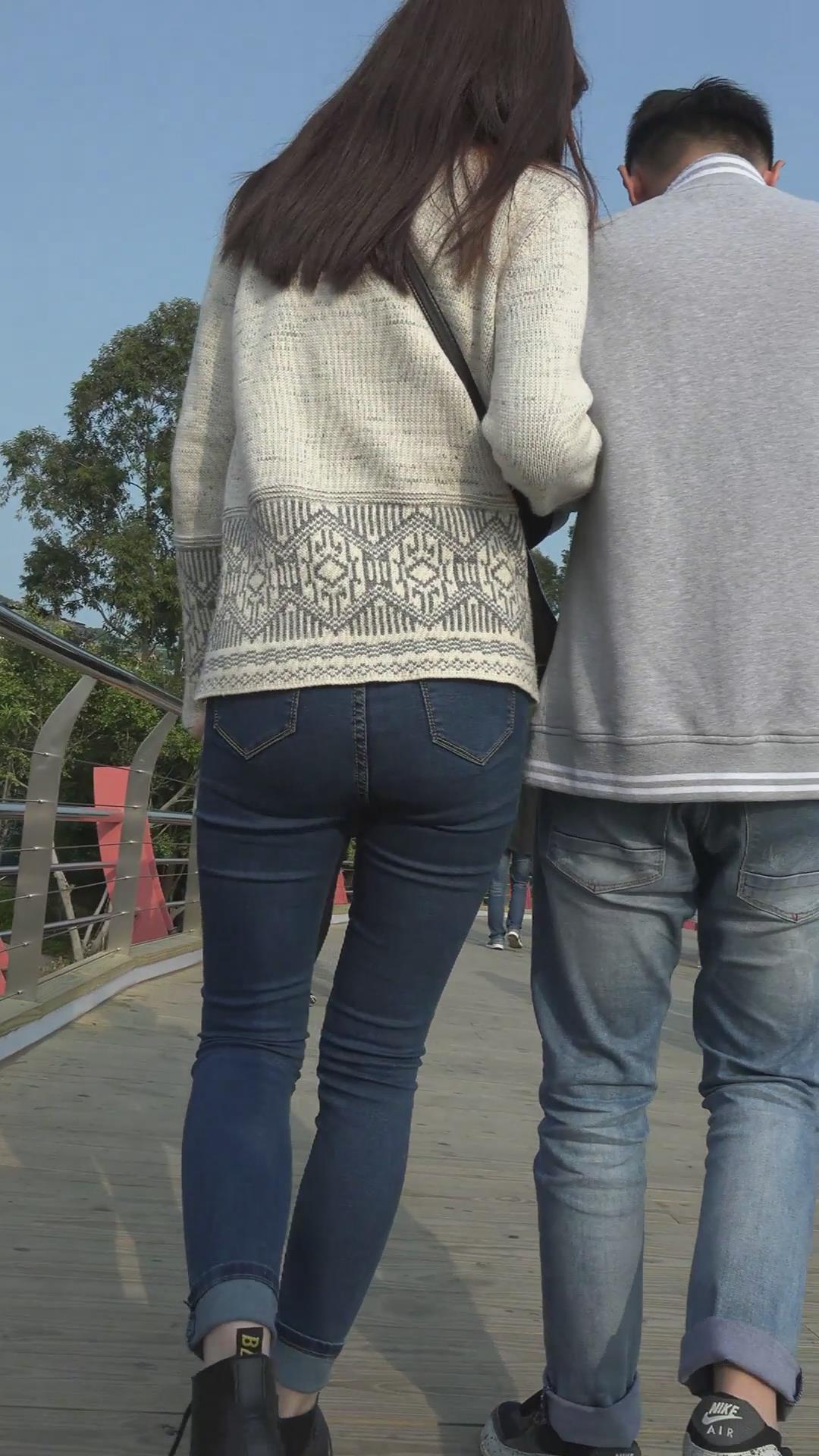 跟拍超紧身蓝色牛仔裤清纯小学妹 编号6136