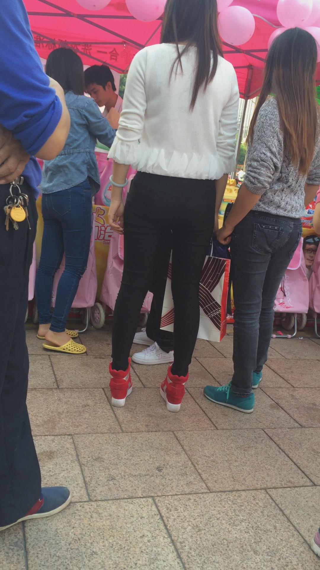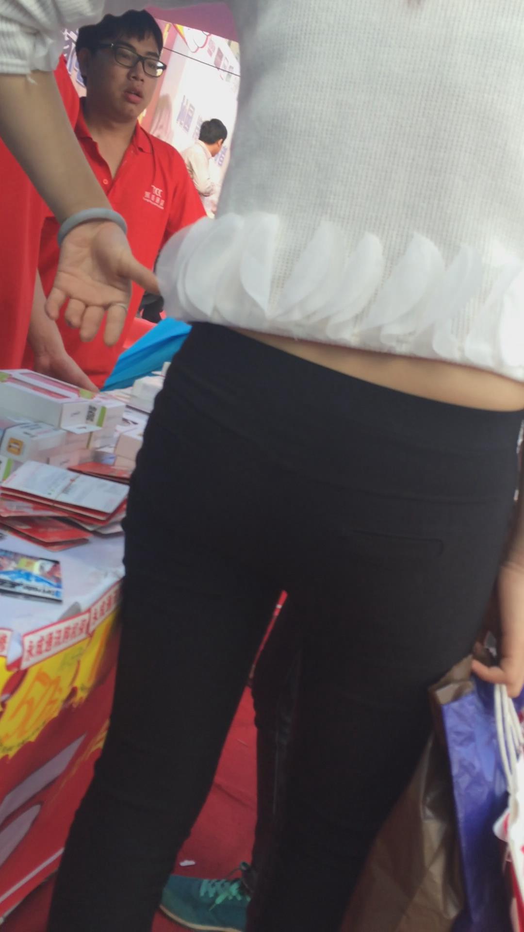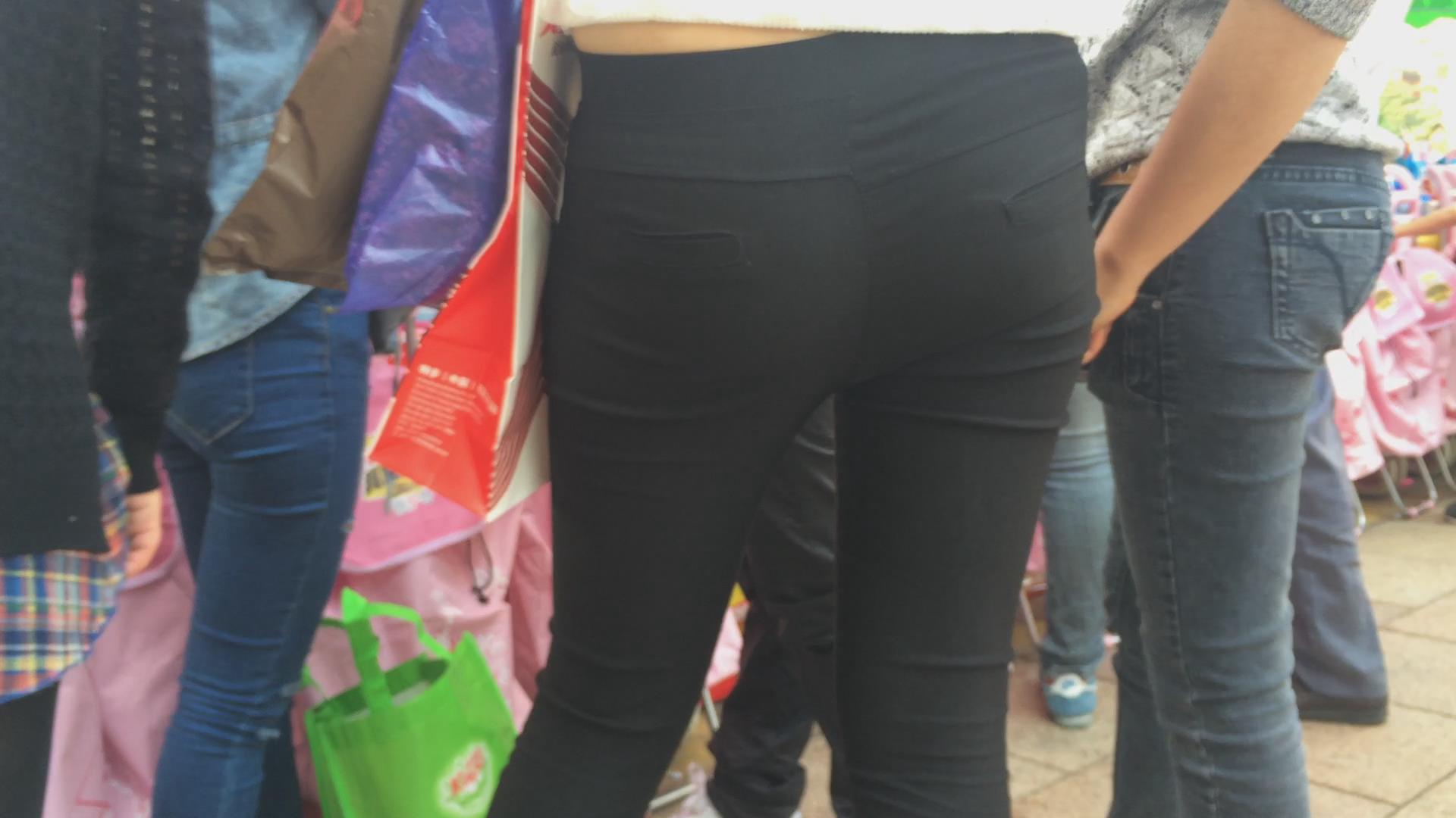 黑色紧身裤宽臀妹子在围观什么呢? 编号5547