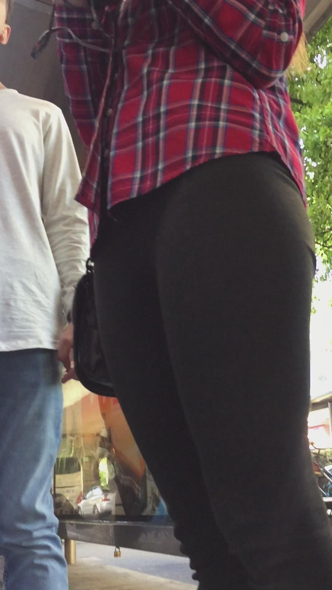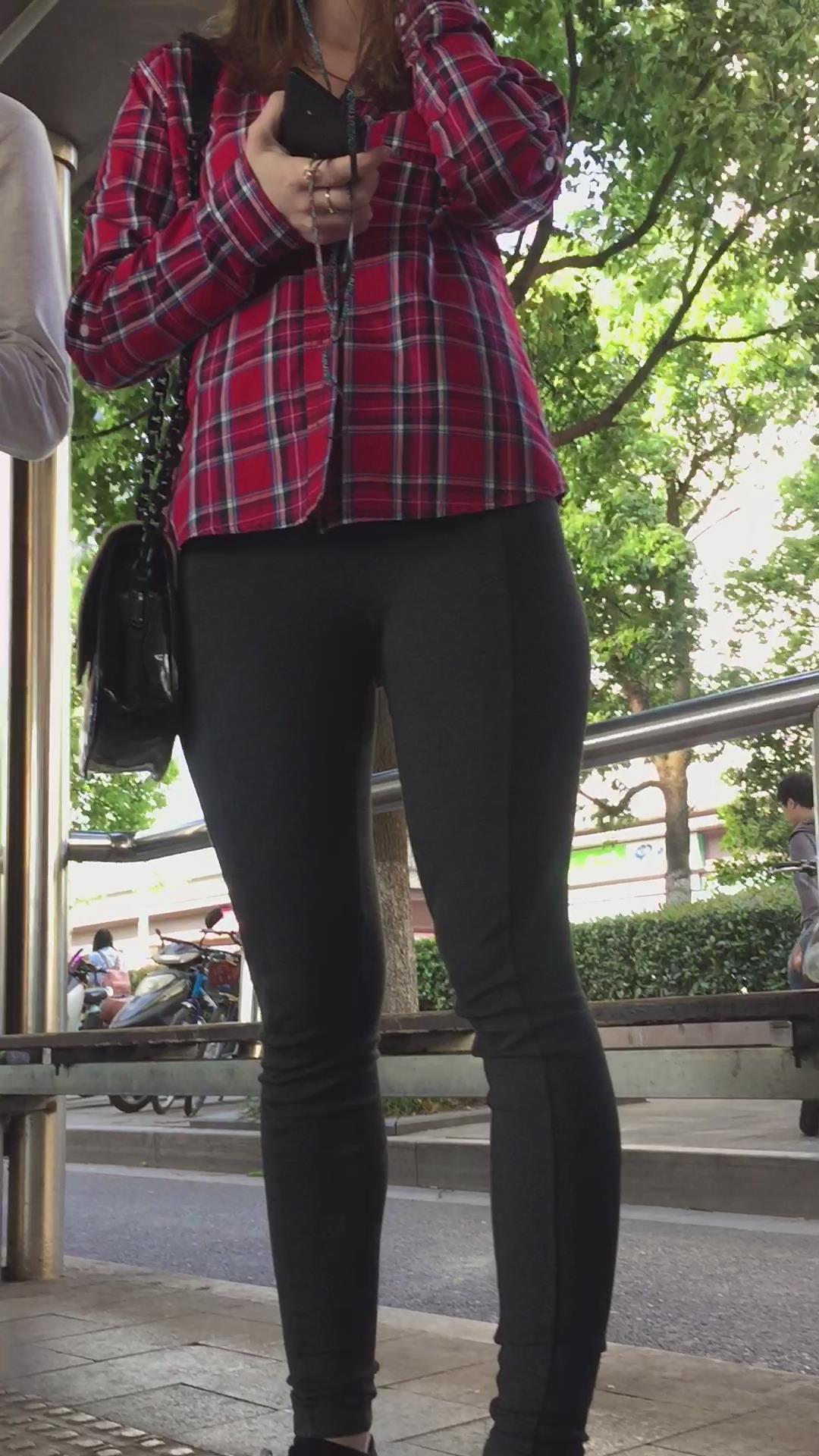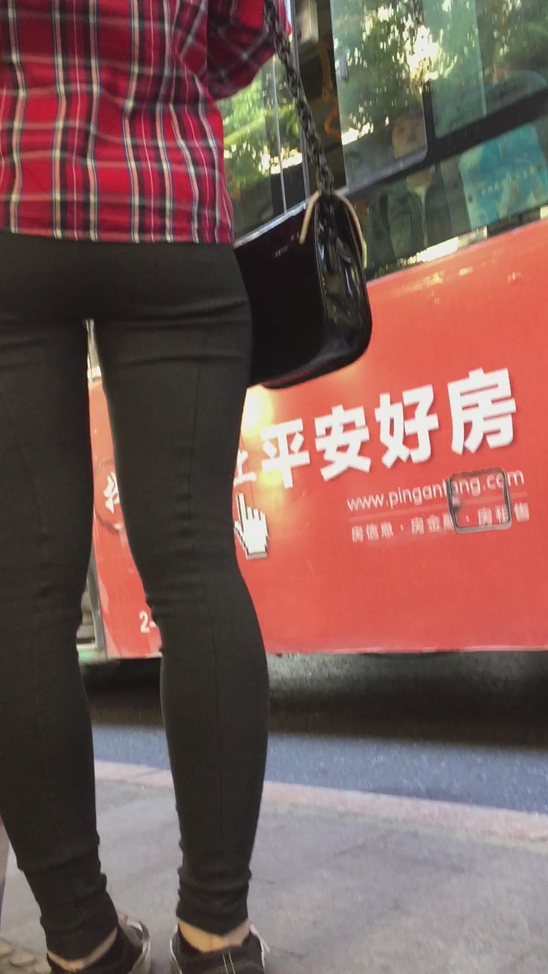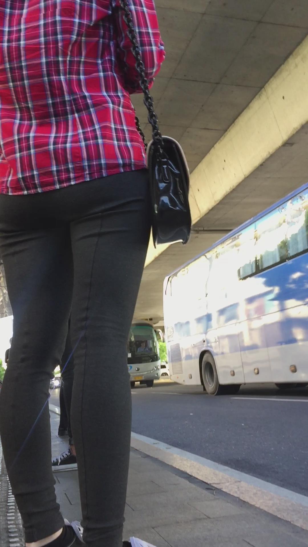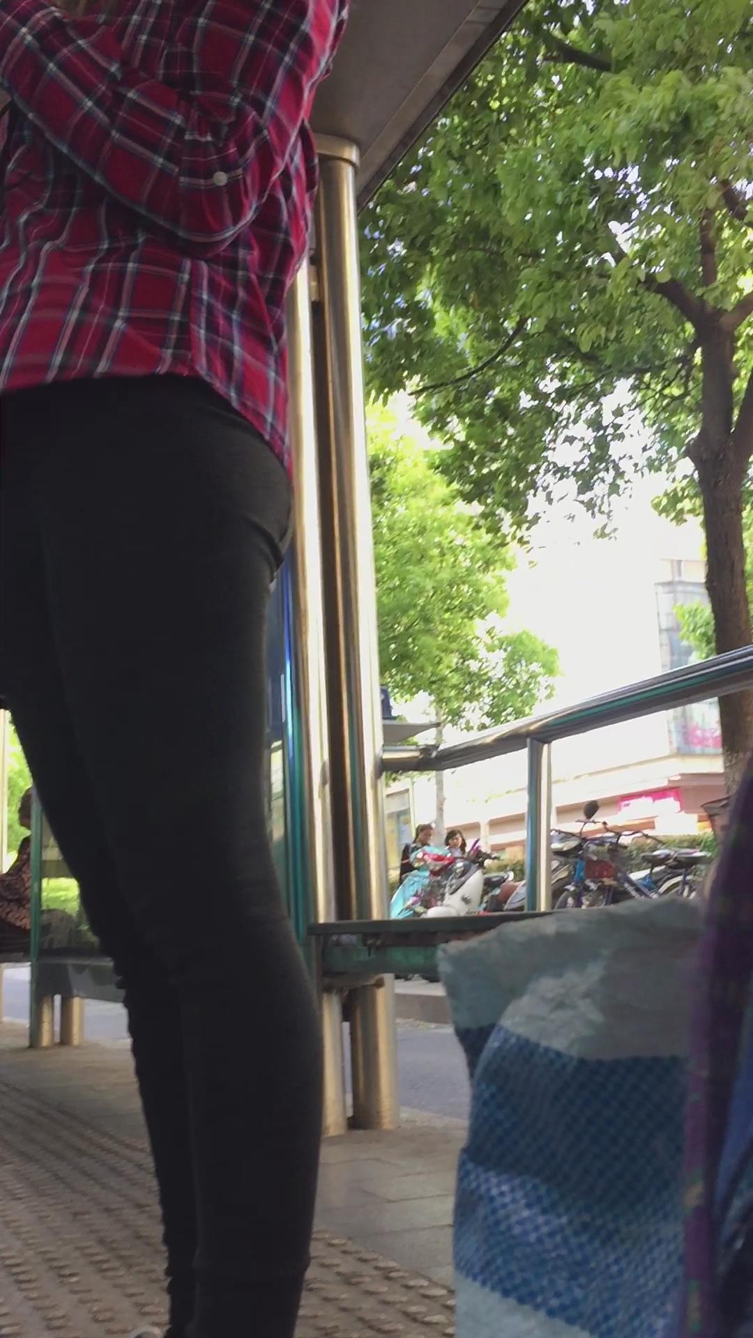 黑裤圆润饱满美臀颜值妹子等公交车 编号5565